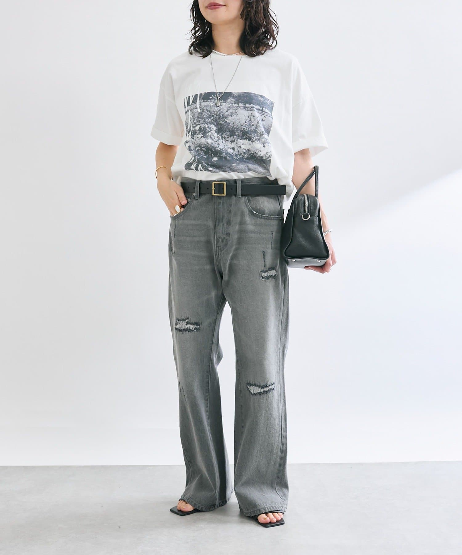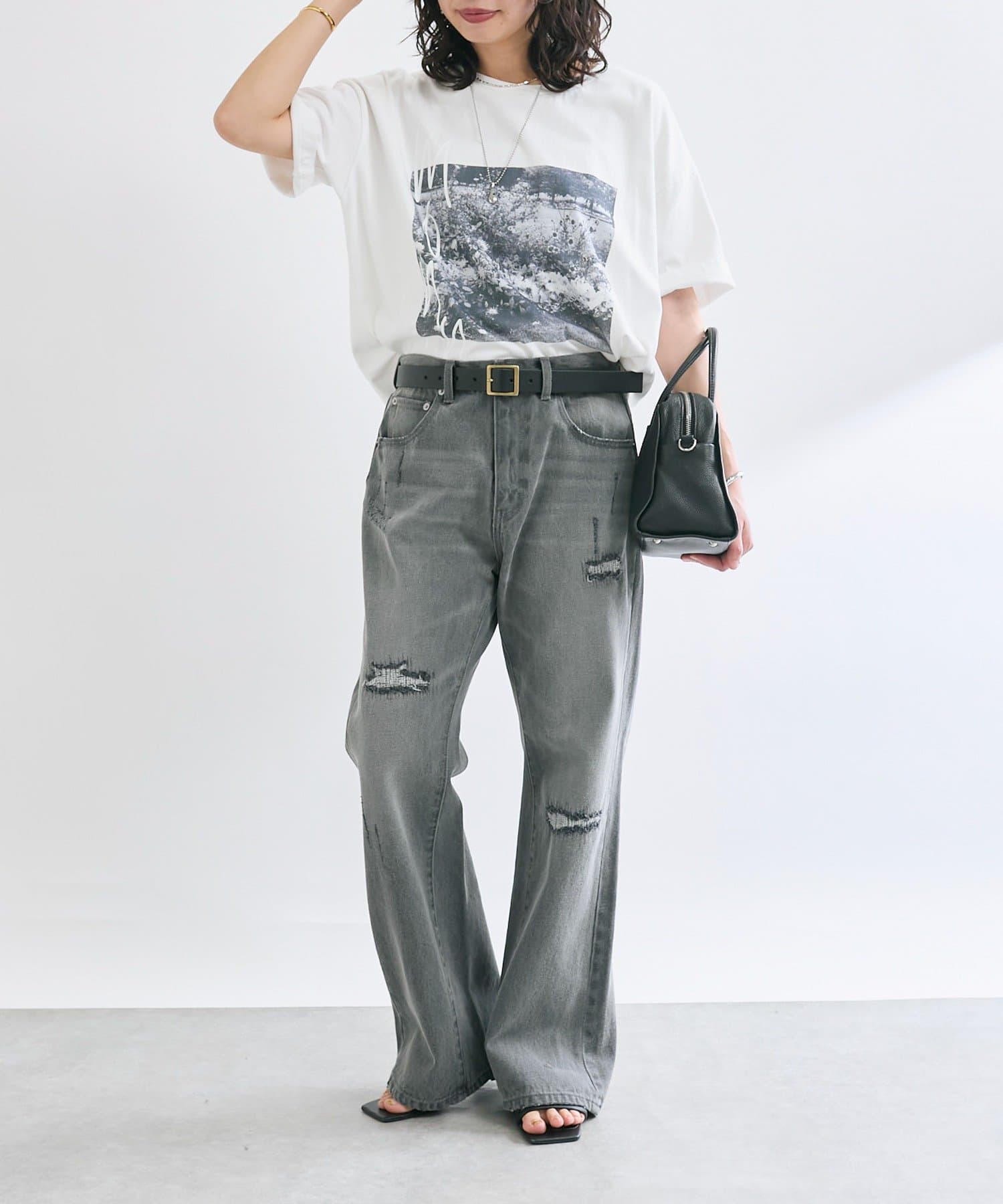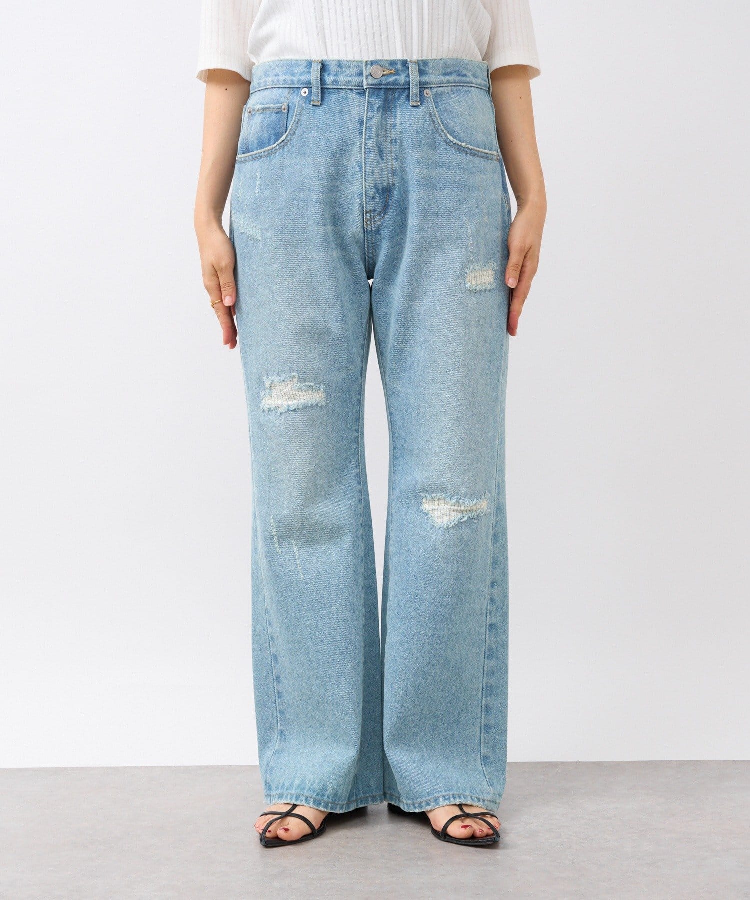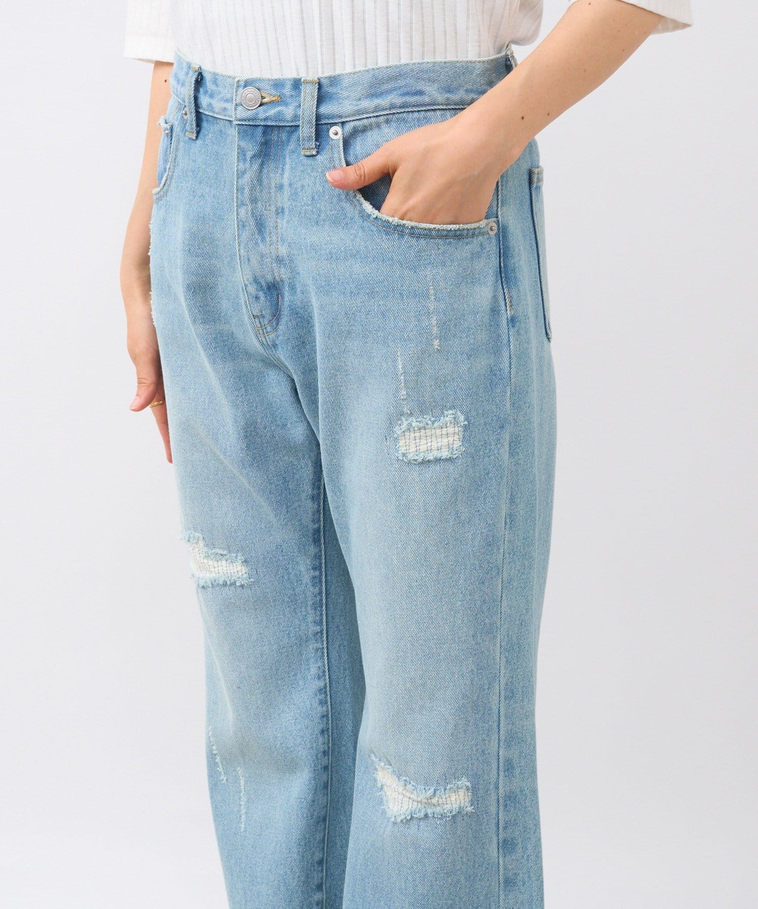 さりげないフレアシルエットとリペアデザインがアクセントに