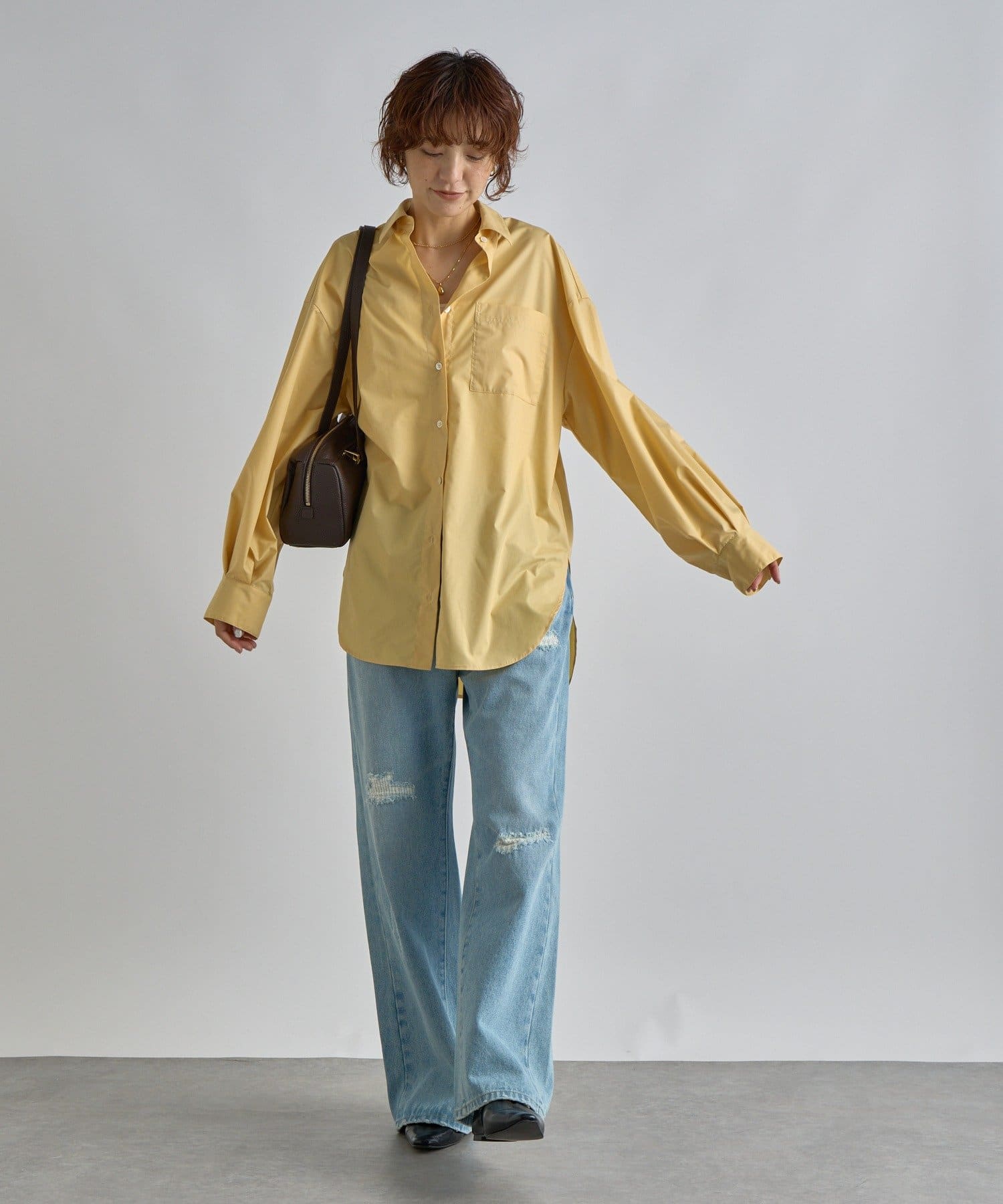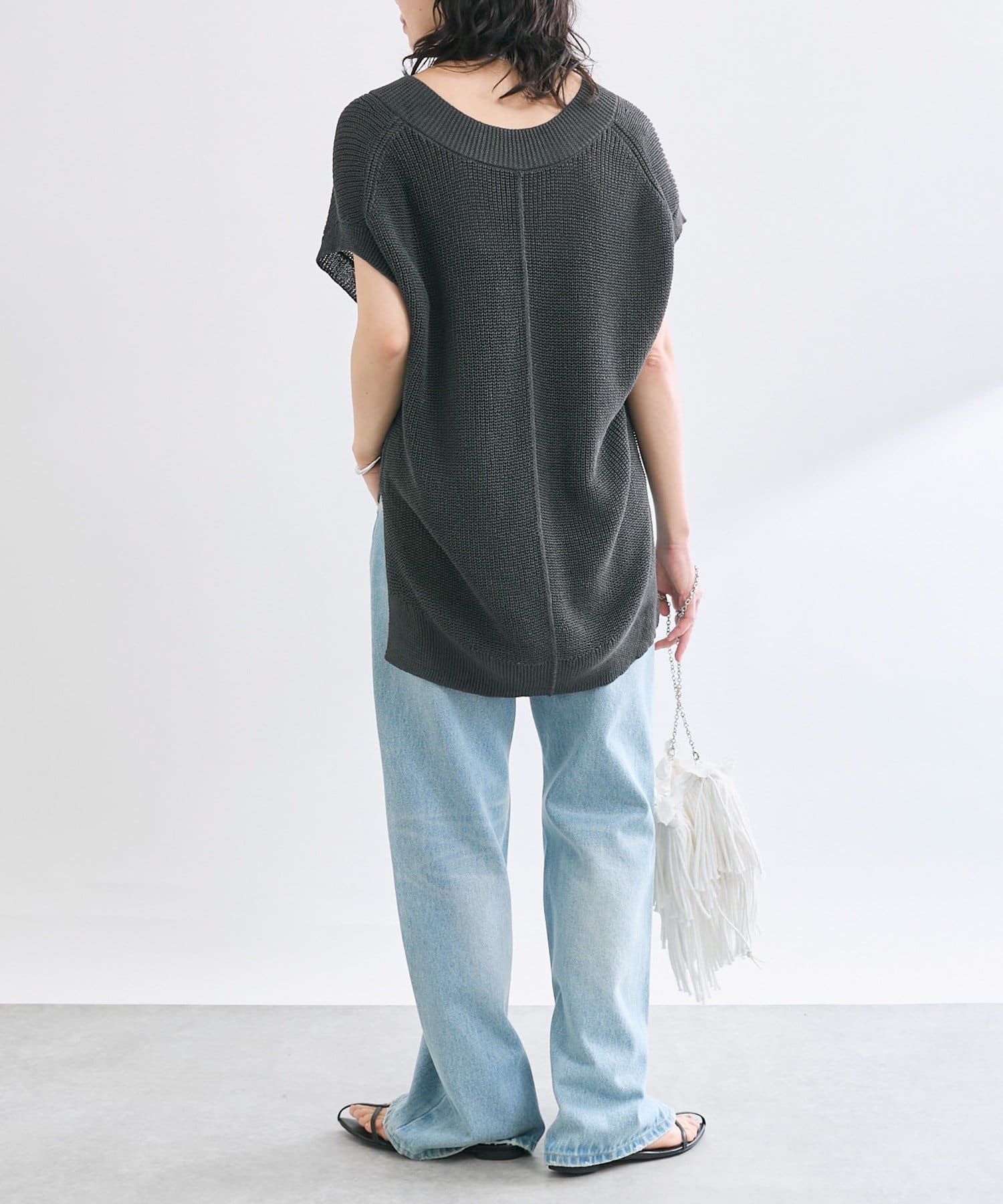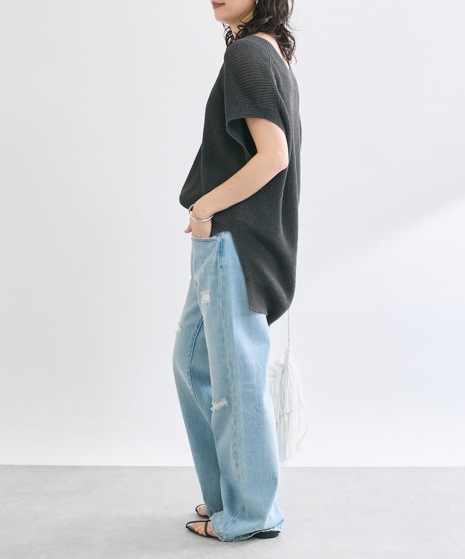 すっきりしつつ、リラクシーなサイズ感がヘルシーなスタイリングに合わせやすい一本です。
