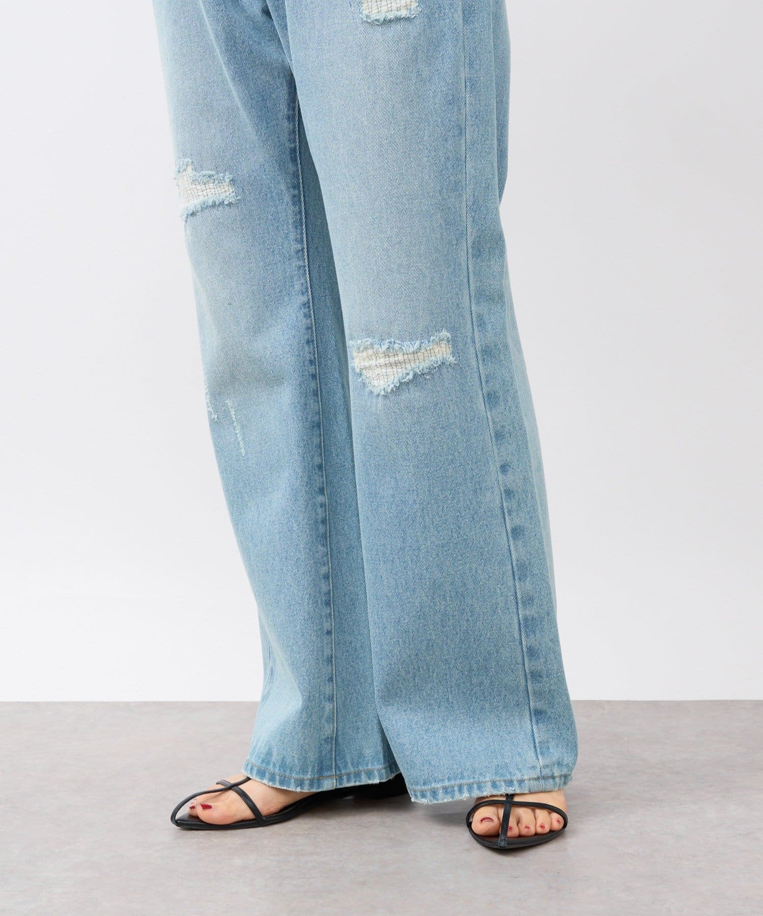 【MONN.:.(モン)】セミフレアリペアデニム