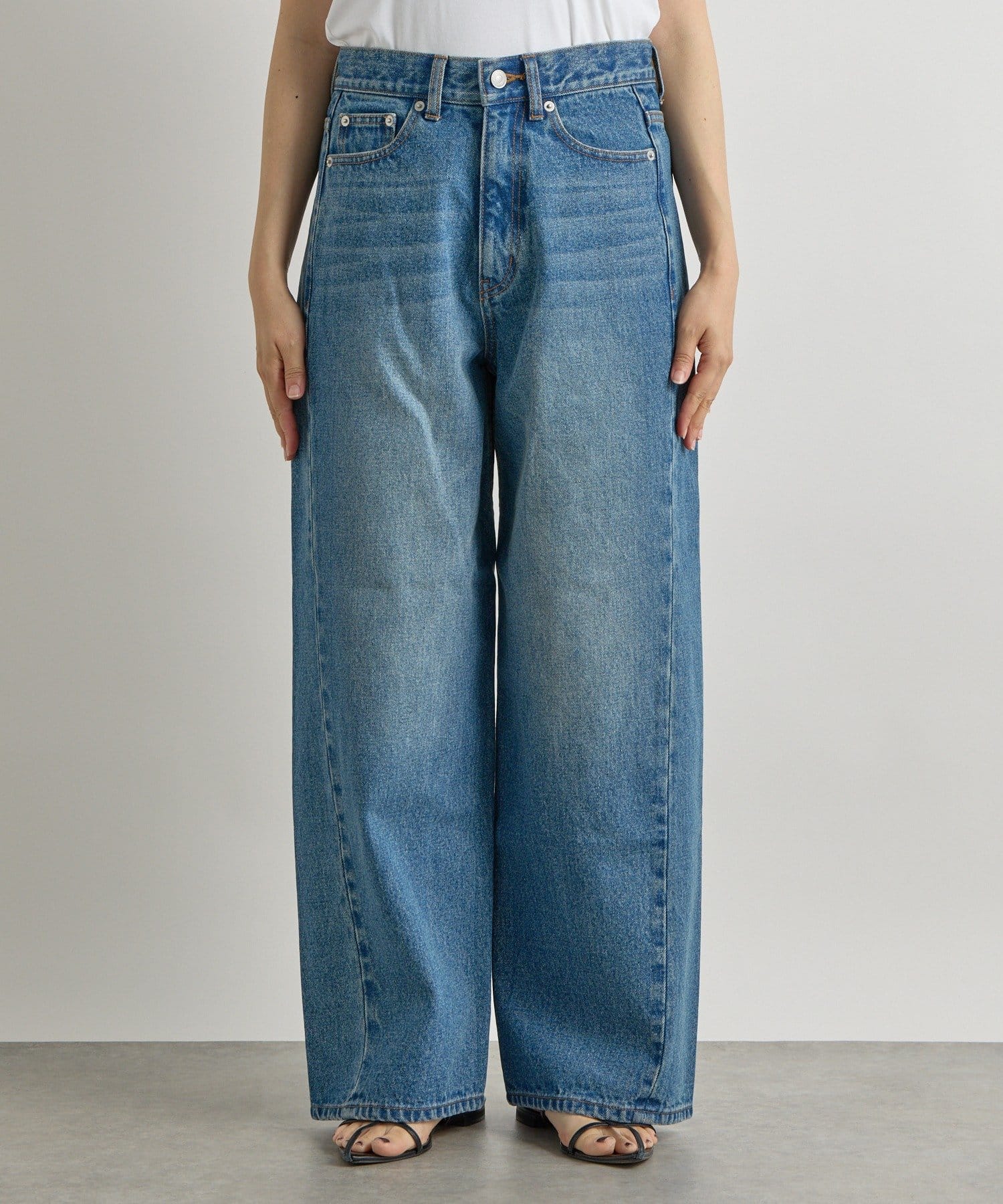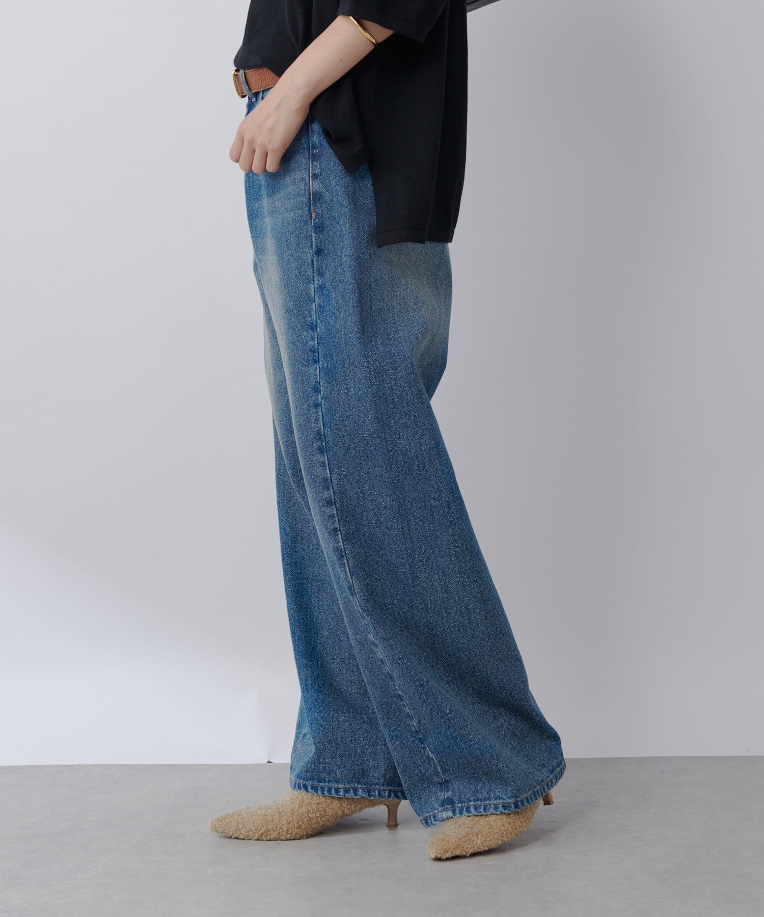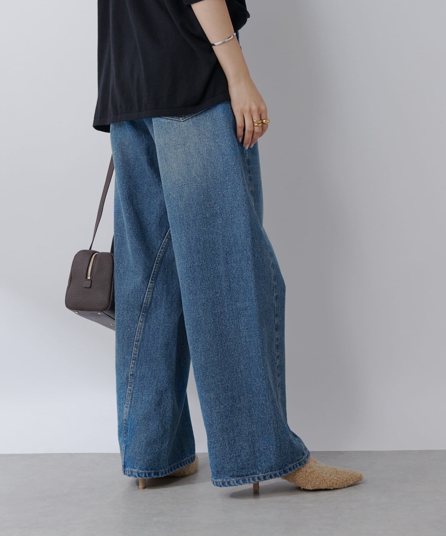 程よくハリがある素材を使用したワイドデニムパンツ。