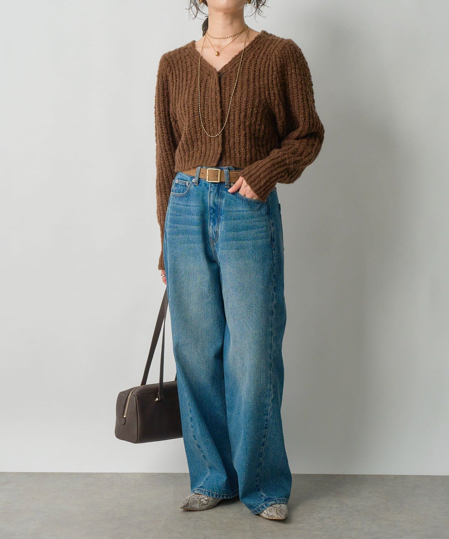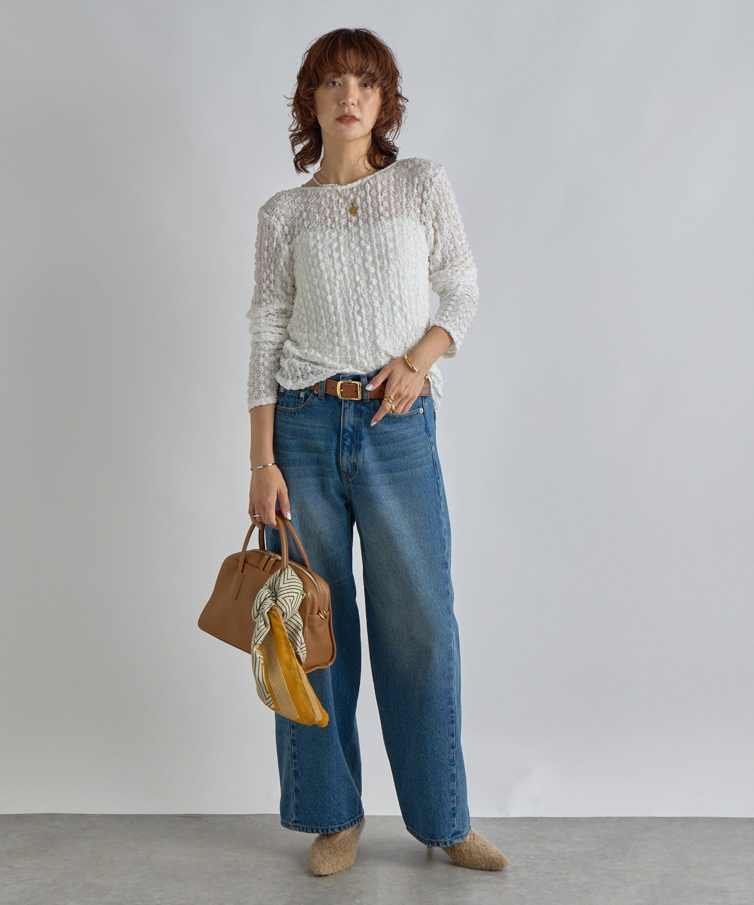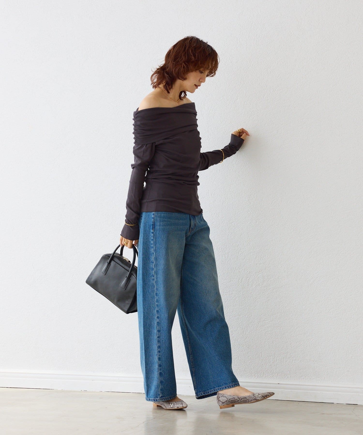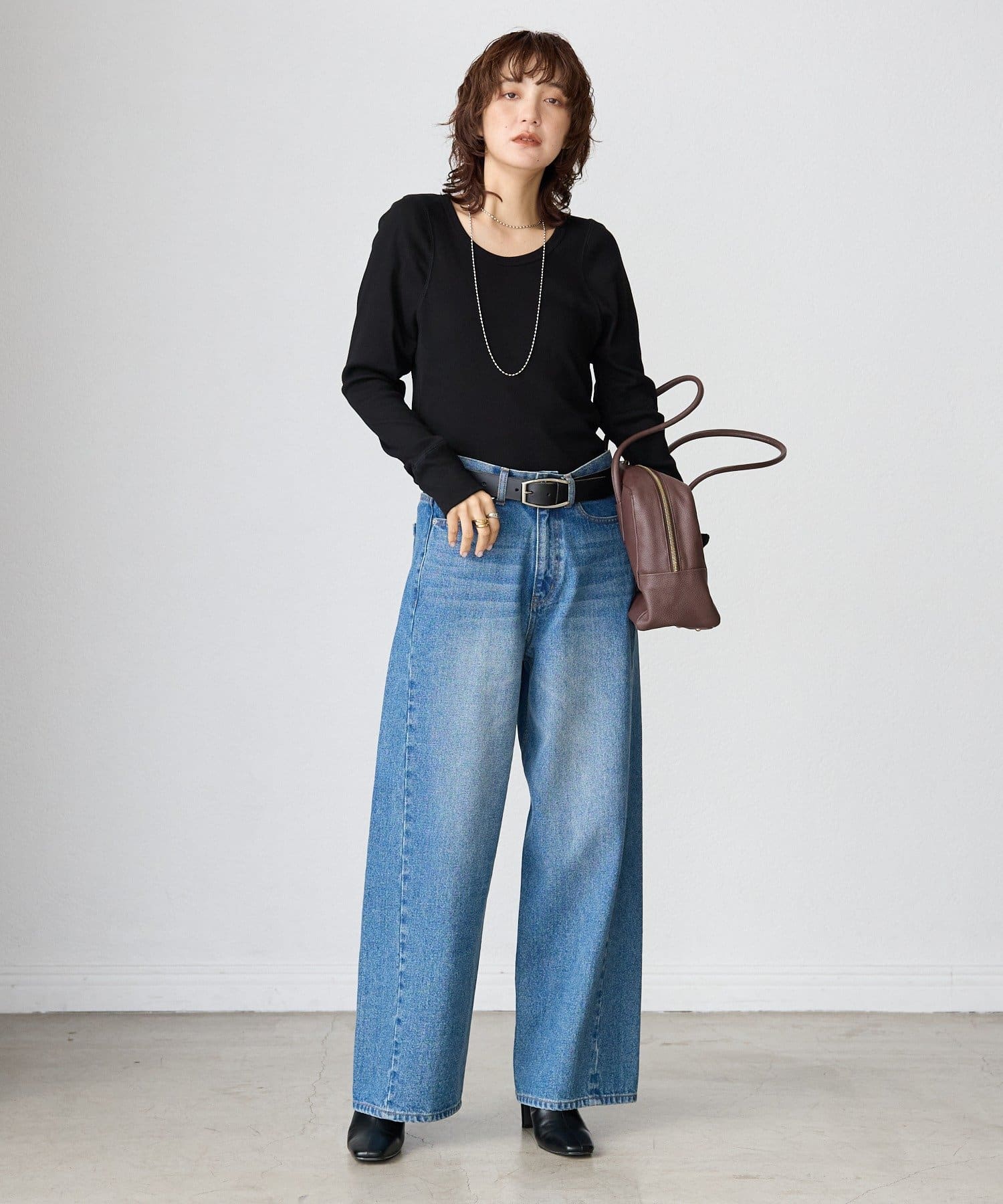 程よくハリがある素材を使用したワイドデニムパンツ。