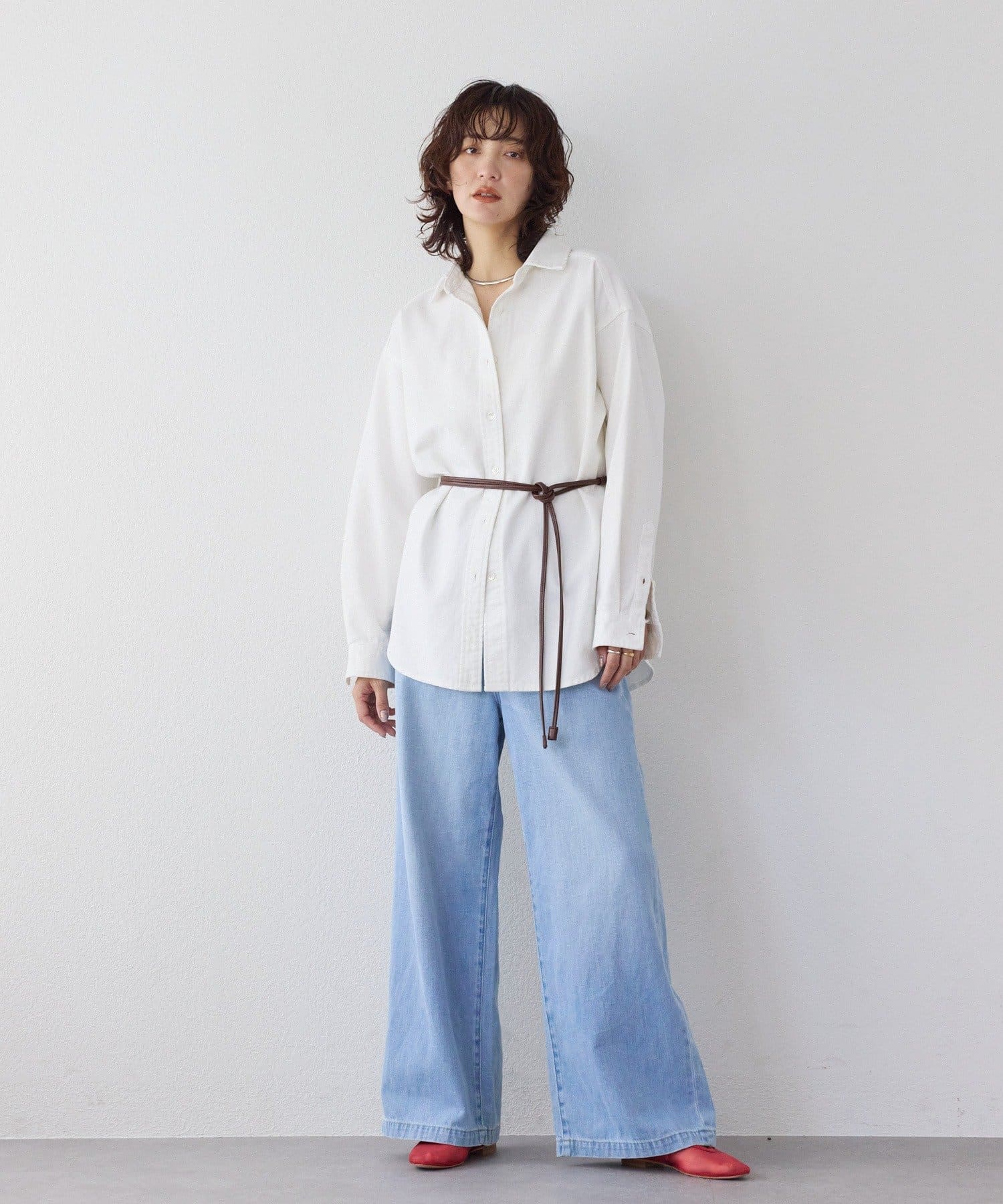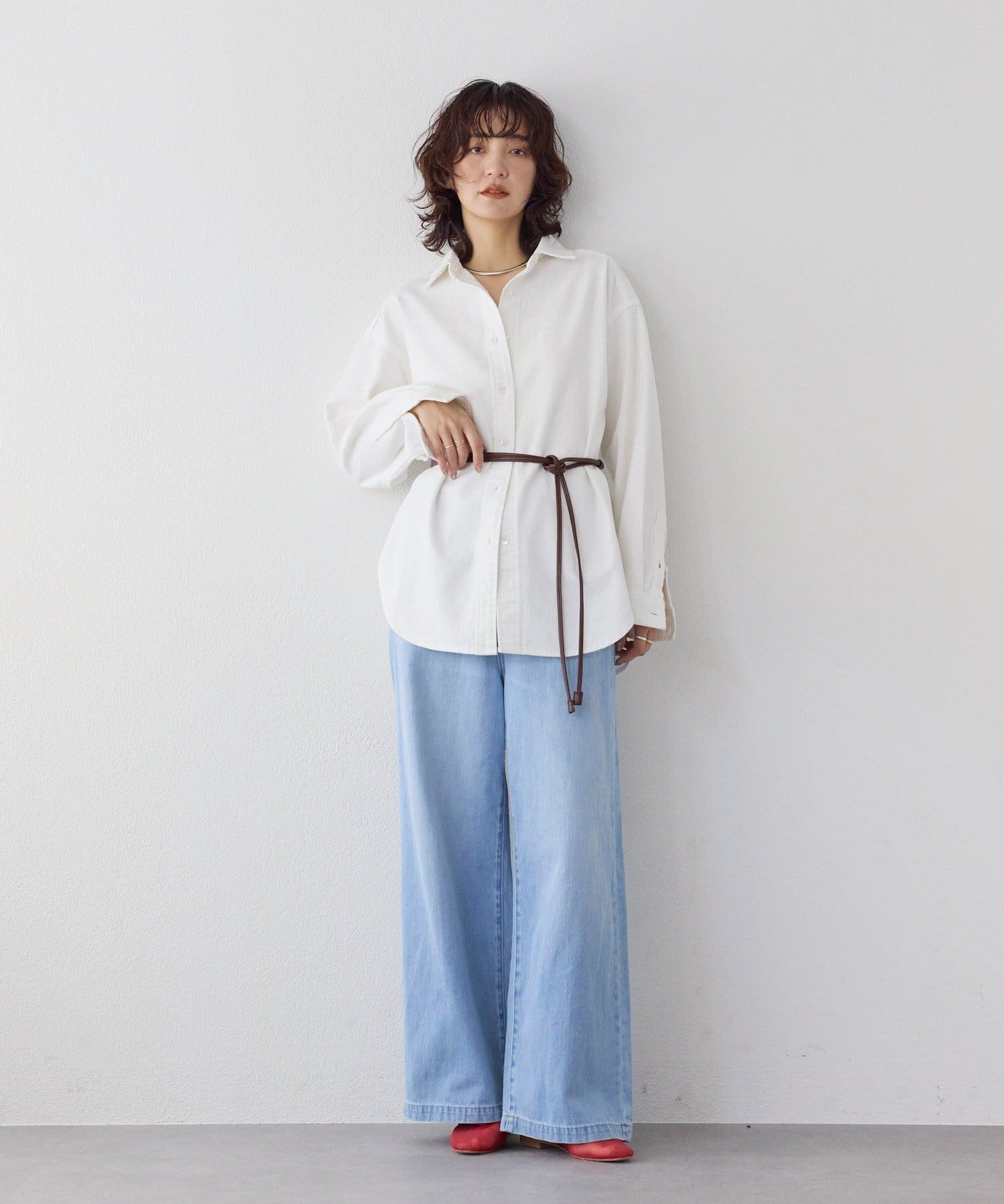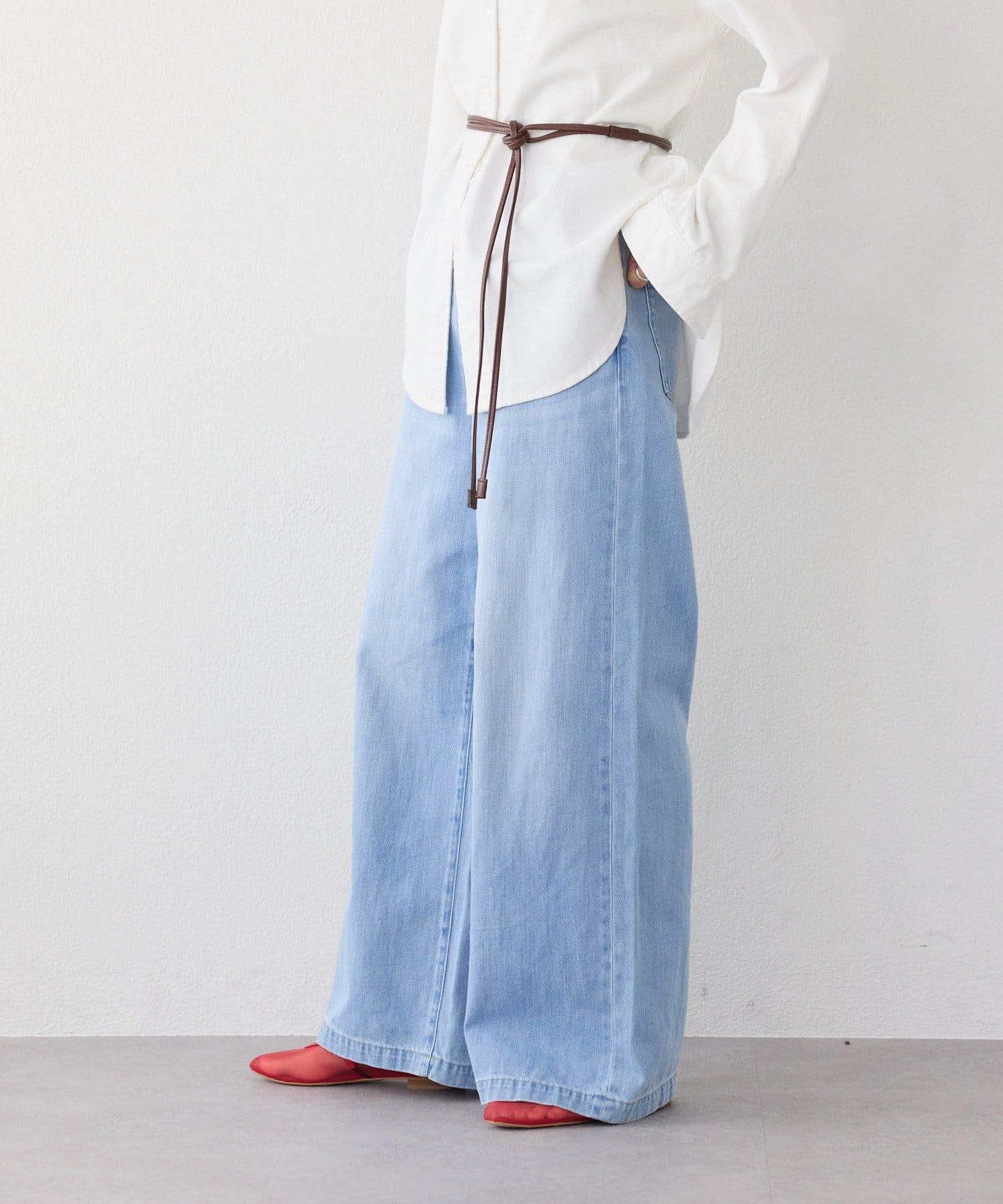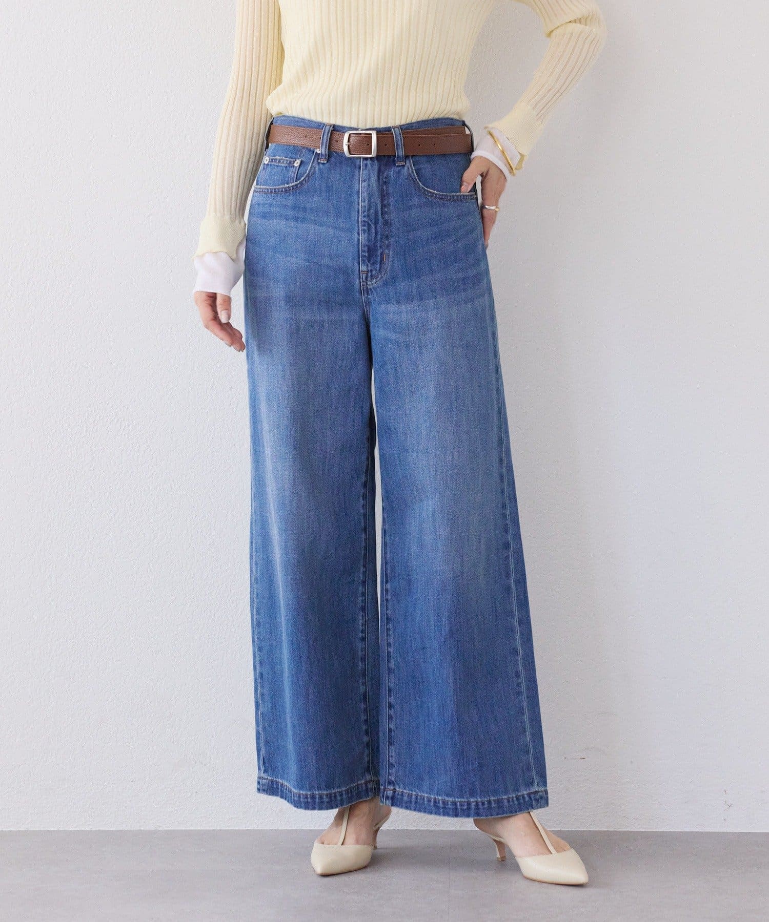 スタイルアップが叶うハイウエストと、ワイドなシルエットが抜け感を演出