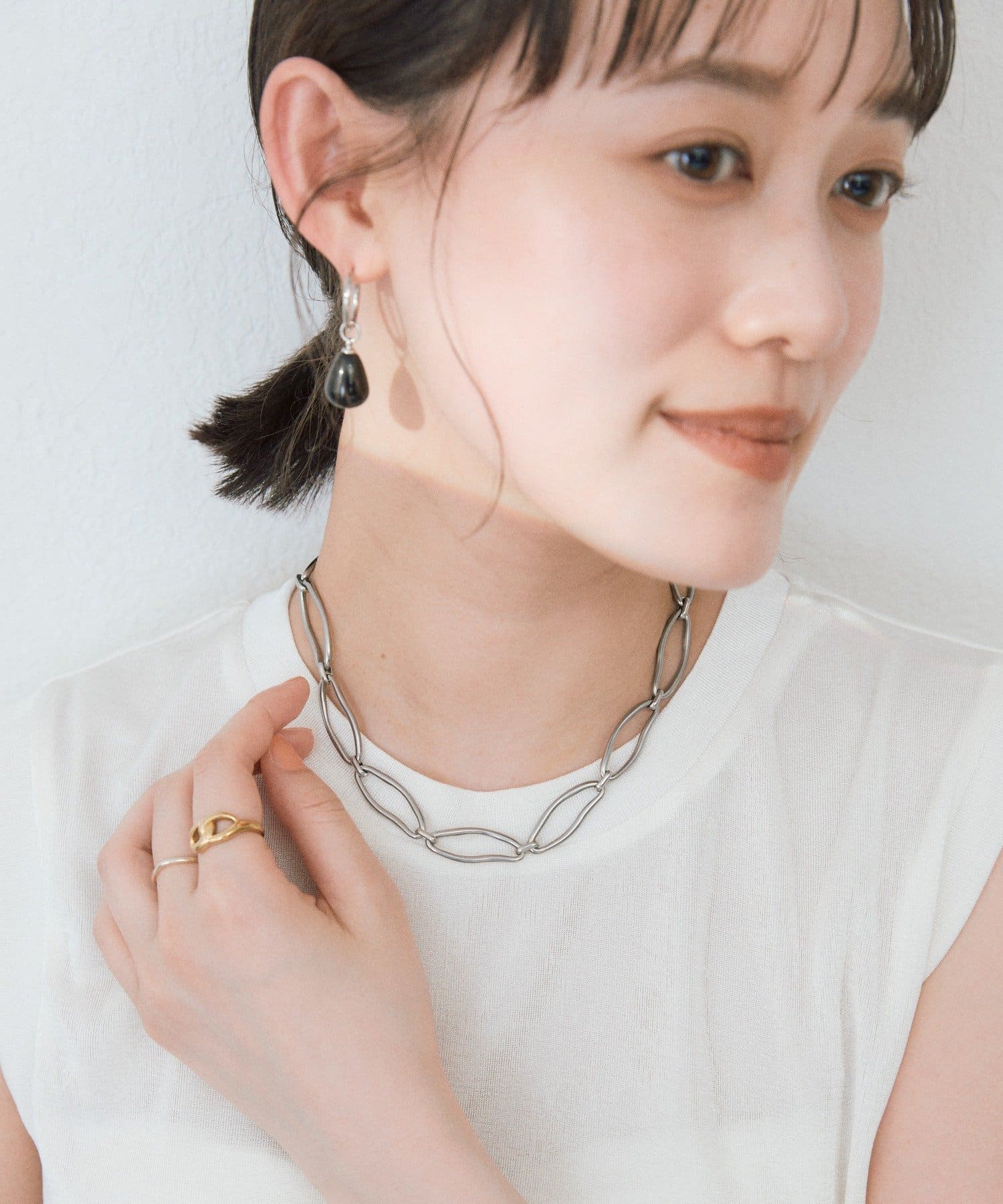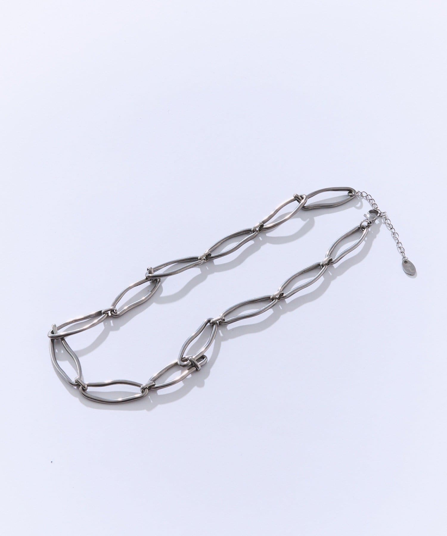 ・あえて歪みを持たせた、不規則なラインのオーバルリンクが目を惹くチェーンネックレス。
