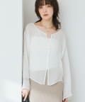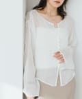 ・リネンの素材感と後ろにつけた貝ボタンのディテールがポイントのシンプルなブラウス