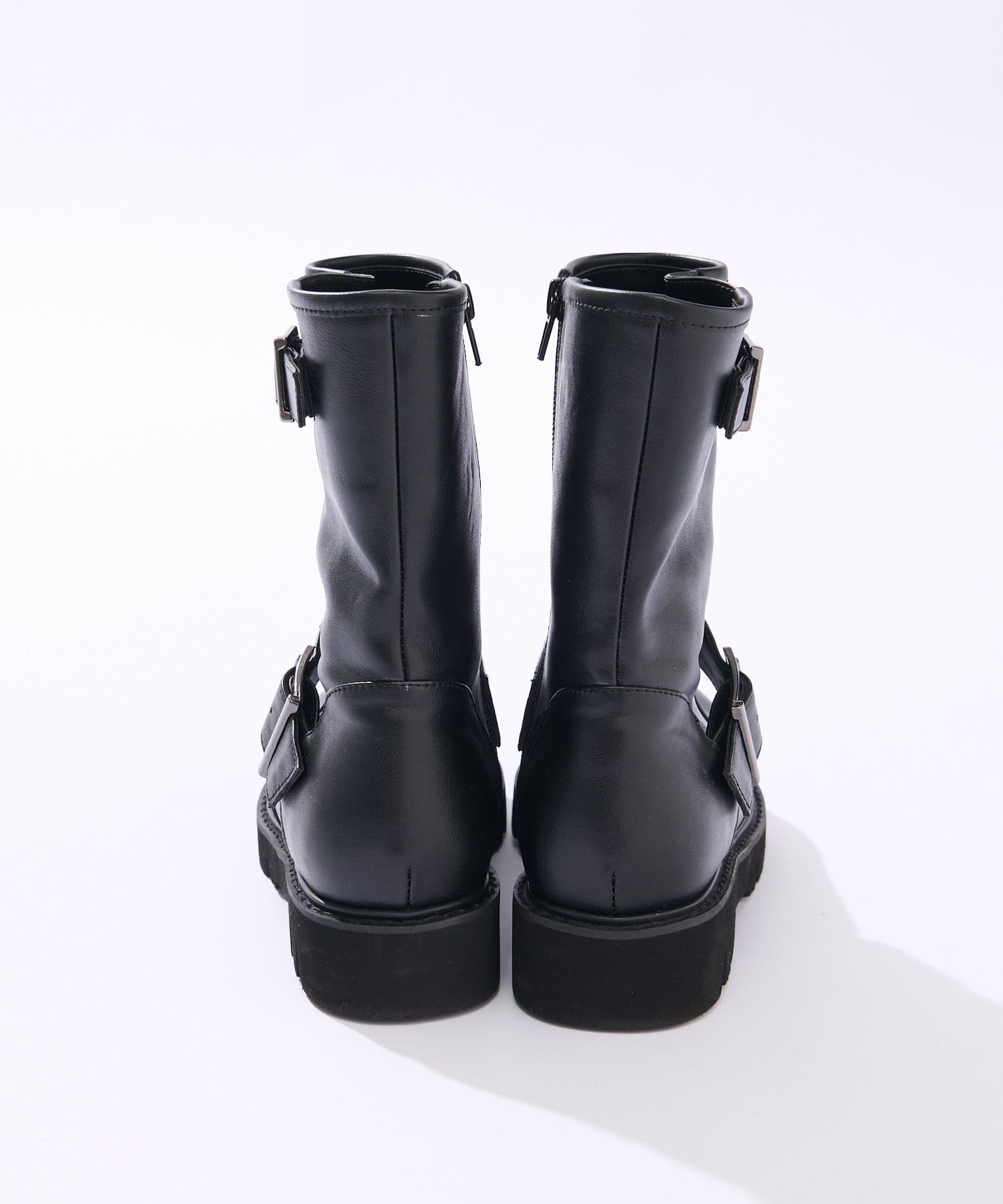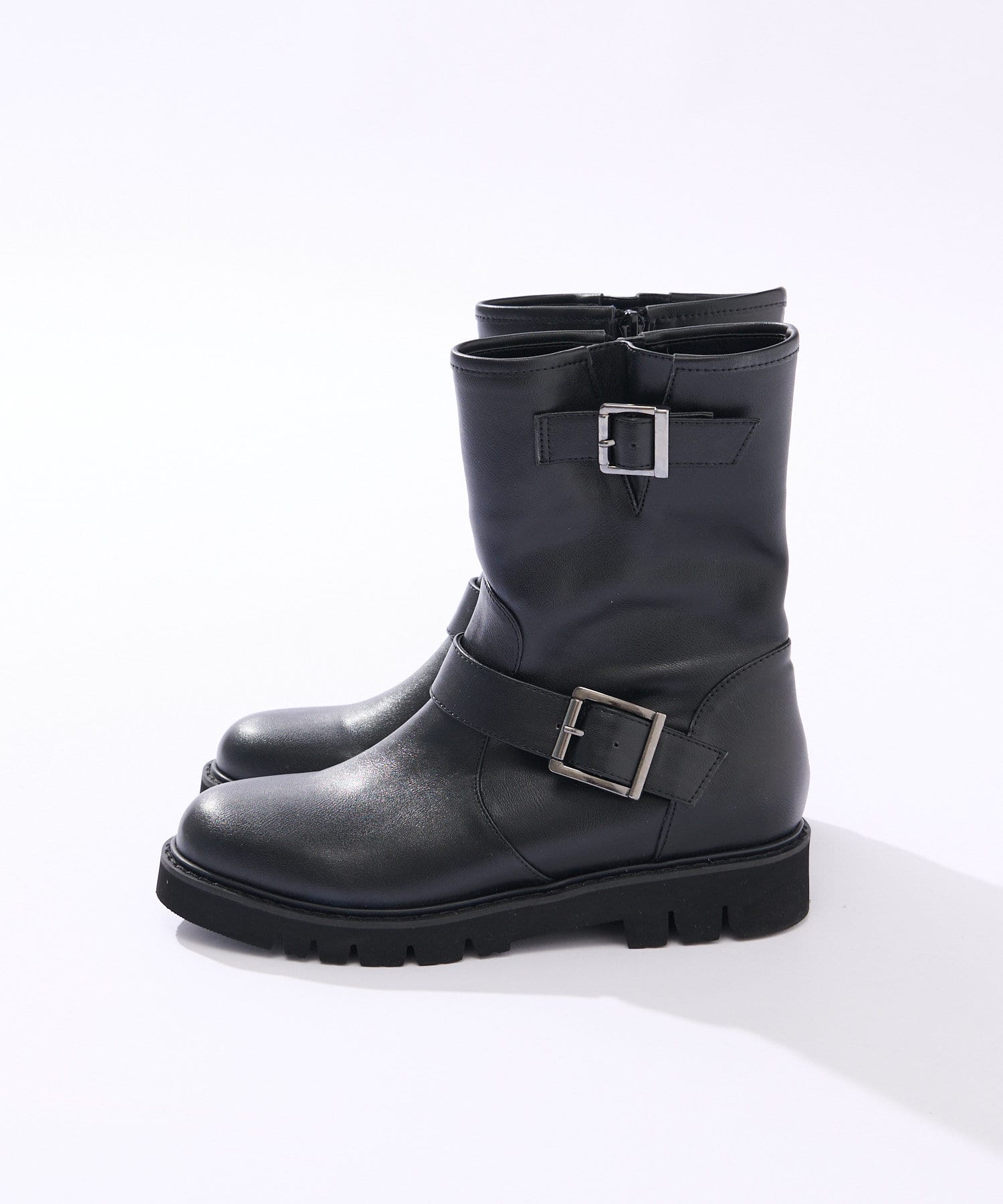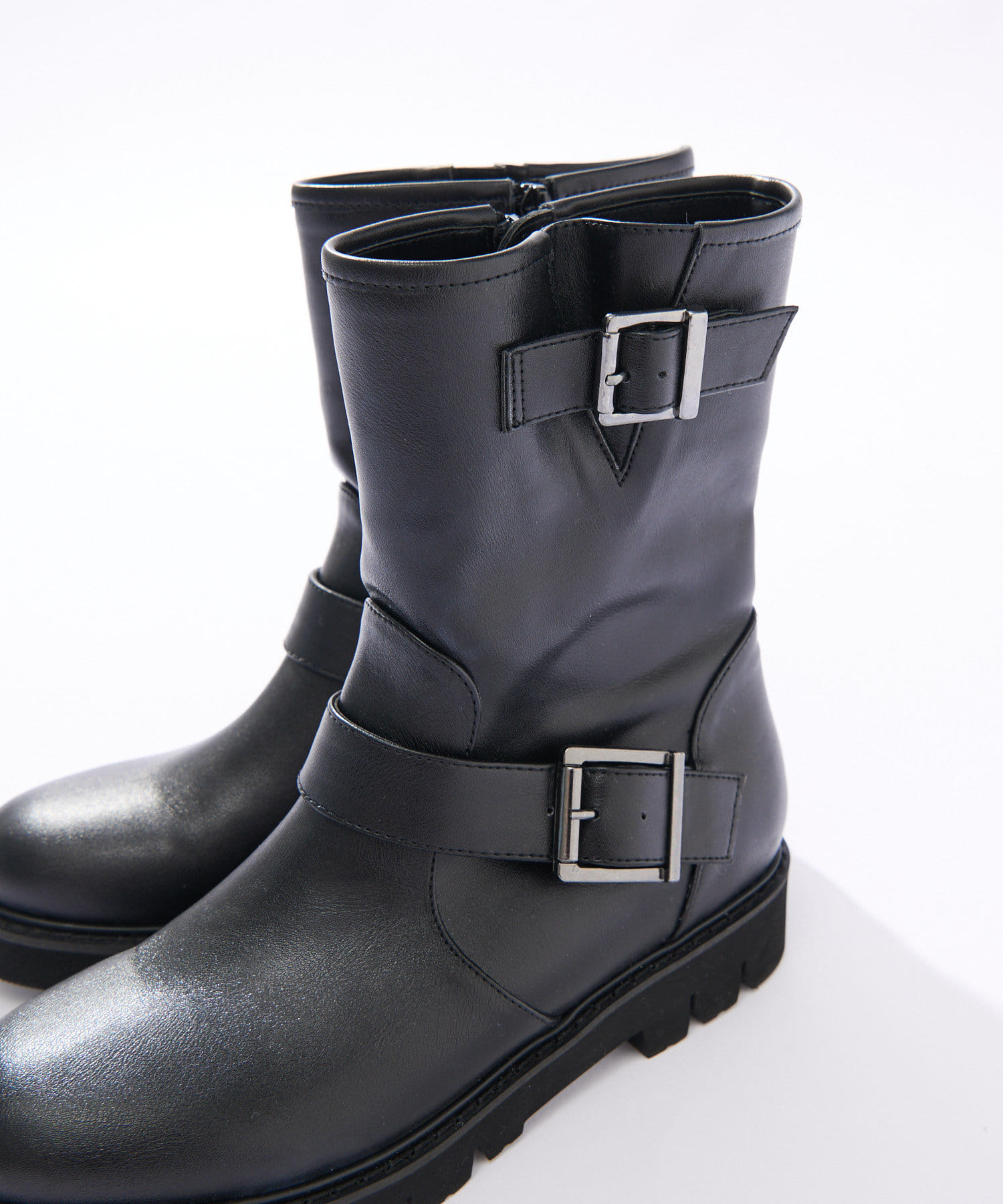 バックルベルトのデザインがポイントのエンジニアブーツ。