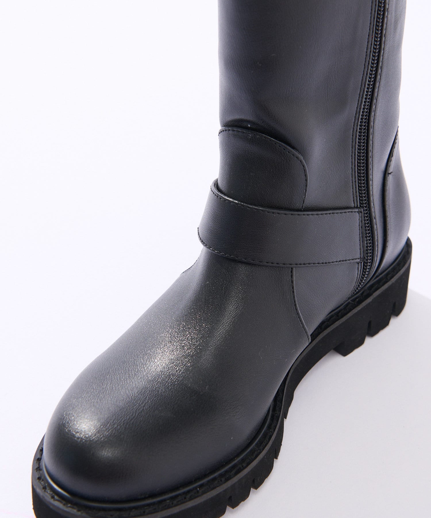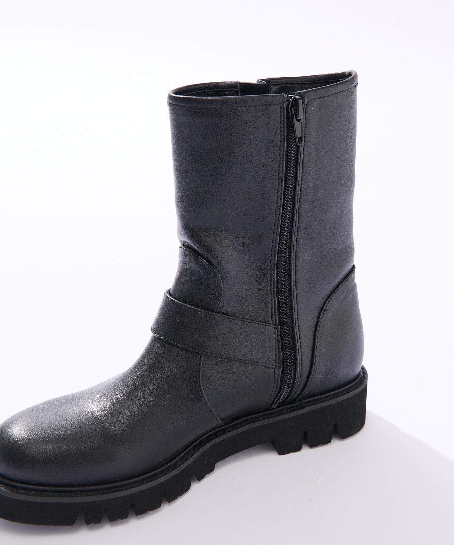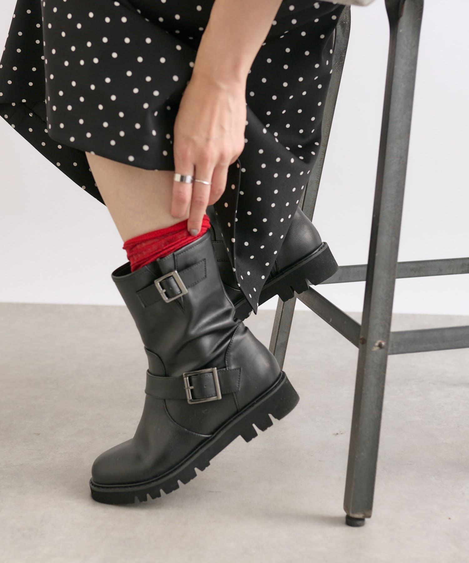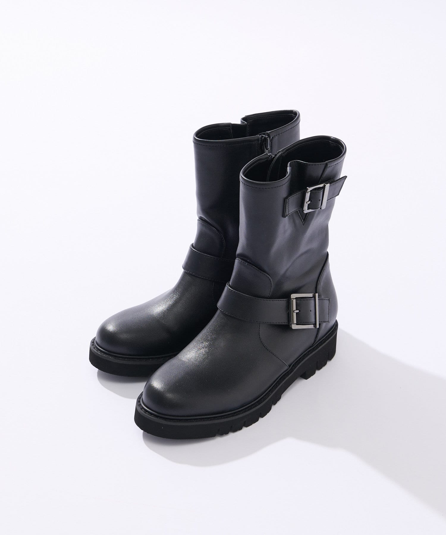 バックルベルトのデザインがポイントのエンジニアブーツ。