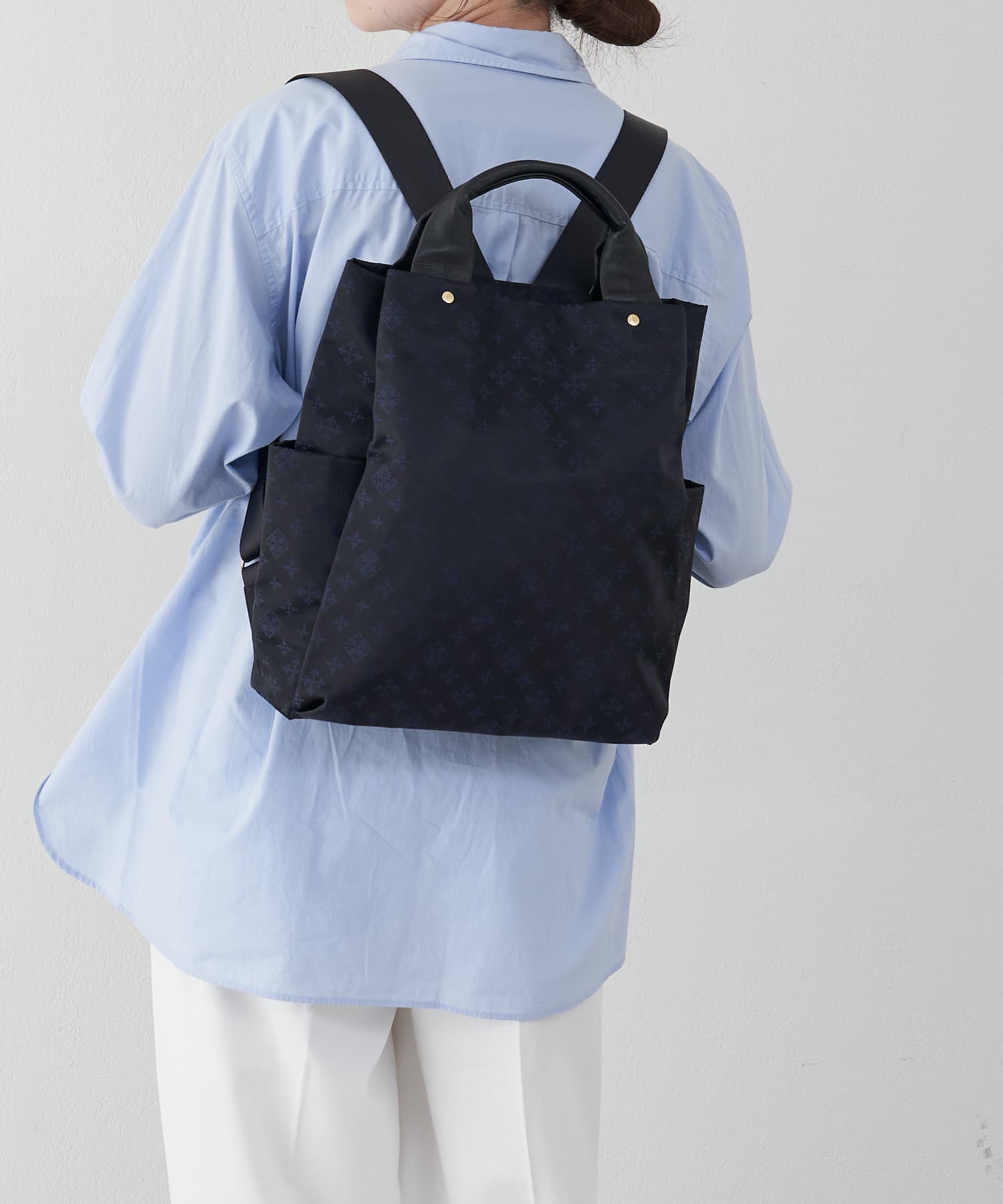 背負っても手持ちでも。気分に合わせて持ち分けられるリュックサック。