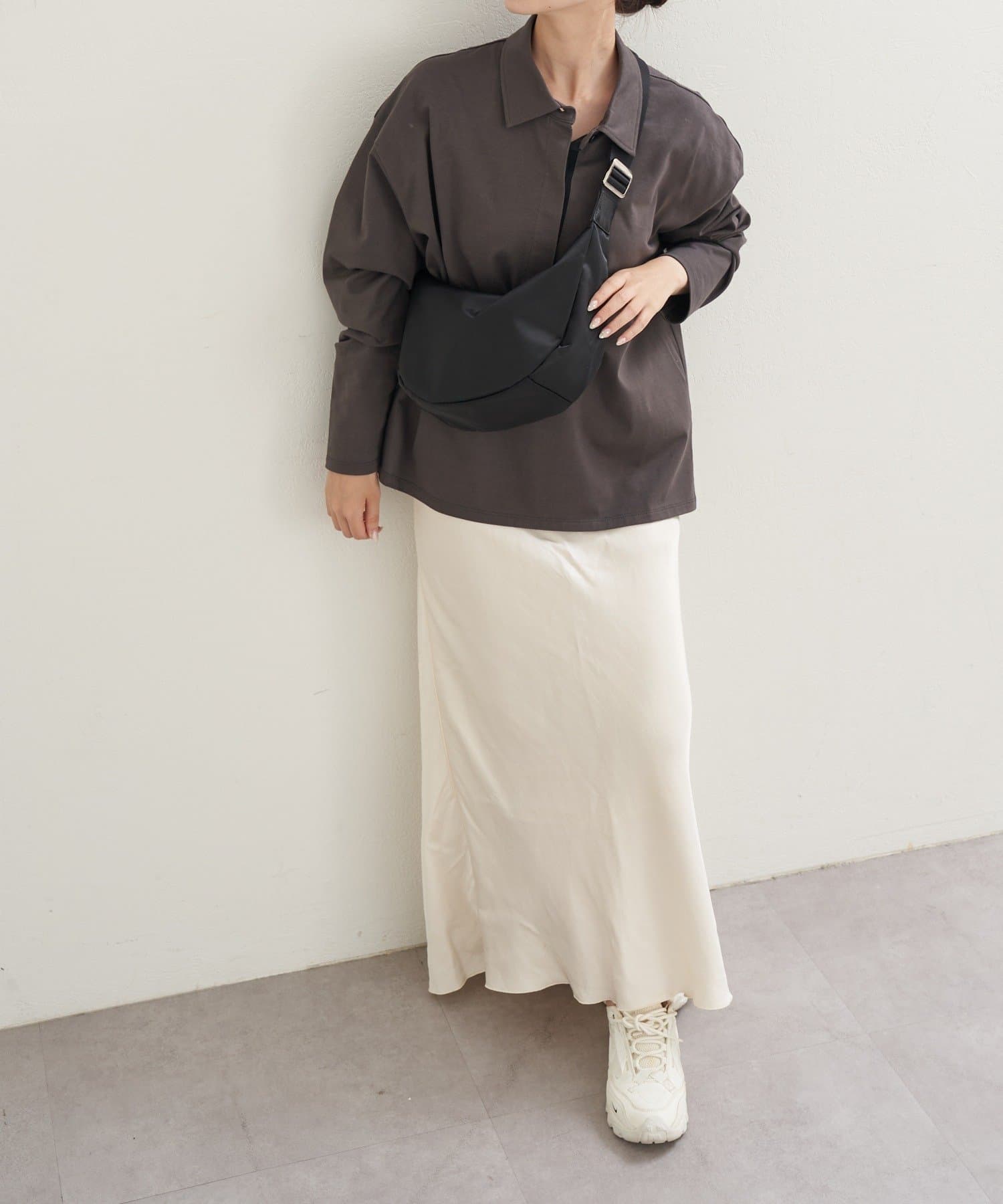カジュアルにもきれいめにも持てるシンプルなデザインで体にフィットしやすいアイテムです。