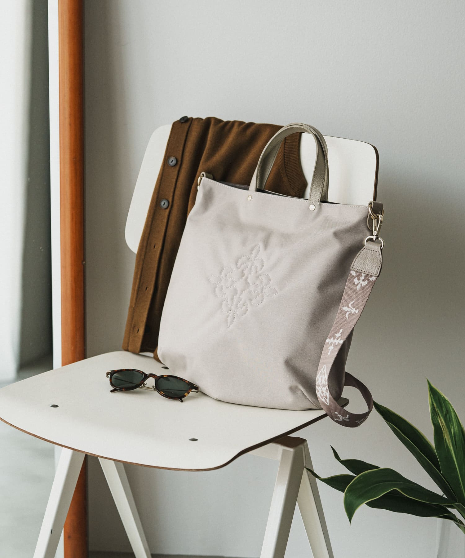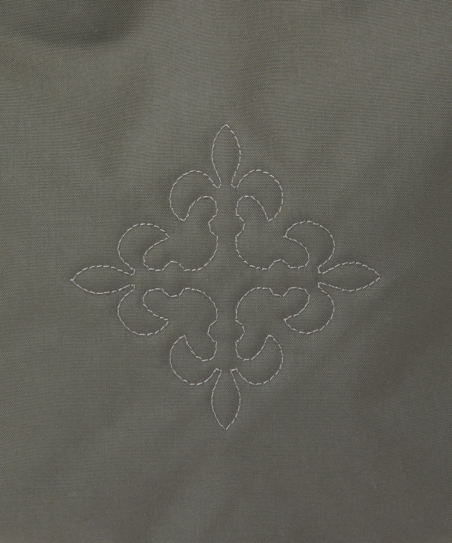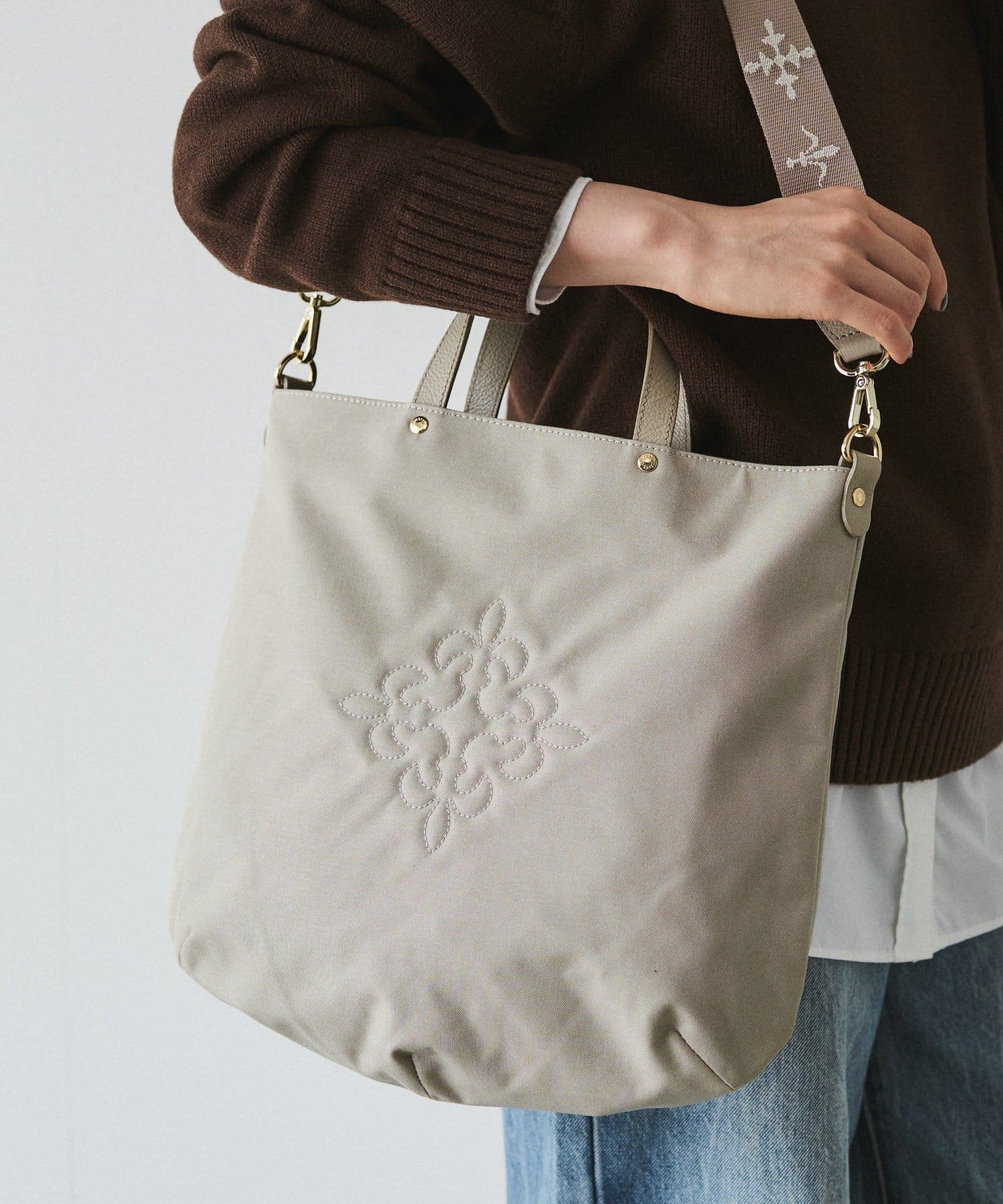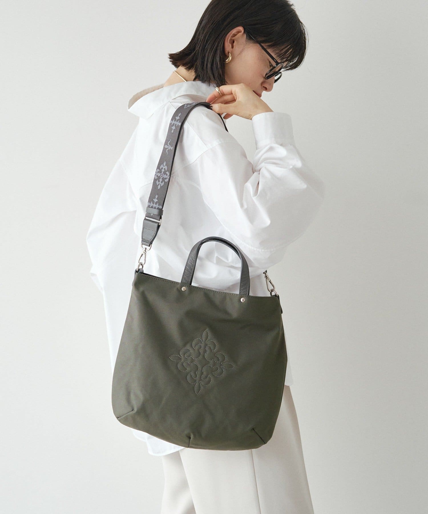 マットな質感のコーデュラナイロンにモノグラムのモチーフを繊細な刺繍で表現。