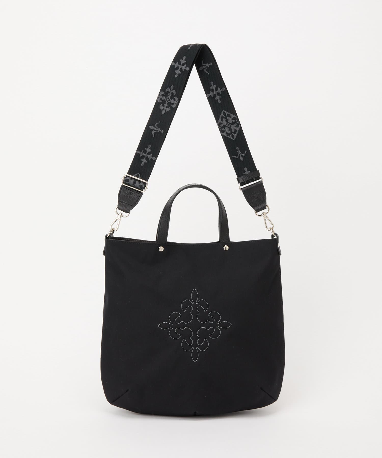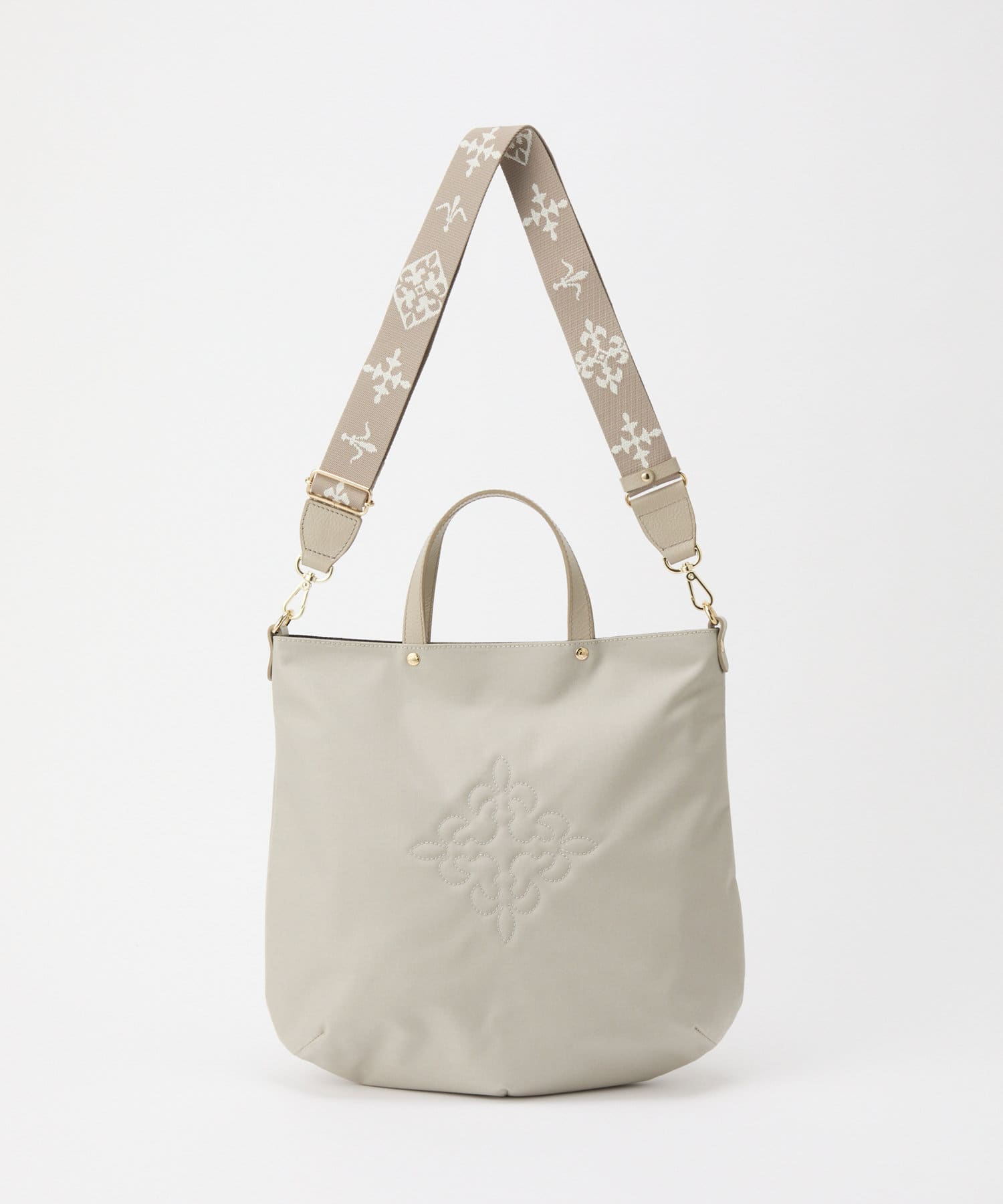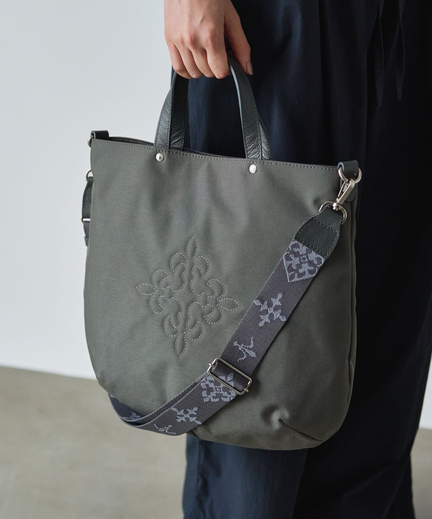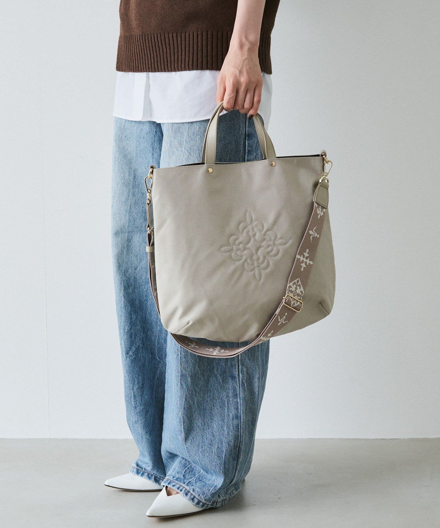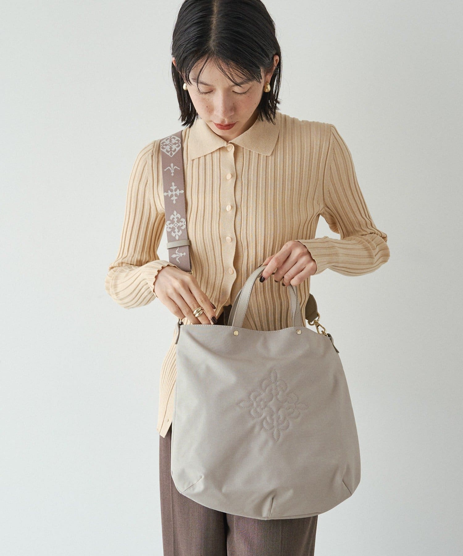 マットな質感のコーデュラナイロンにモノグラムのモチーフを繊細な刺繍で表現。