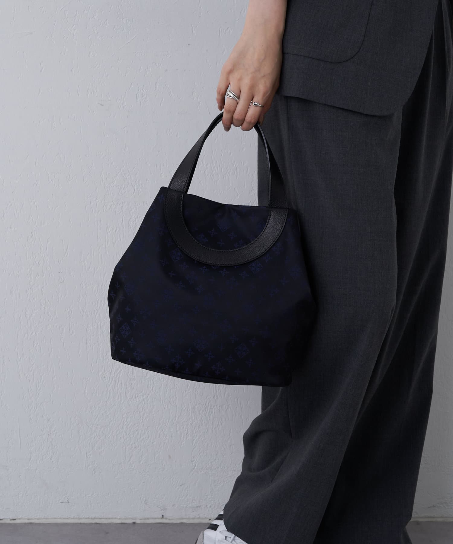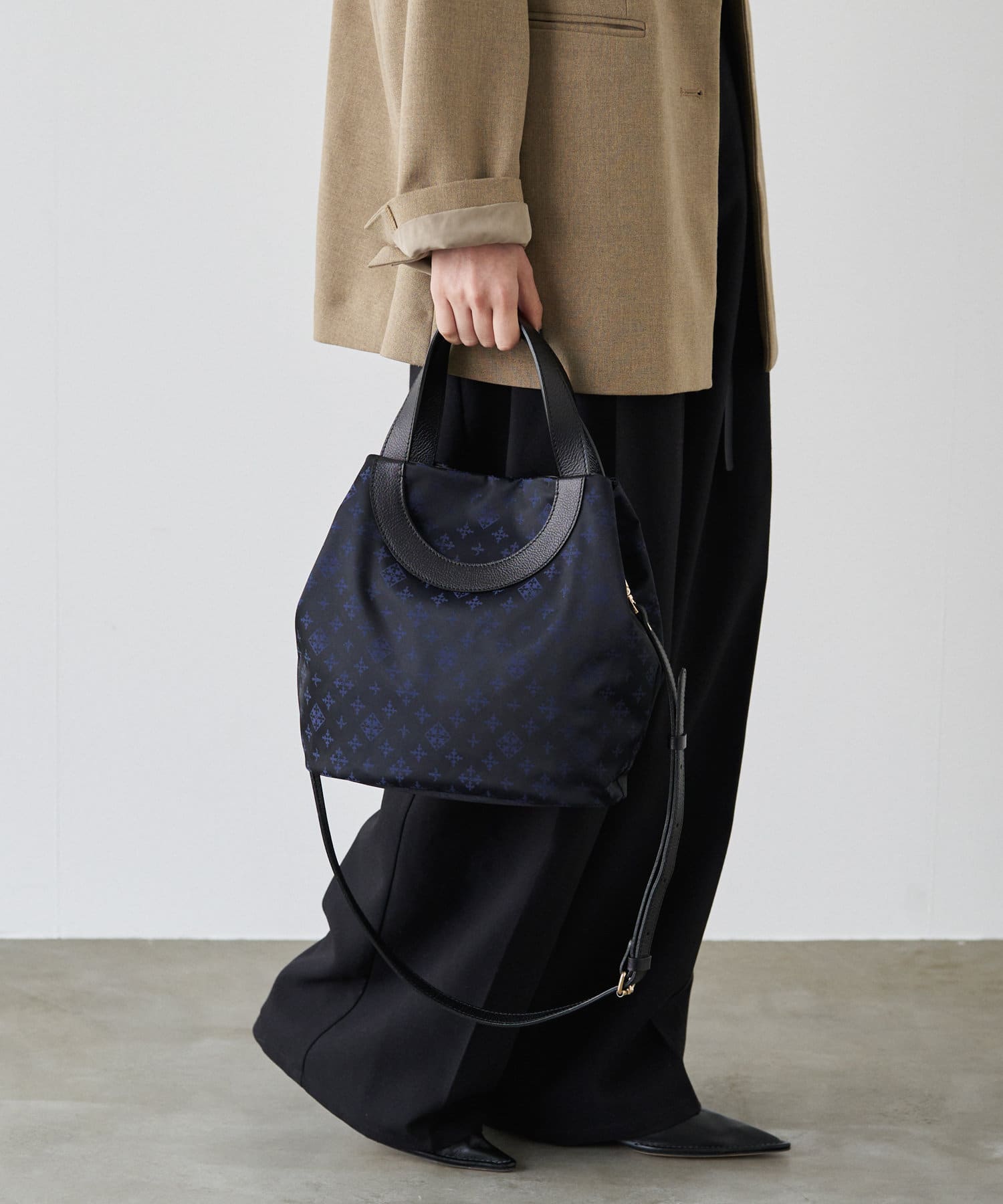 上品な光沢と繊細なモノグラム柄が魅力のナイロンジャガード。