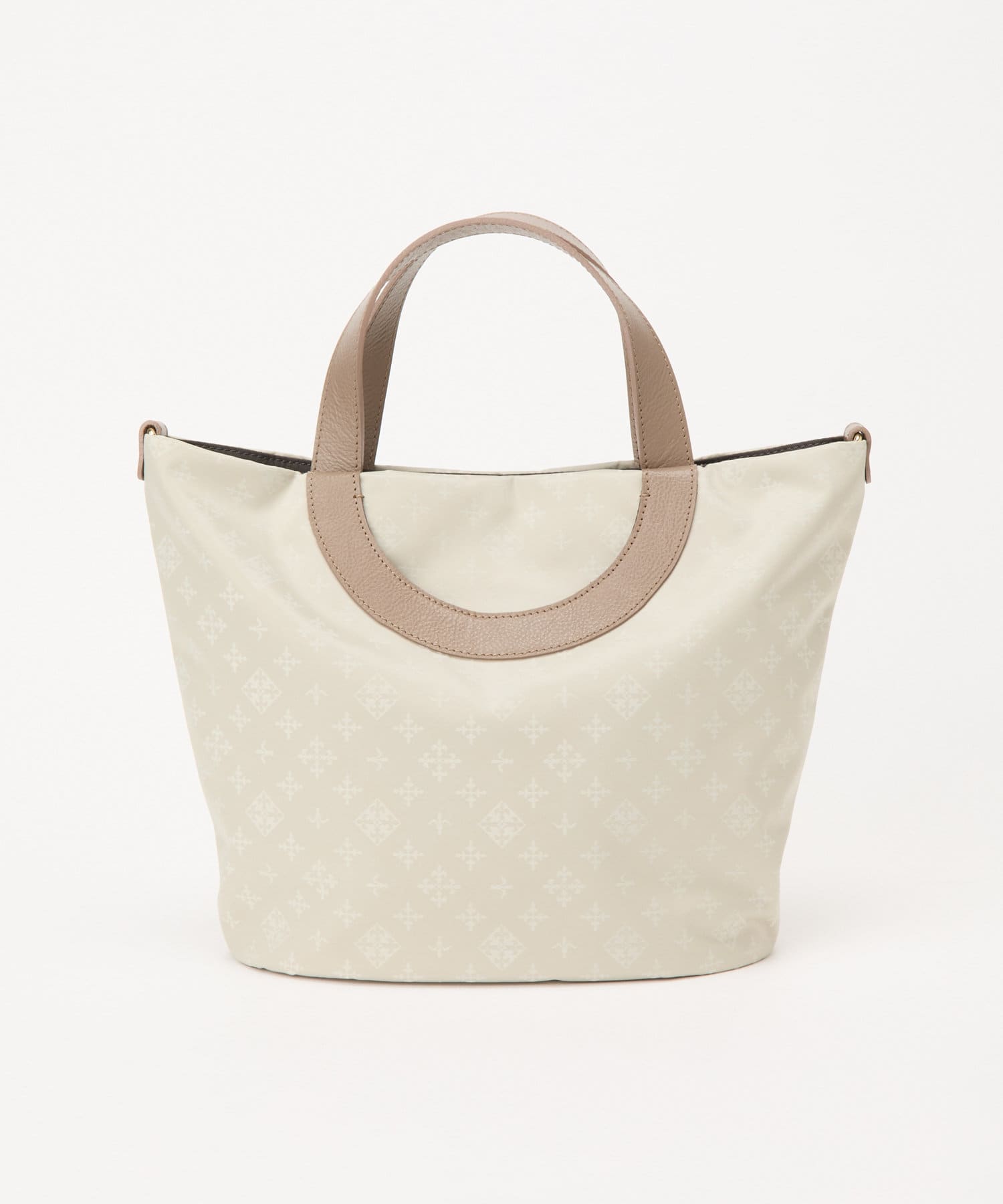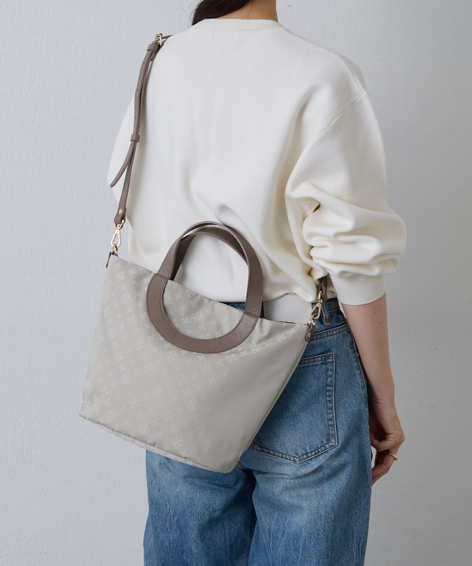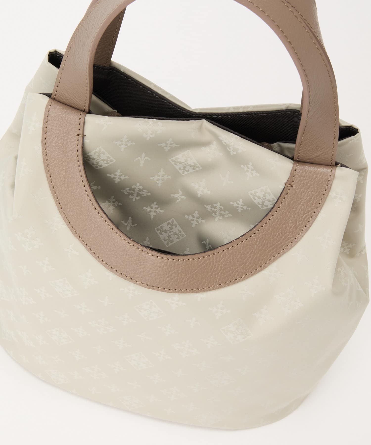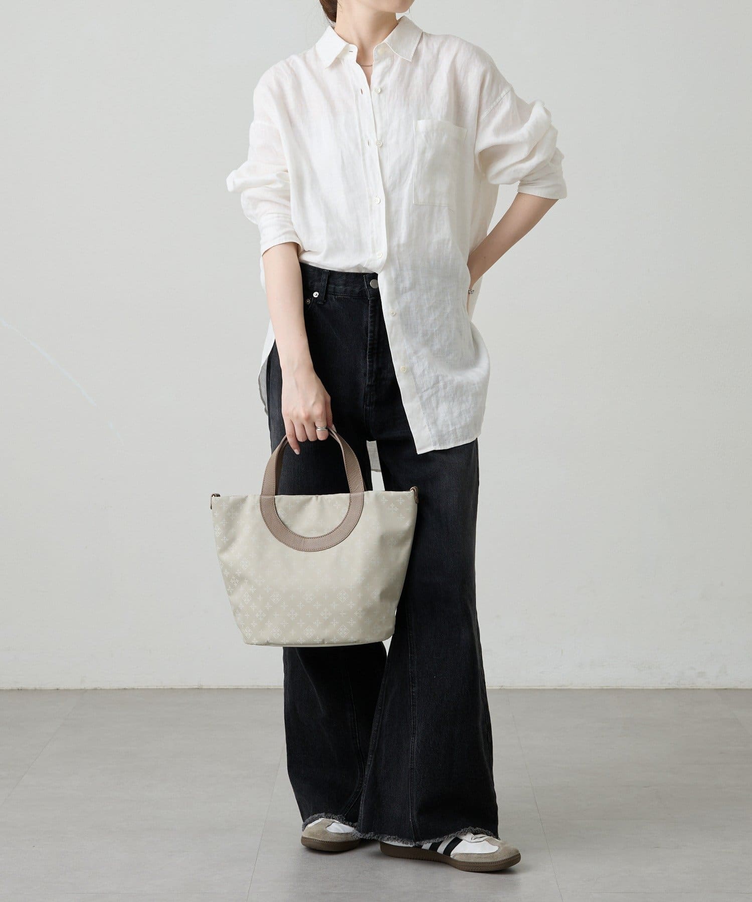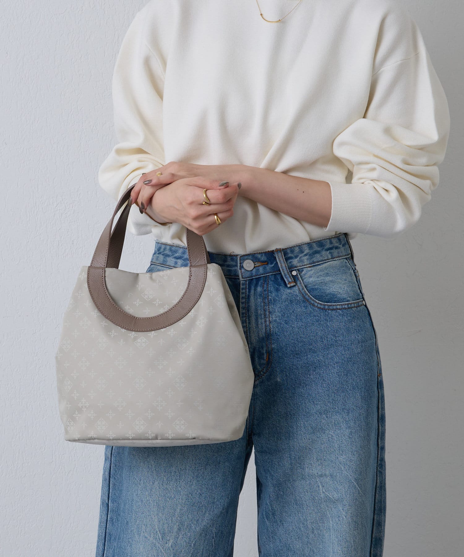 ハンドル部分にレザーをあしらうことで、カジュアルさの中にも大人らしい落ち着きを添えています。