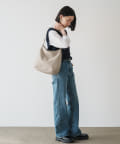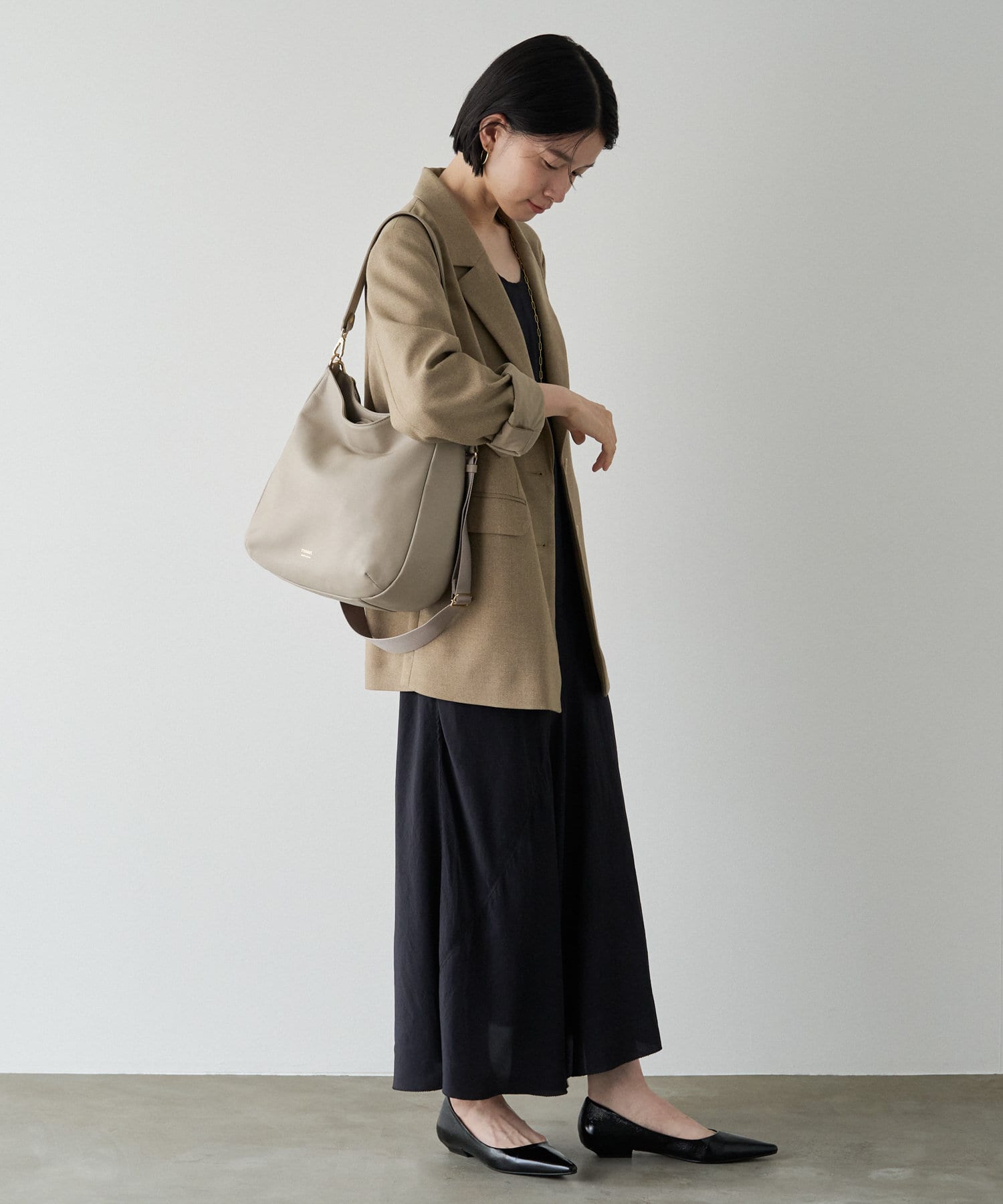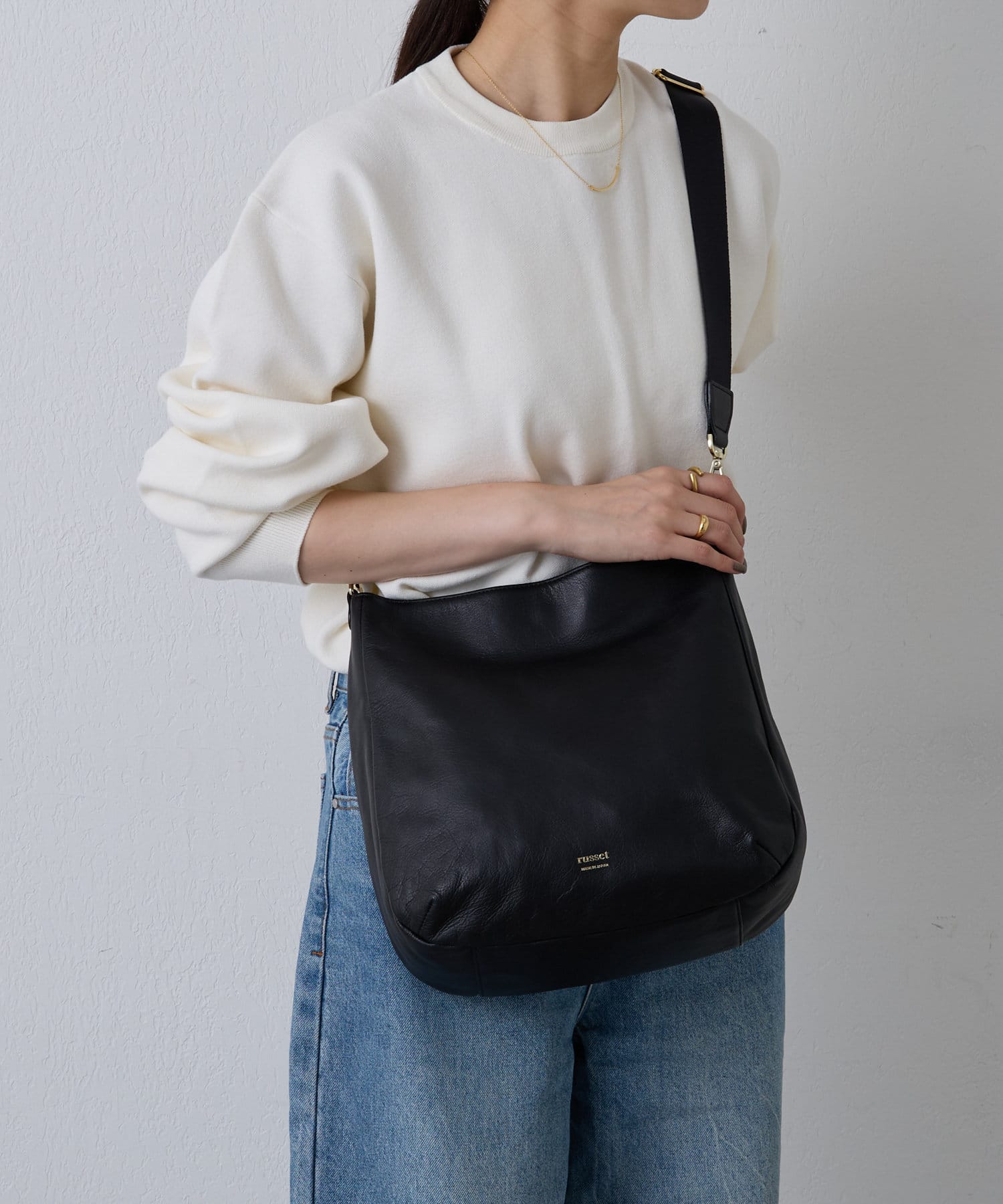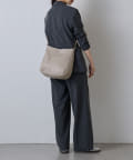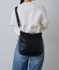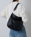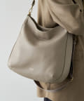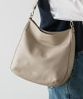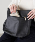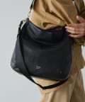 ラフな印象が強くなりやすいラージサイズのショルダーバッグをソフトレザーで仕上げて、シンプルかつ上品に。