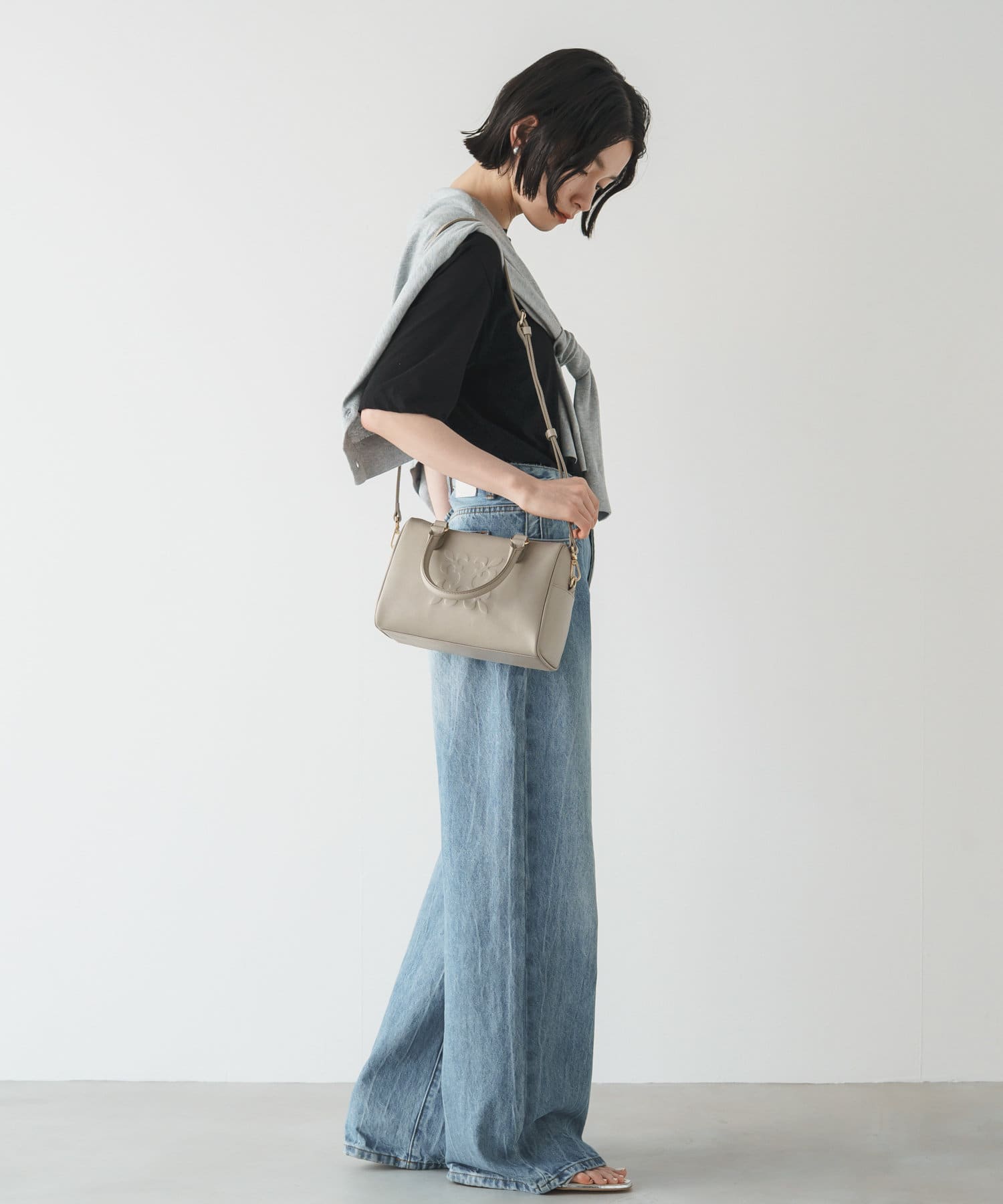 立体的に仕上げたモノグラムモチーフがポイントになっていて、持つだけで魅力的に。