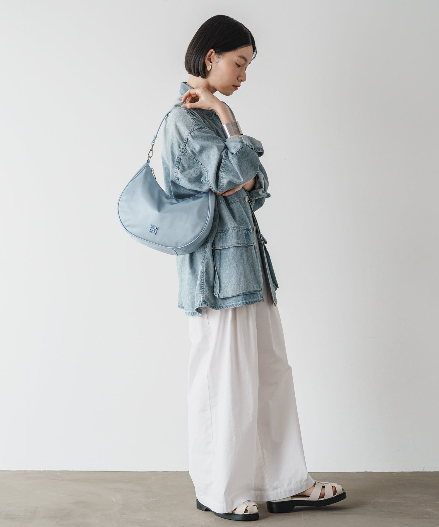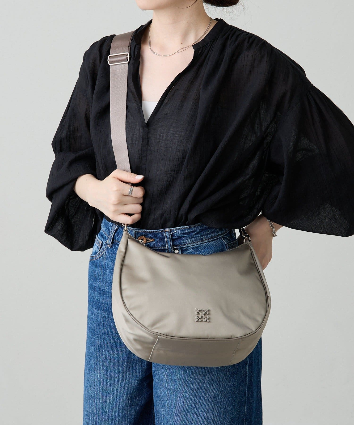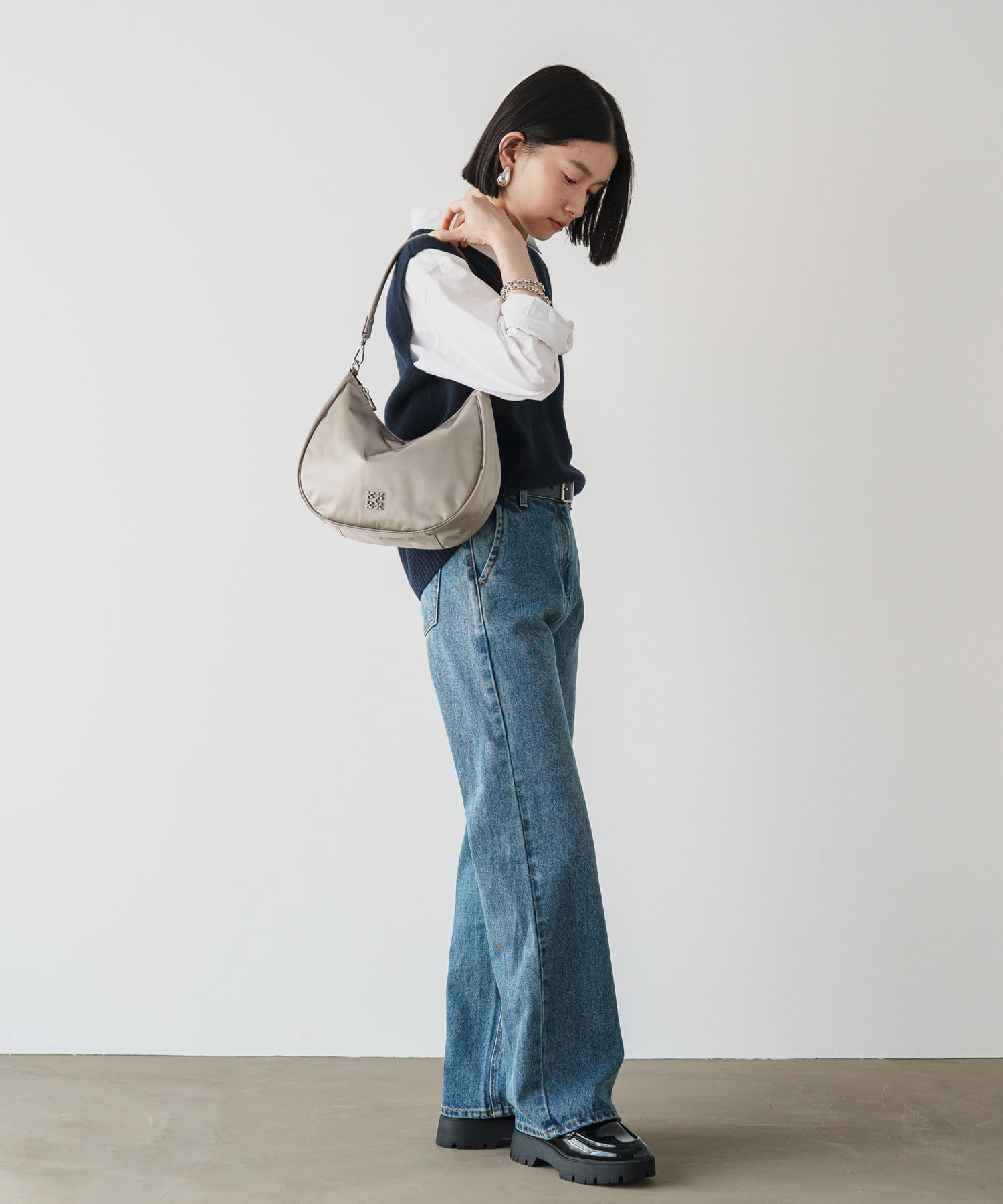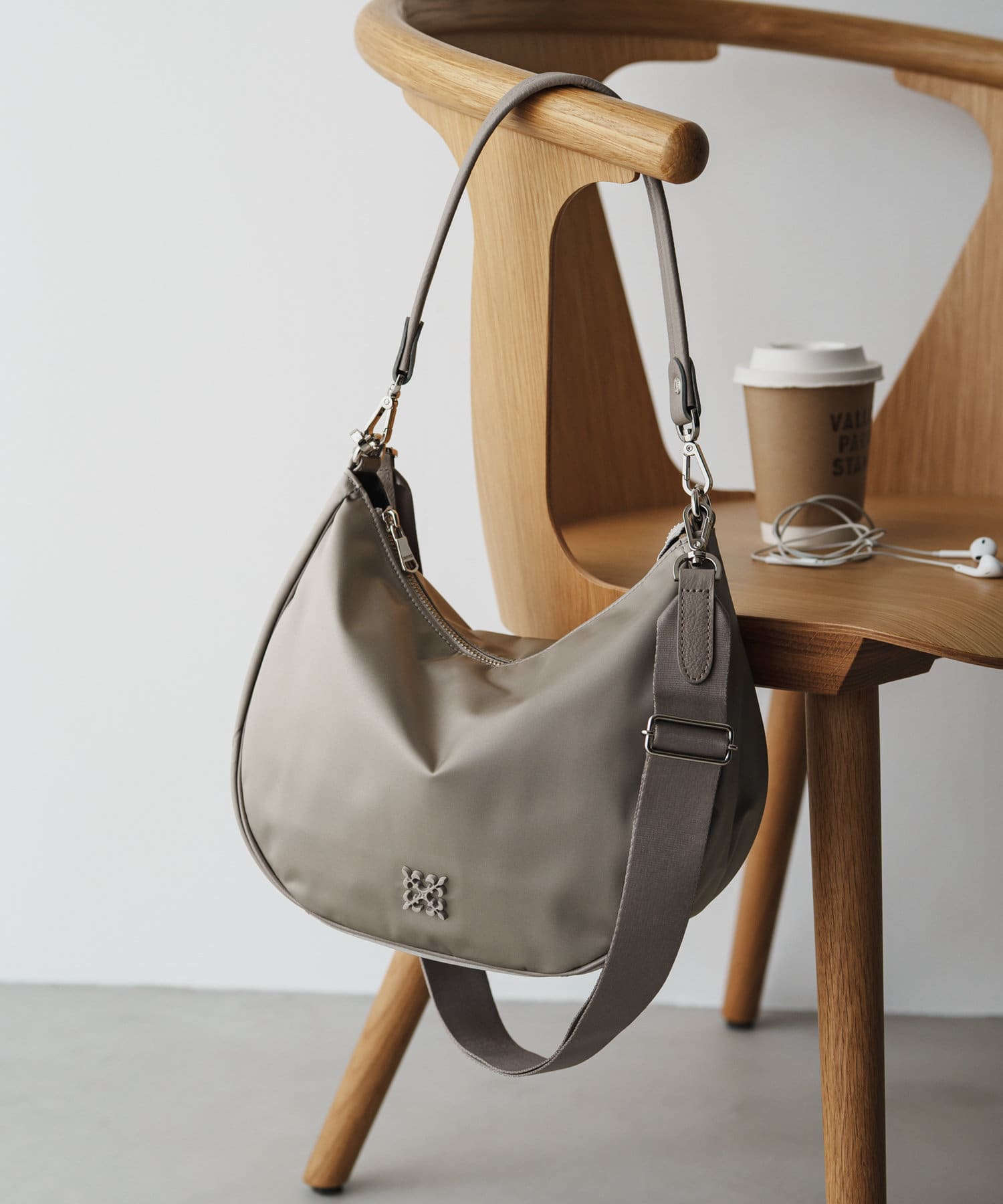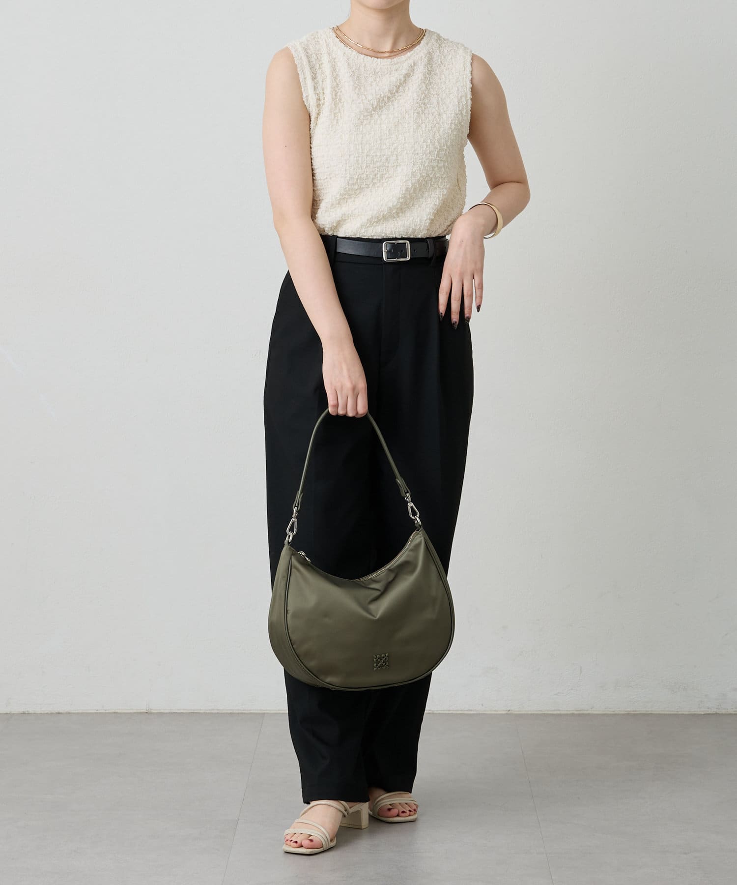 長さの違うショルダーベルトが2本付属しているので、スタイリングに合わせてワンショルダーと斜めがけを使い分けていただけます。