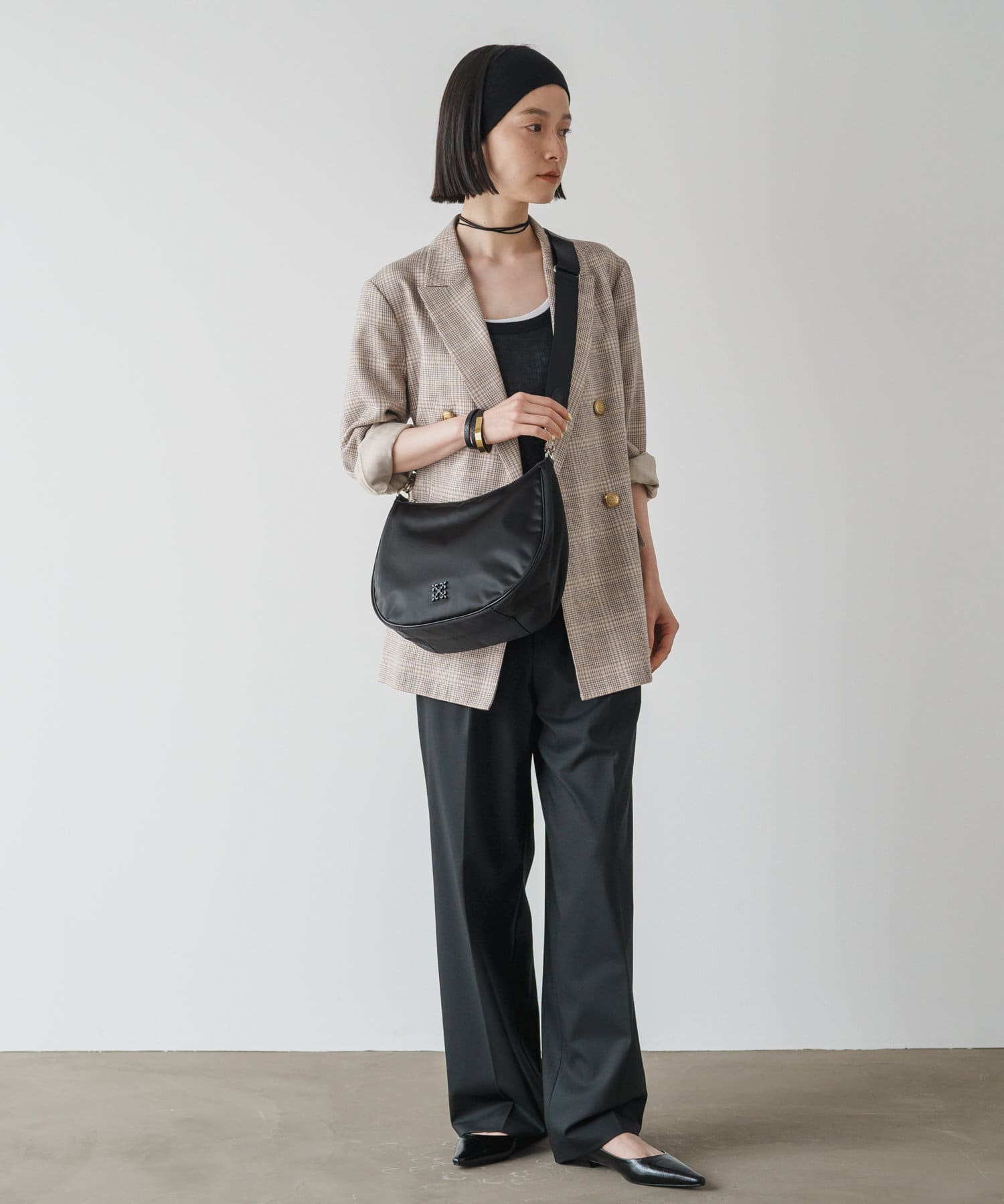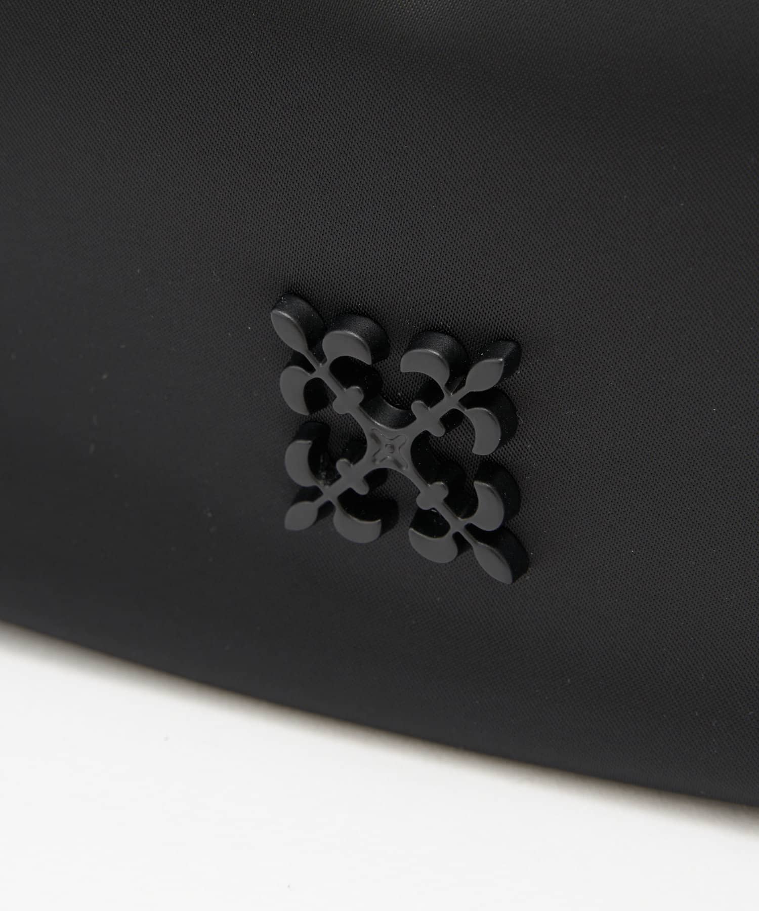 無地なので幅広いスタイリングにマッチするアイテムですが、マットなモノグラムモチーフのプレートがデザインのポイントになっています。