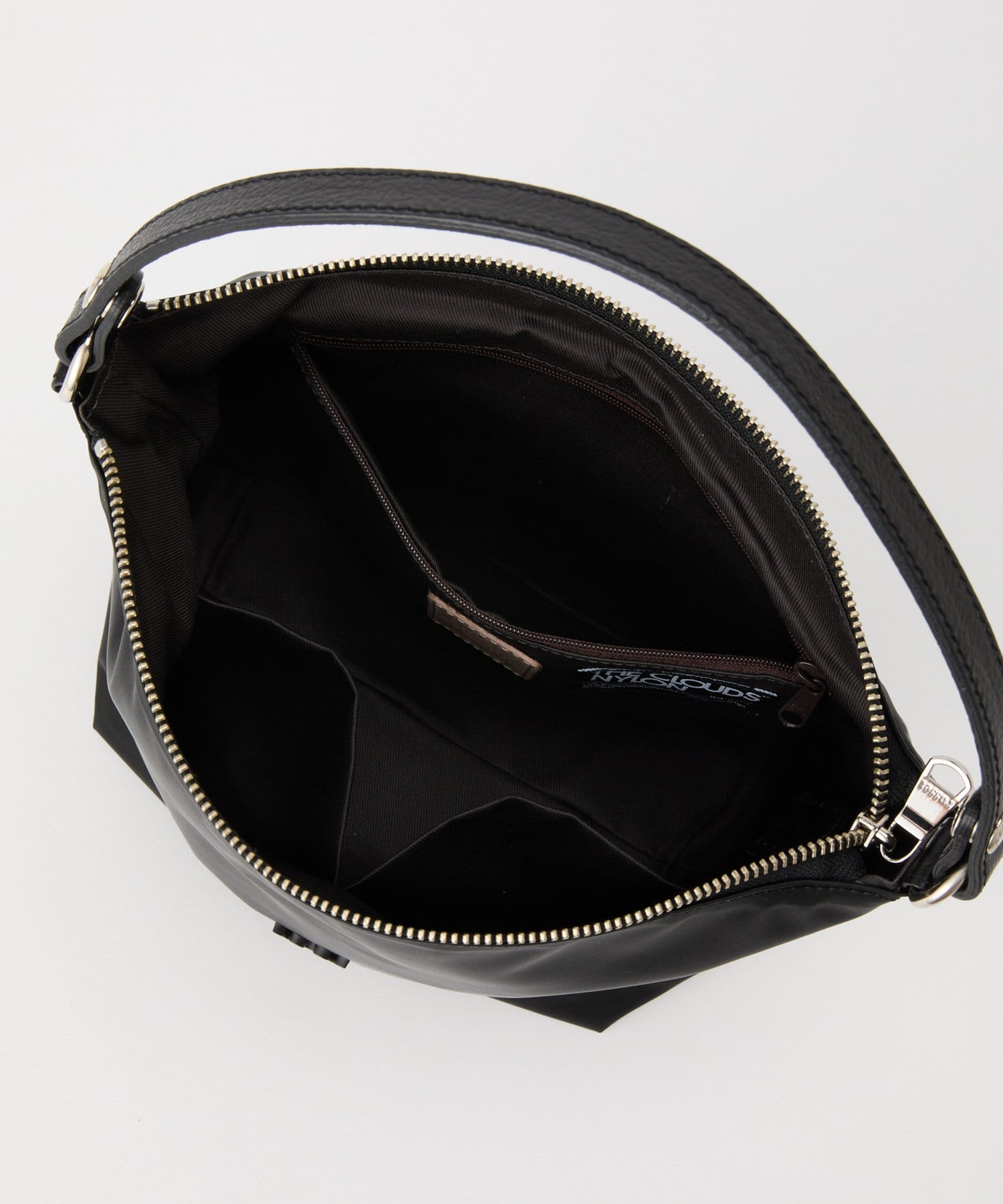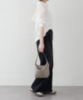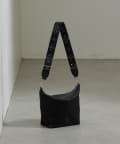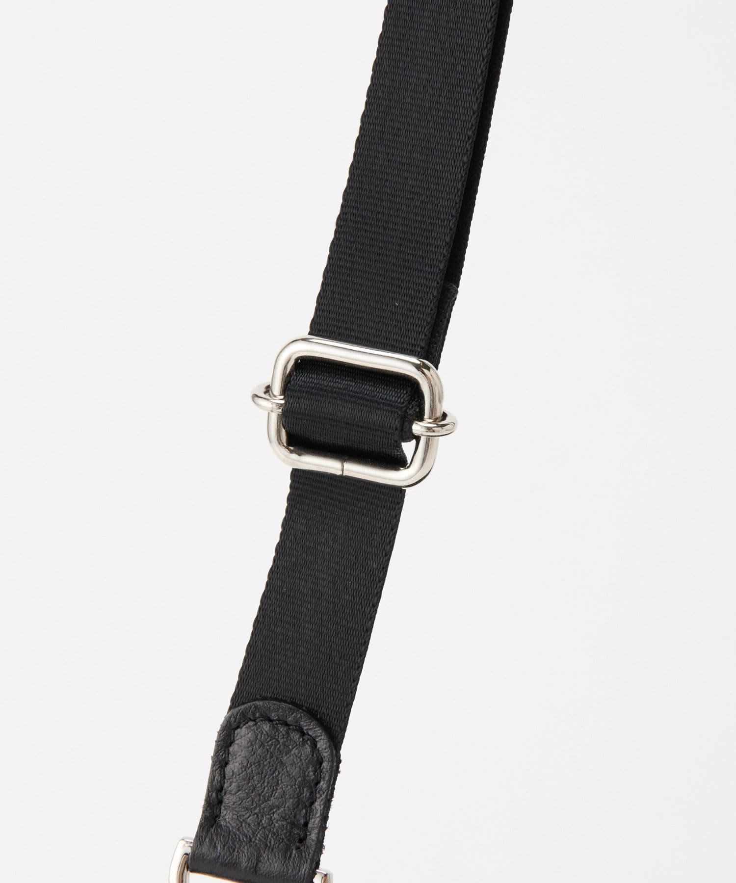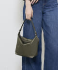 短いレザーベルトでも肩掛けができて、ショルダー持ちでも収まりのすっきりとしたシルエットに。