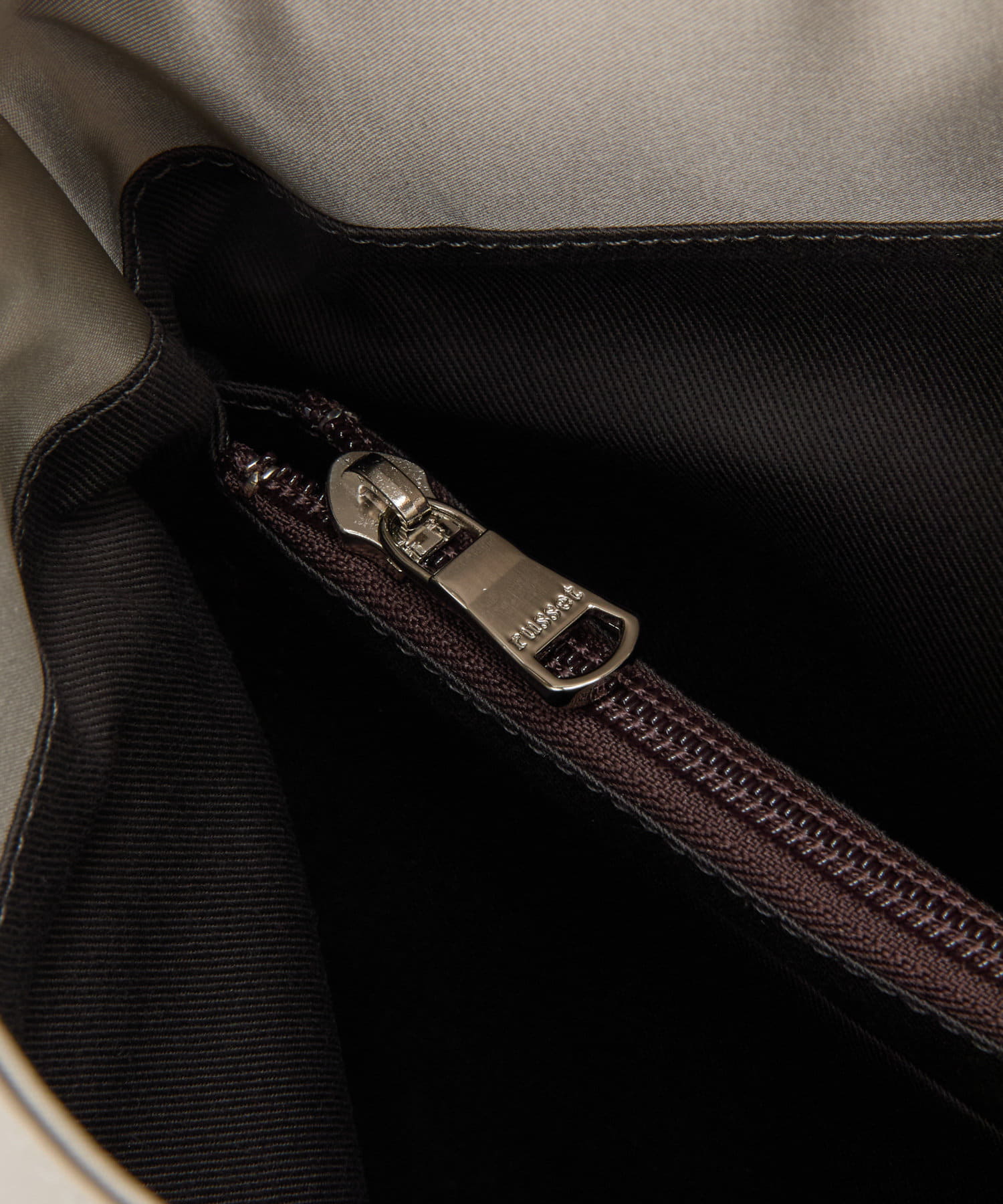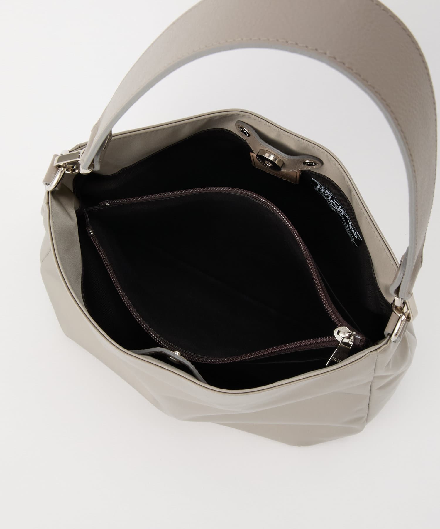 中央にはお財布など貴重品をしっかり収納できるファスナーポケットを配置し安全面にも気を配りました。