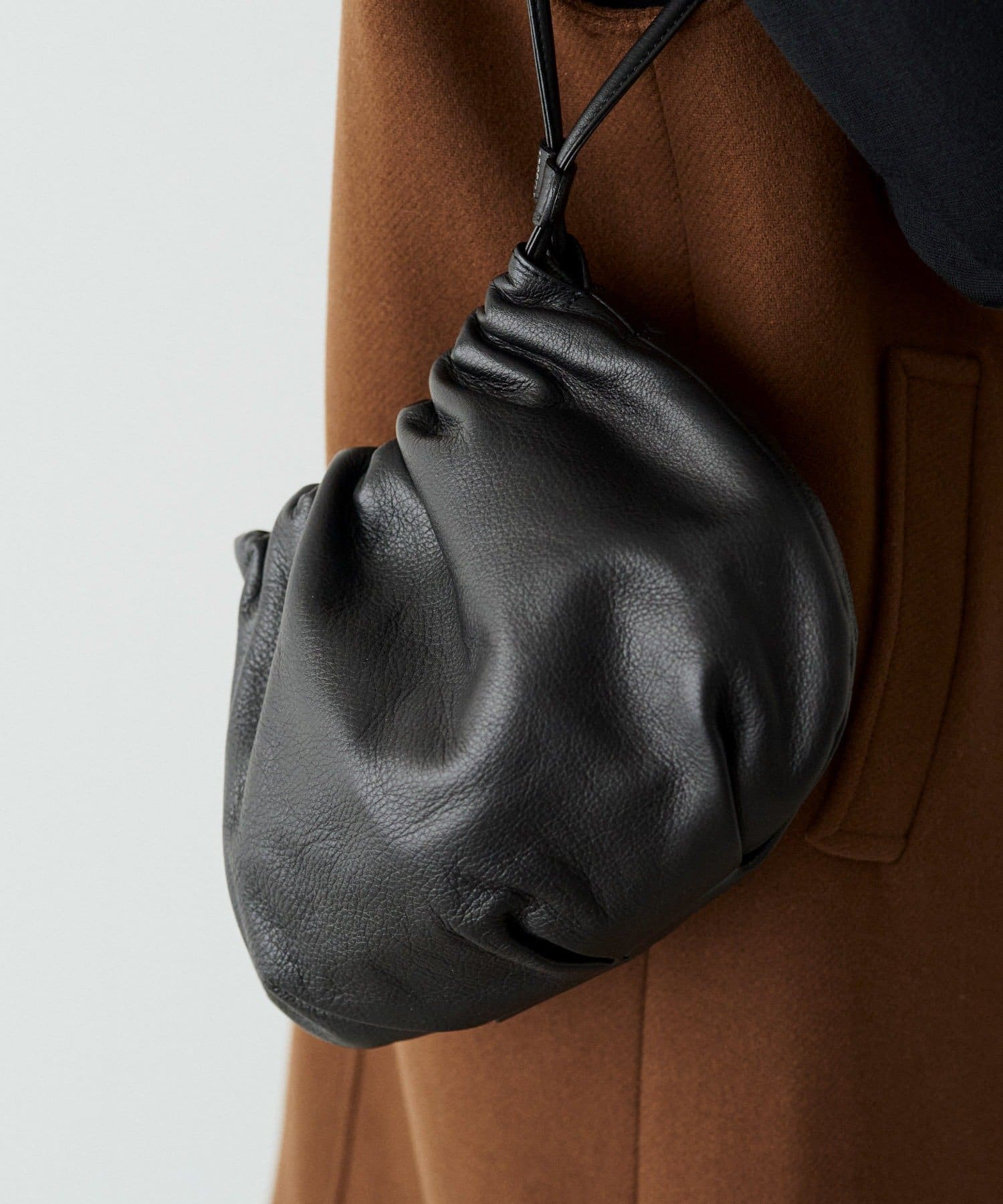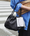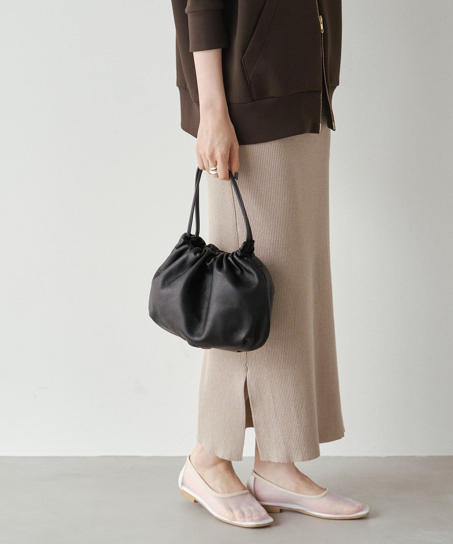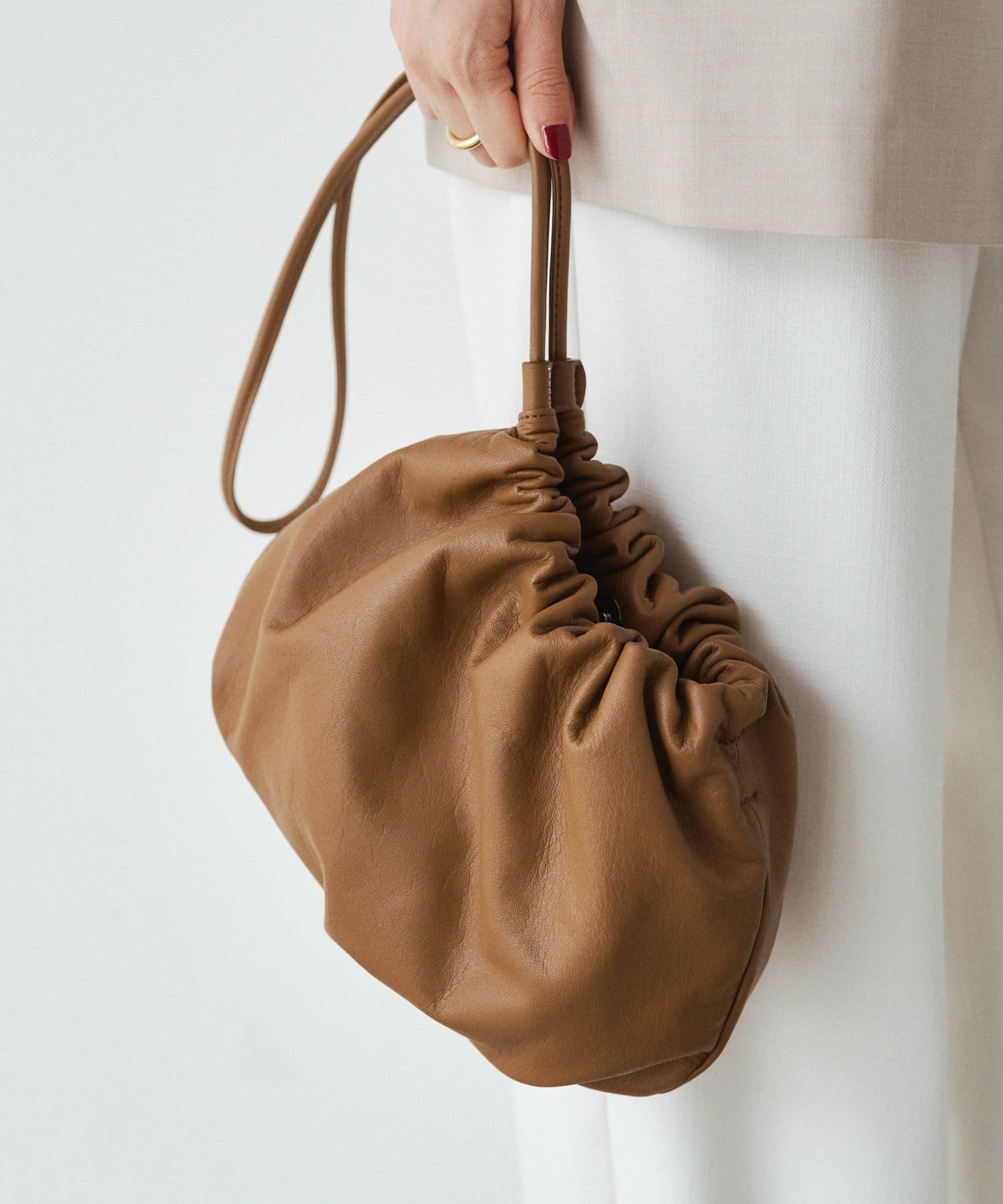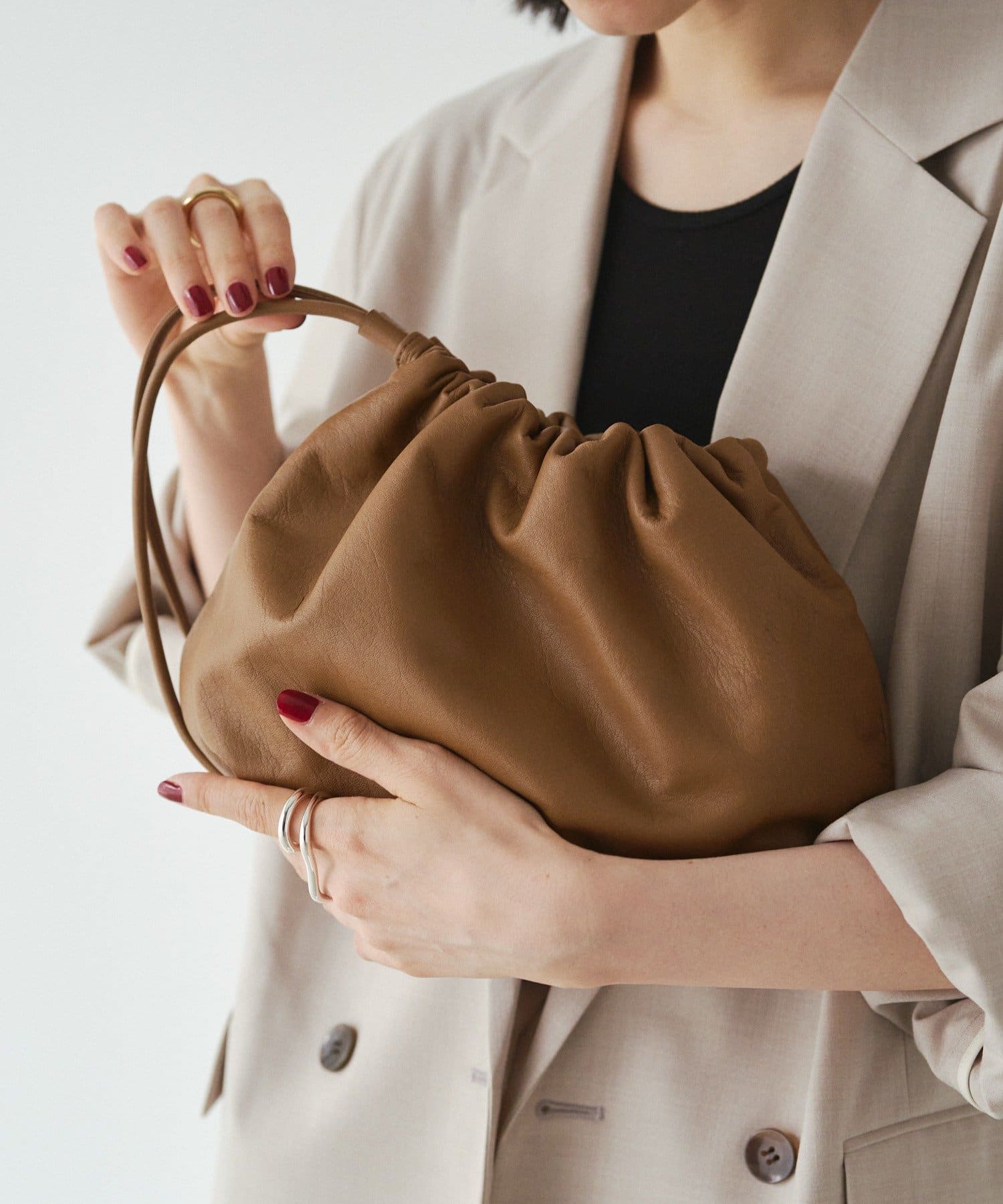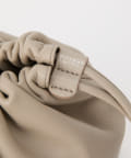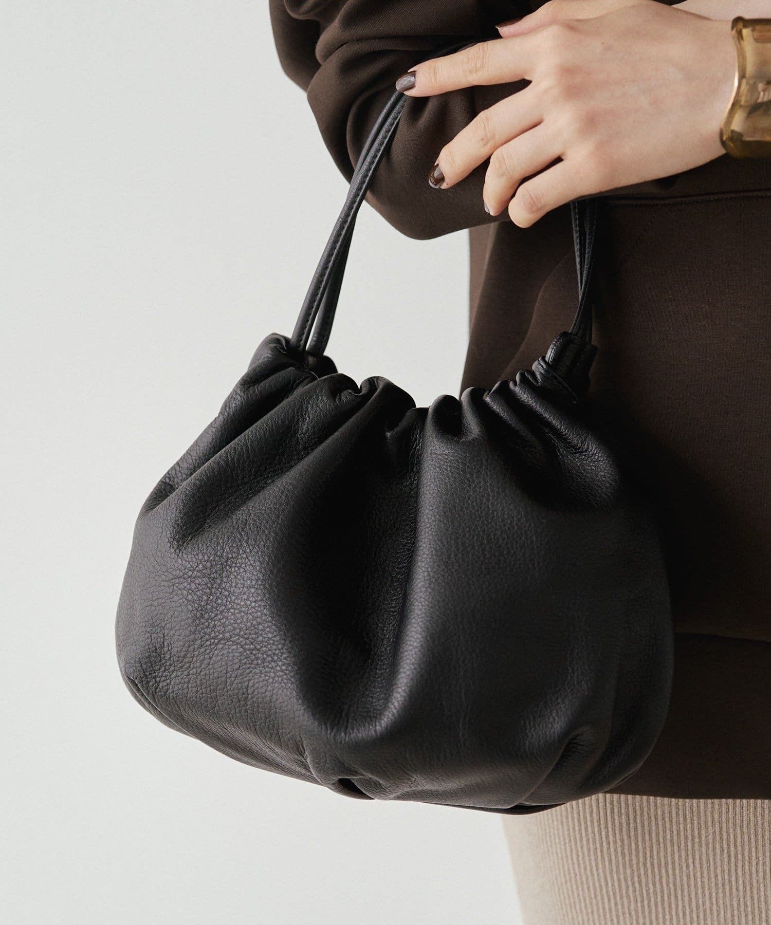 購入場所:パルクローゼット最初ブラックを予約したのですが、インスタライブなどをみているうちにグレージュにも惹かれ色違いで購入しました。グレージュ、巾着を絞ってくしゃっとさせるととてもかわいいです、思い切って色違い購入してよかったです!使っていくうちに柔らかくなって馴染んでいくのが楽しみです。