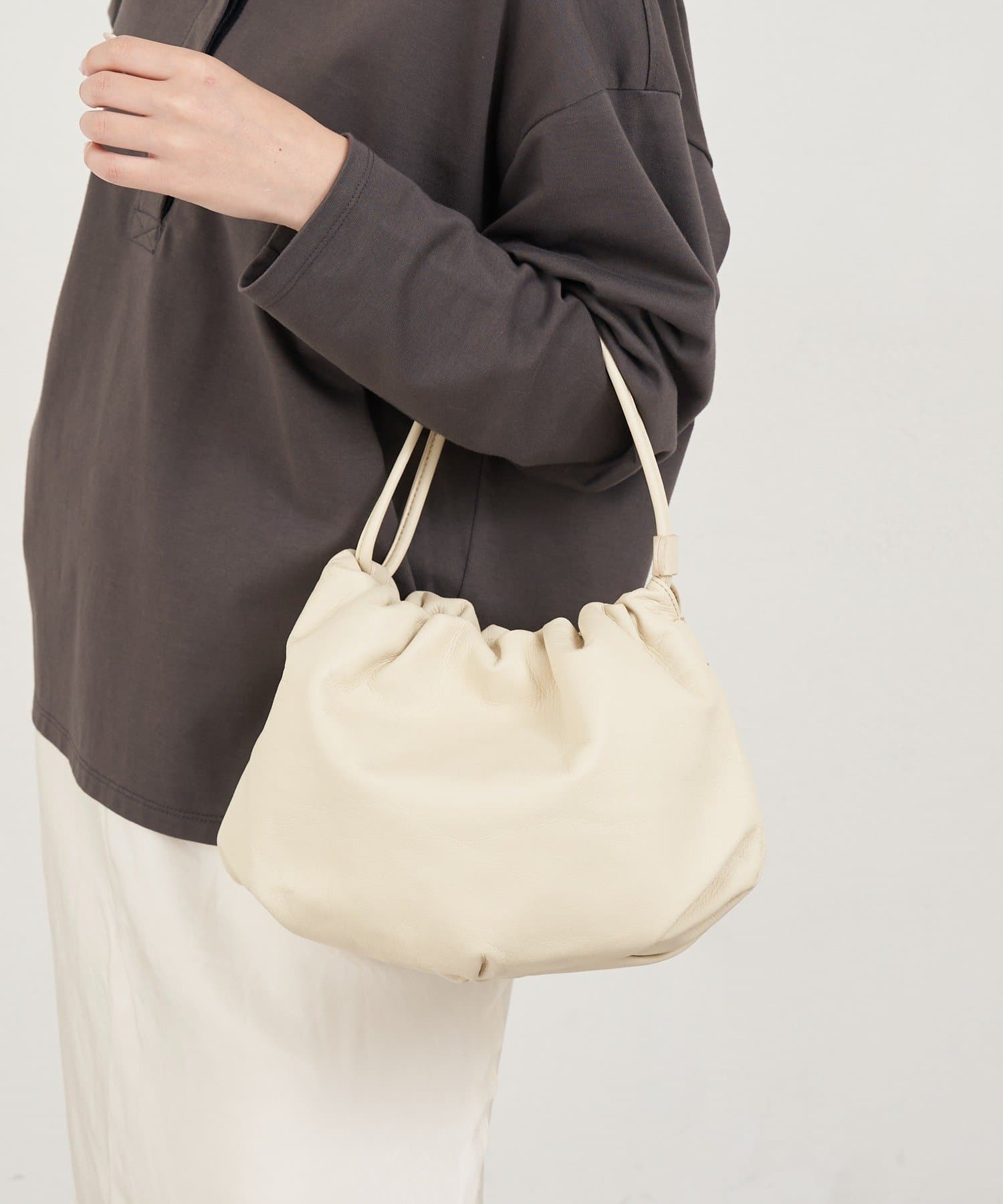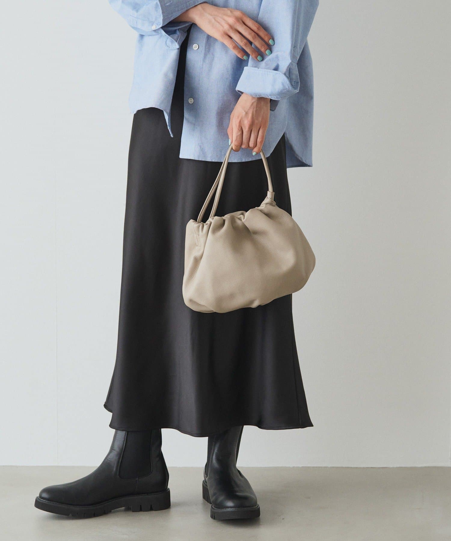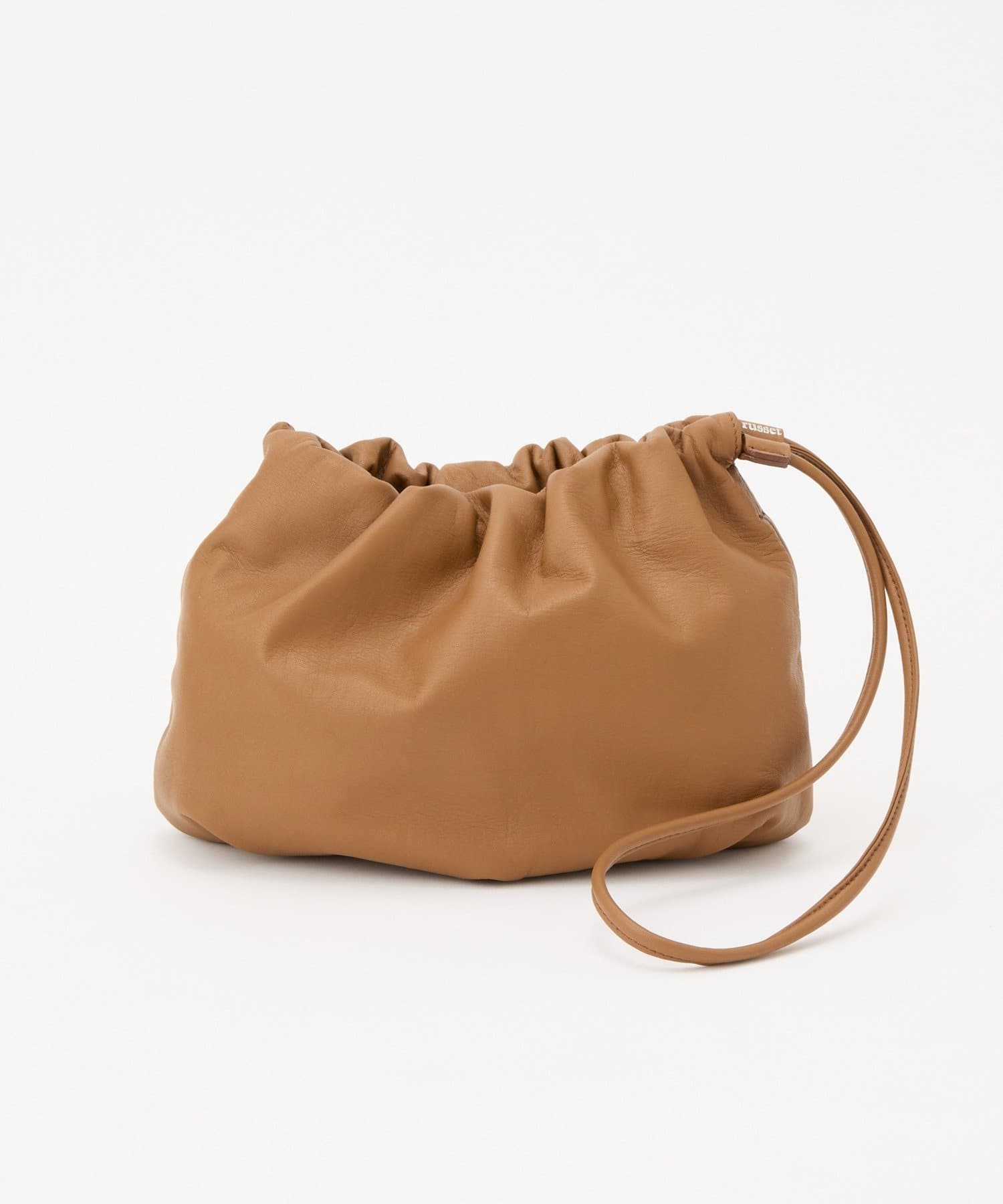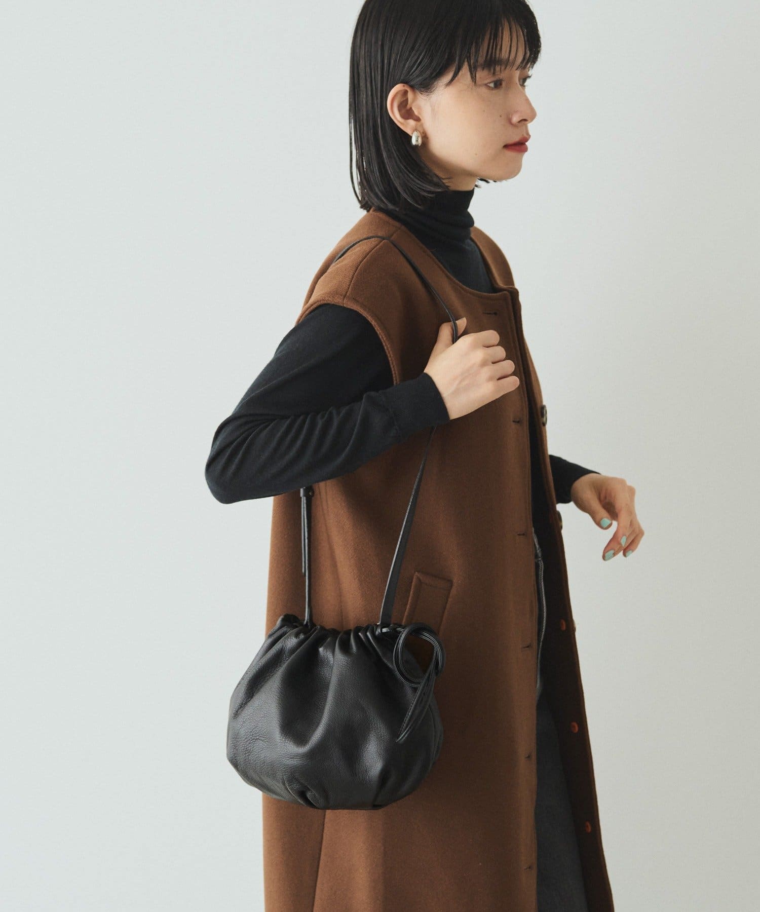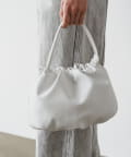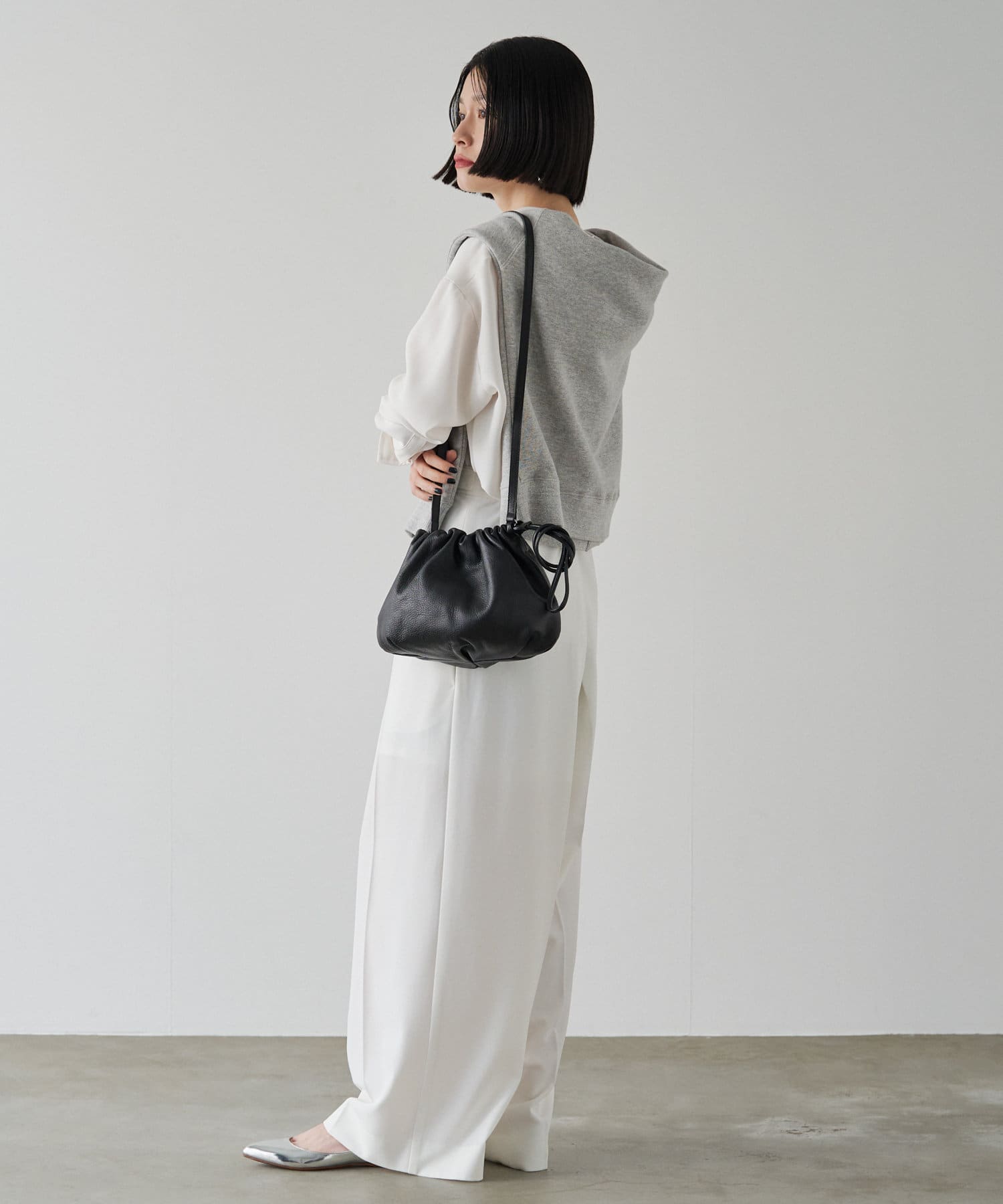 購入場所:パルクローゼット最初ブラックを予約したのですが、インスタライブなどをみているうちにグレージュにも惹かれ色違いで購入しました。グレージュ、巾着を絞ってくしゃっとさせるととてもかわいいです、思い切って色違い購入してよかったです!使っていくうちに柔らかくなって馴染んでいくのが楽しみです。