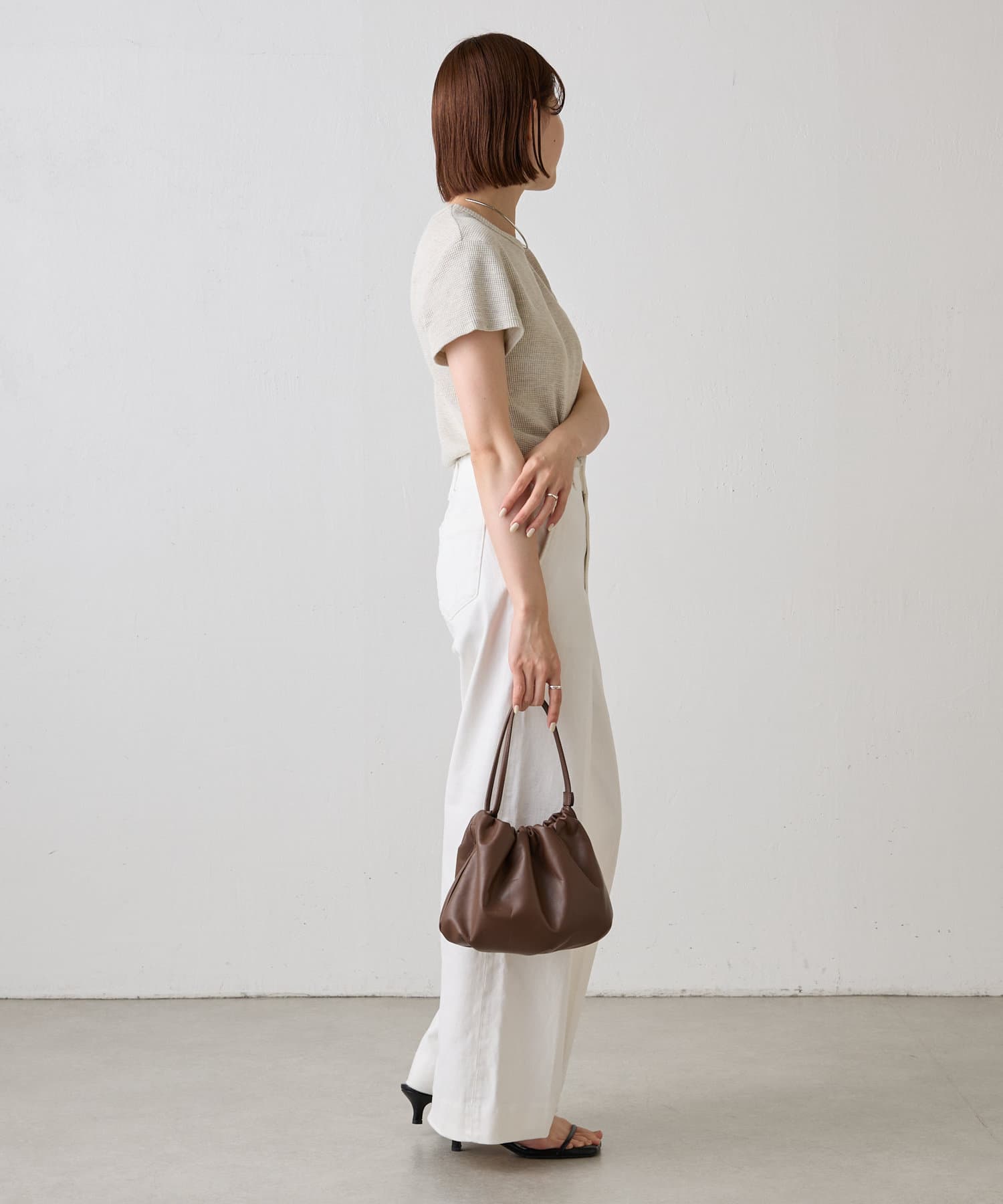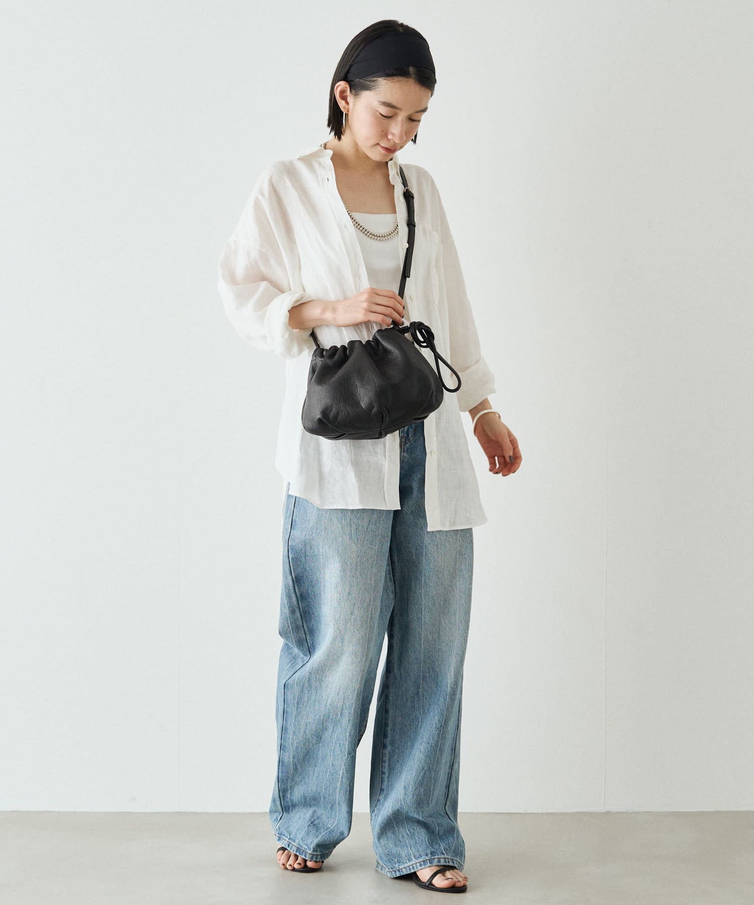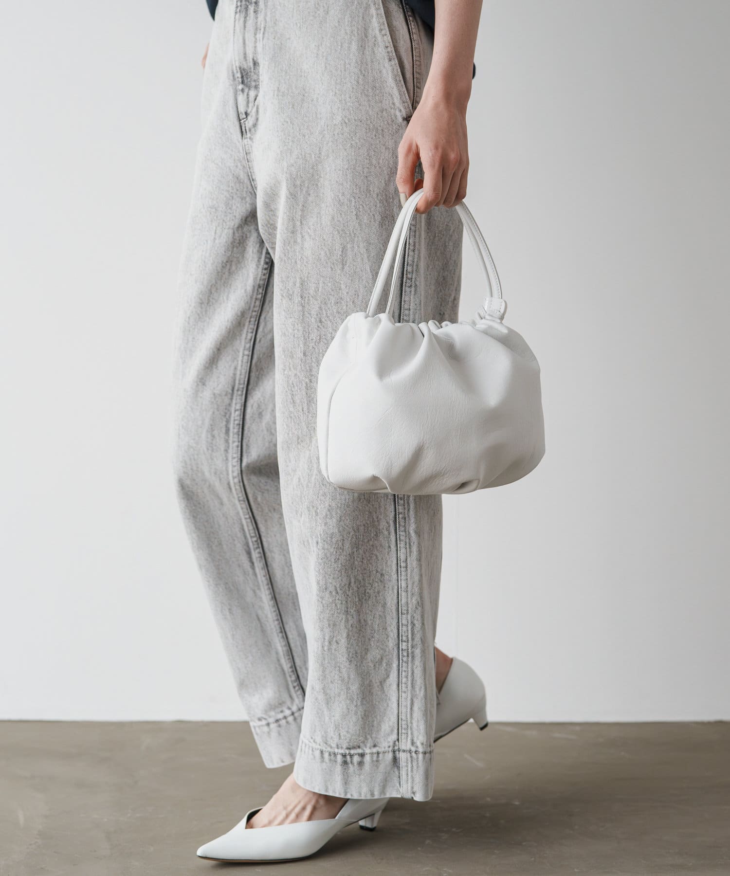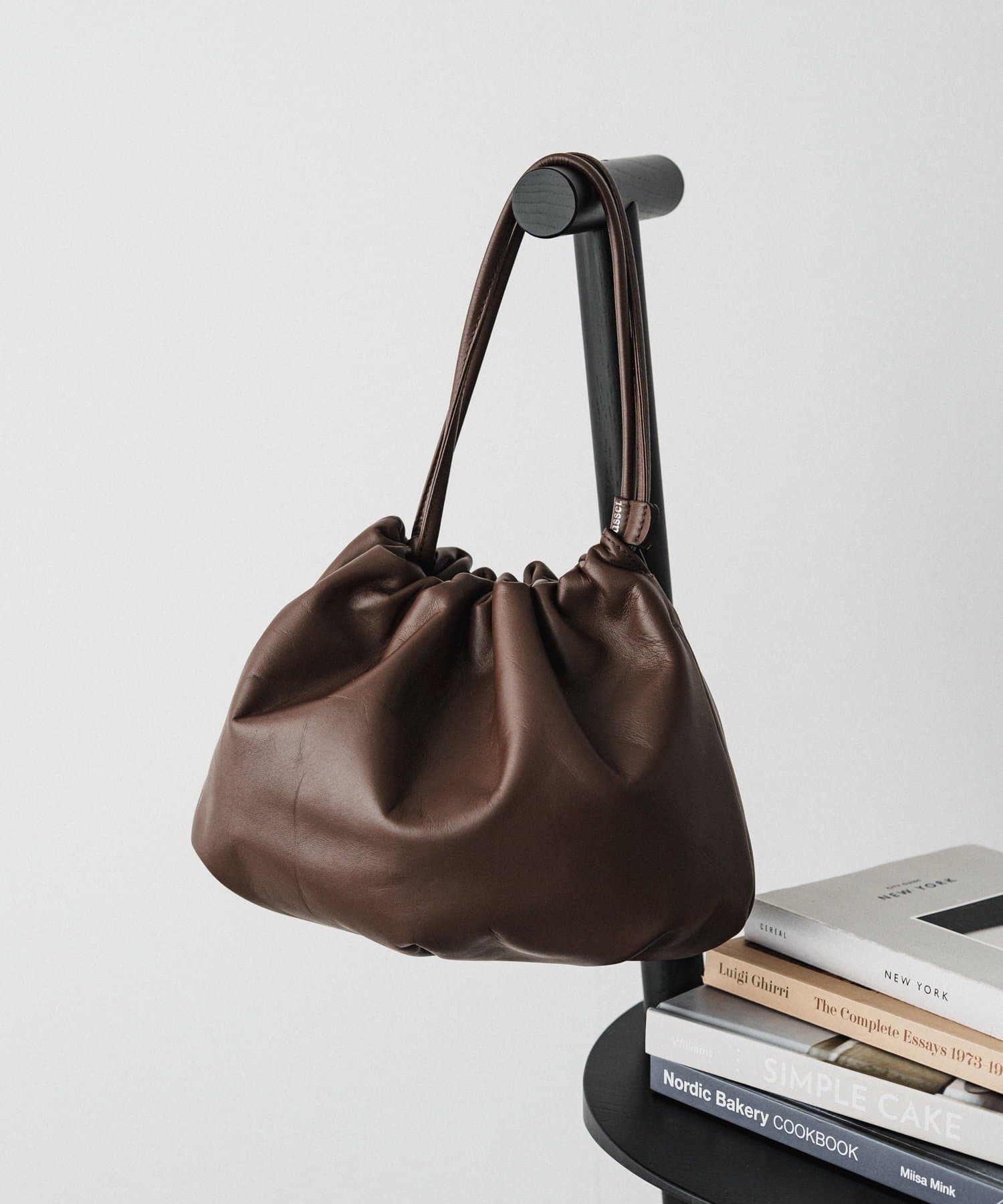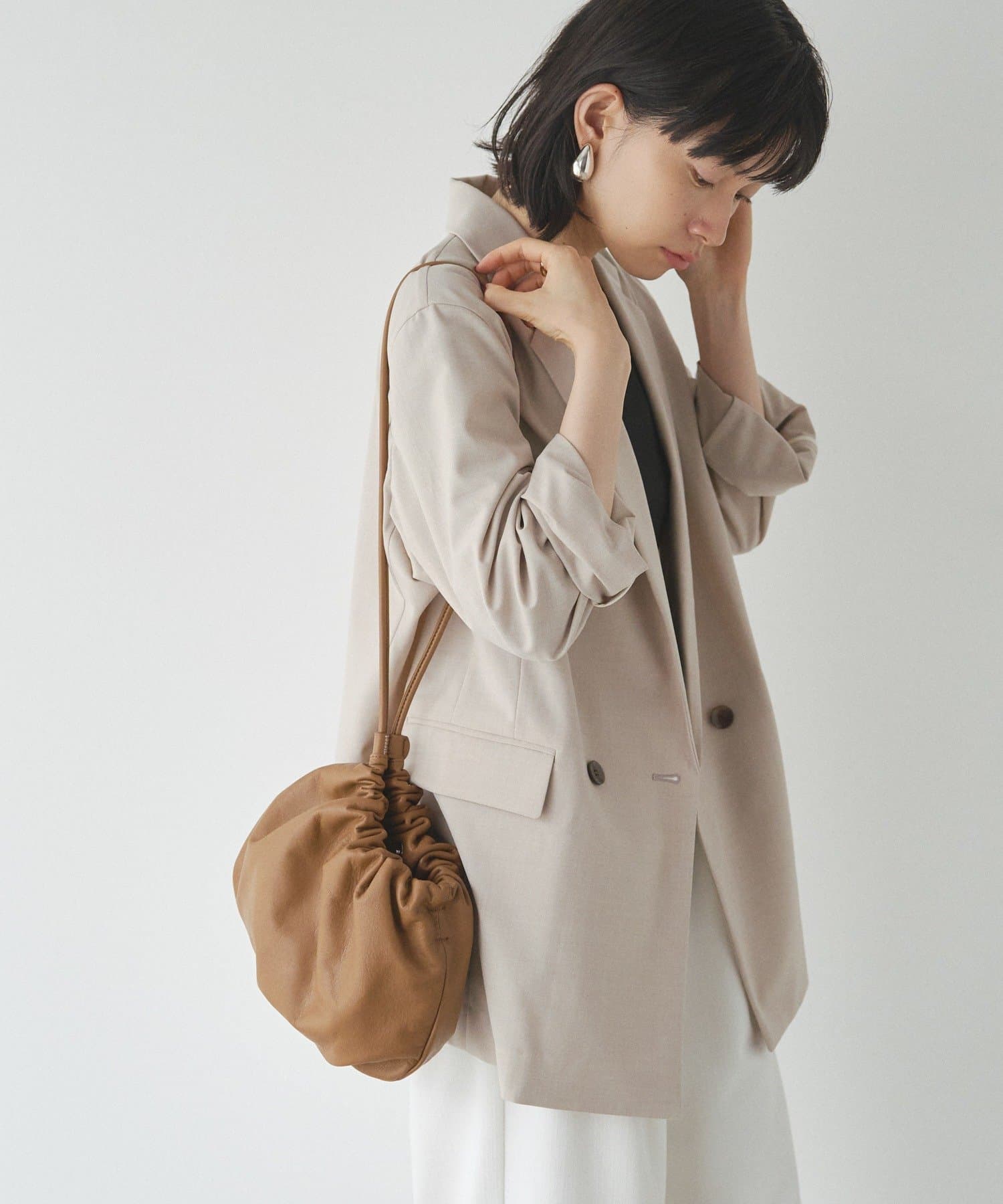 購入場所:パルクローゼット最初ブラックを予約したのですが、インスタライブなどをみているうちにグレージュにも惹かれ色違いで購入しました。グレージュ、巾着を絞ってくしゃっとさせるととてもかわいいです、思い切って色違い購入してよかったです!使っていくうちに柔らかくなって馴染んでいくのが楽しみです。