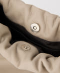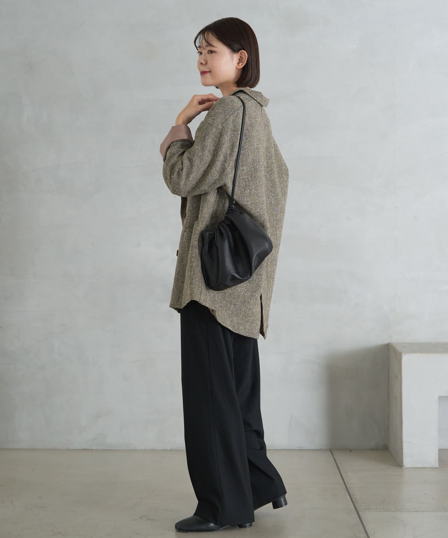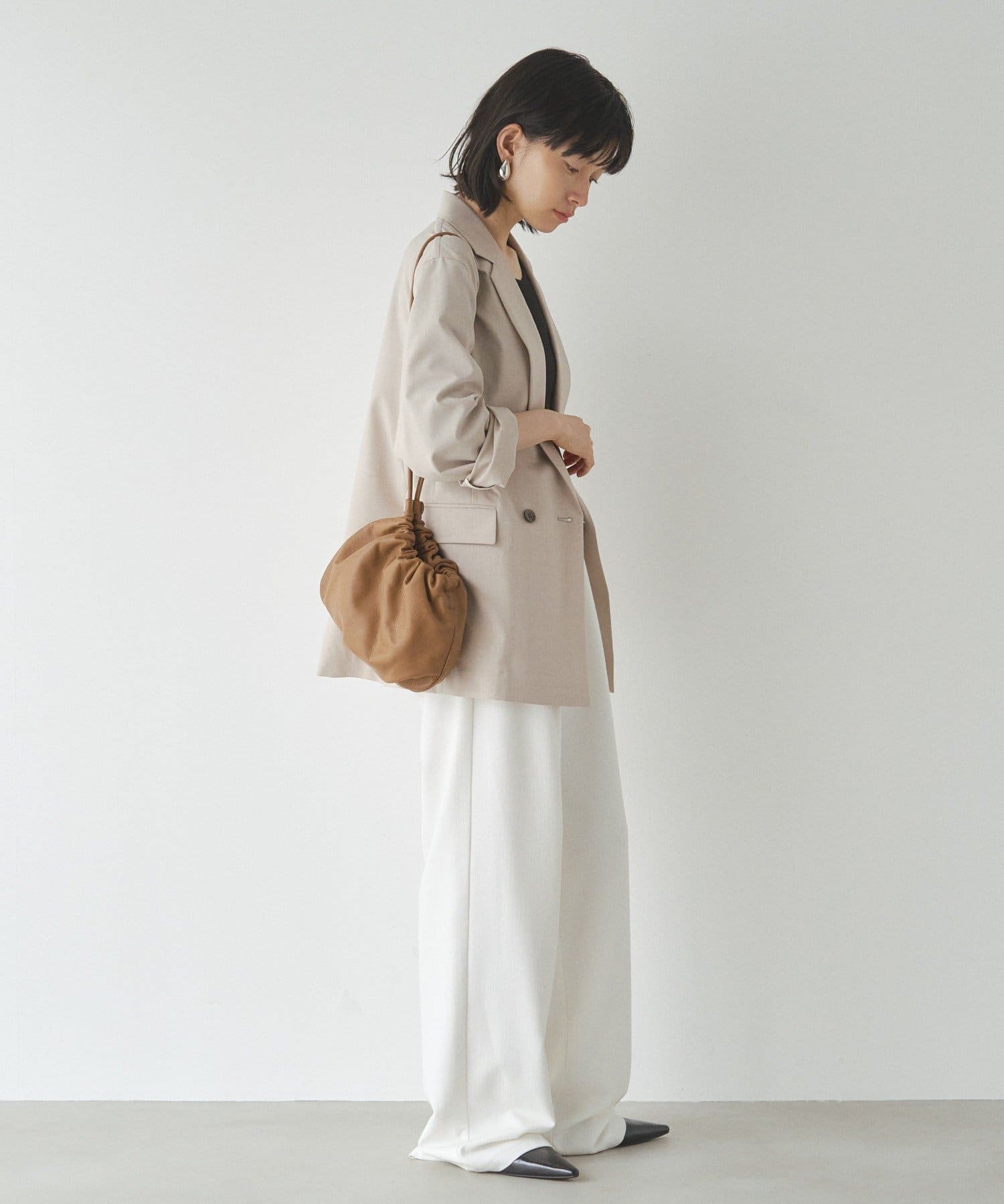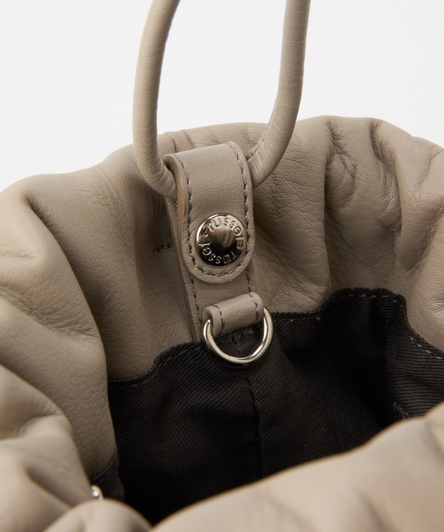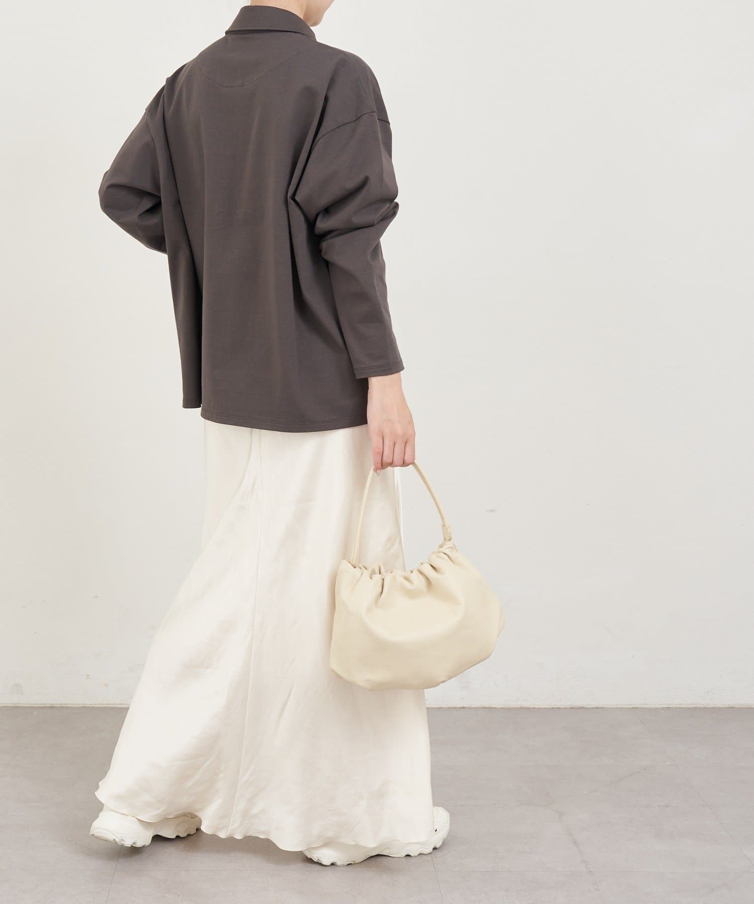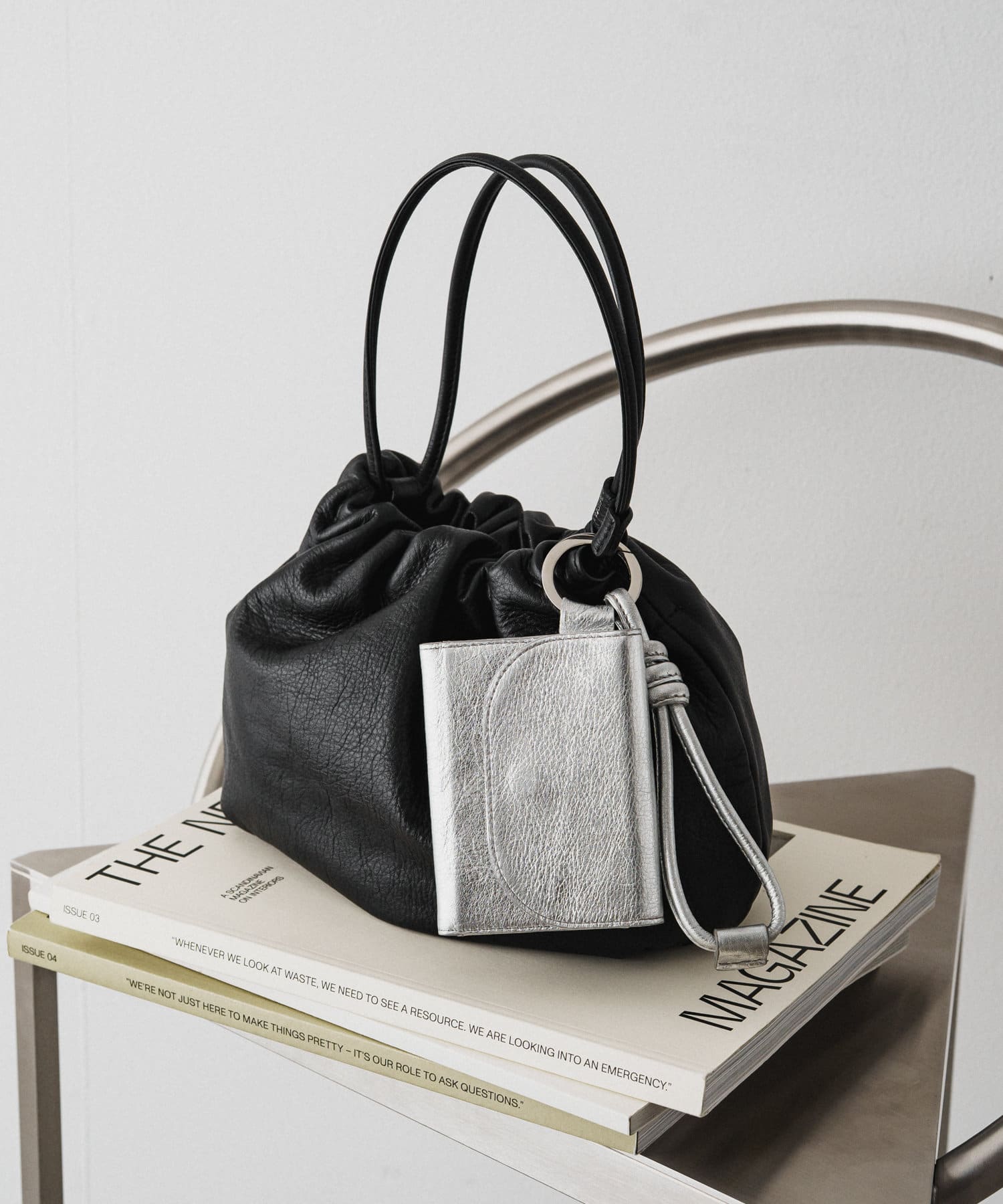 購入場所:パルクローゼット最初ブラックを予約したのですが、インスタライブなどをみているうちにグレージュにも惹かれ色違いで購入しました。グレージュ、巾着を絞ってくしゃっとさせるととてもかわいいです、思い切って色違い購入してよかったです!使っていくうちに柔らかくなって馴染んでいくのが楽しみです。