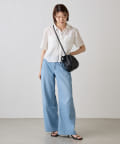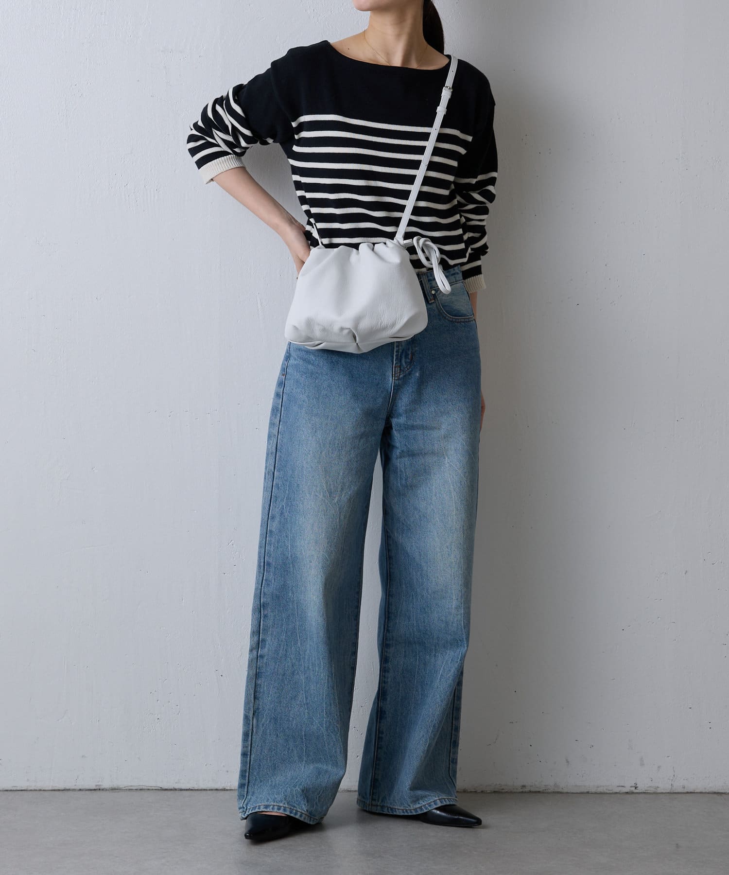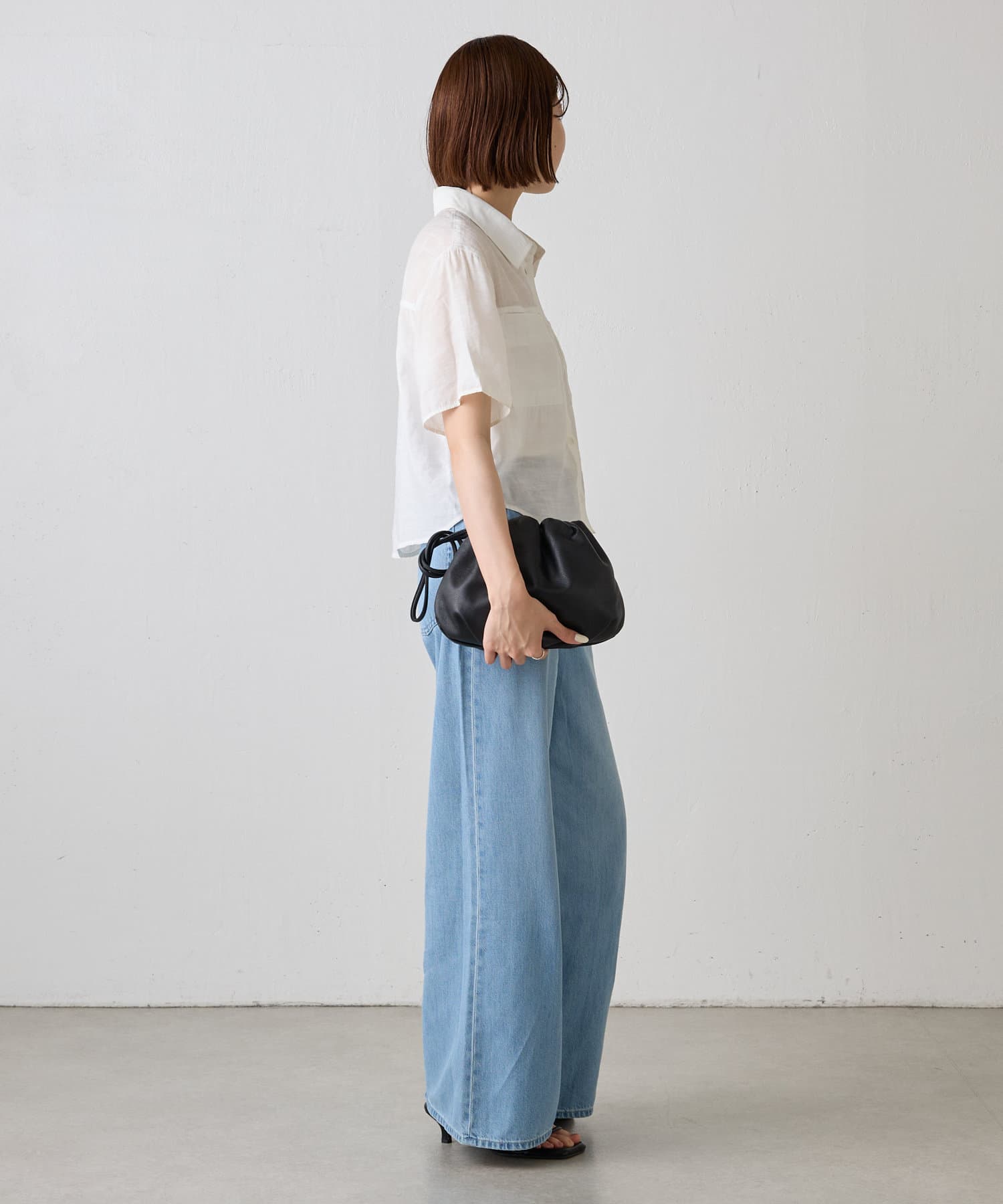 ショルダーベルトはレザー素材の細めタイプですっきりとした印象に -