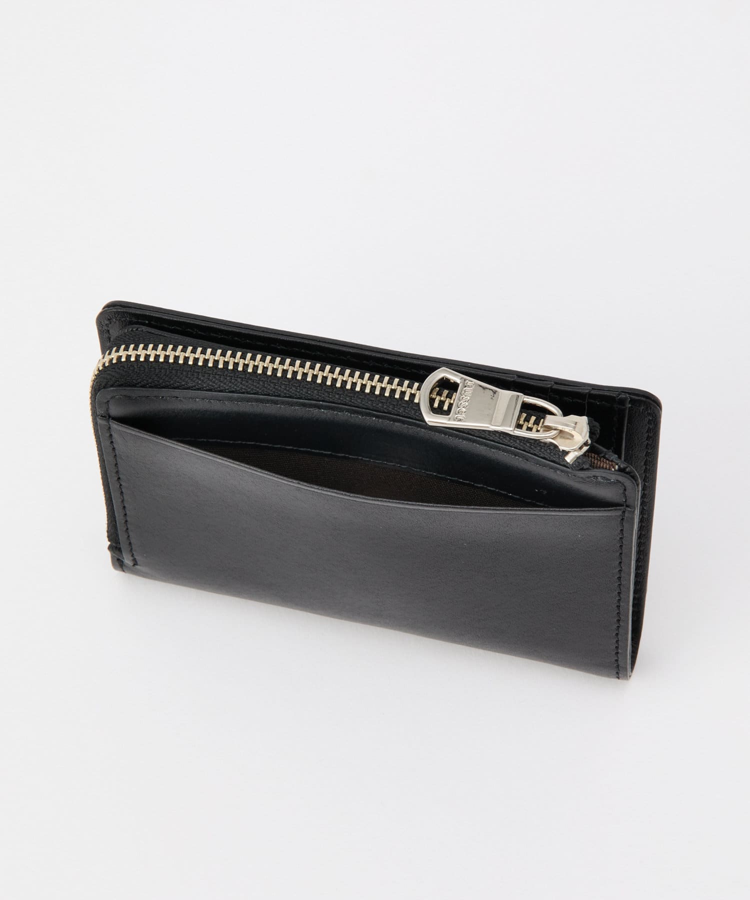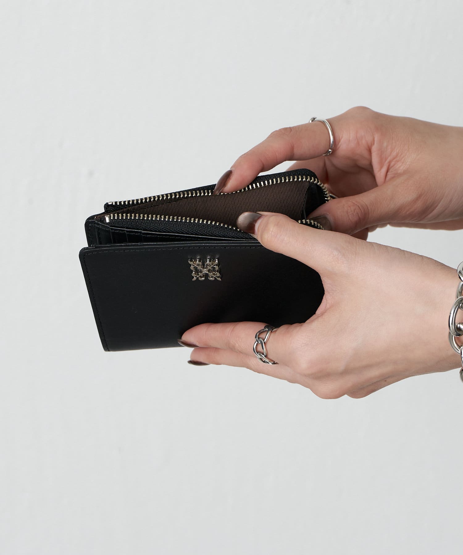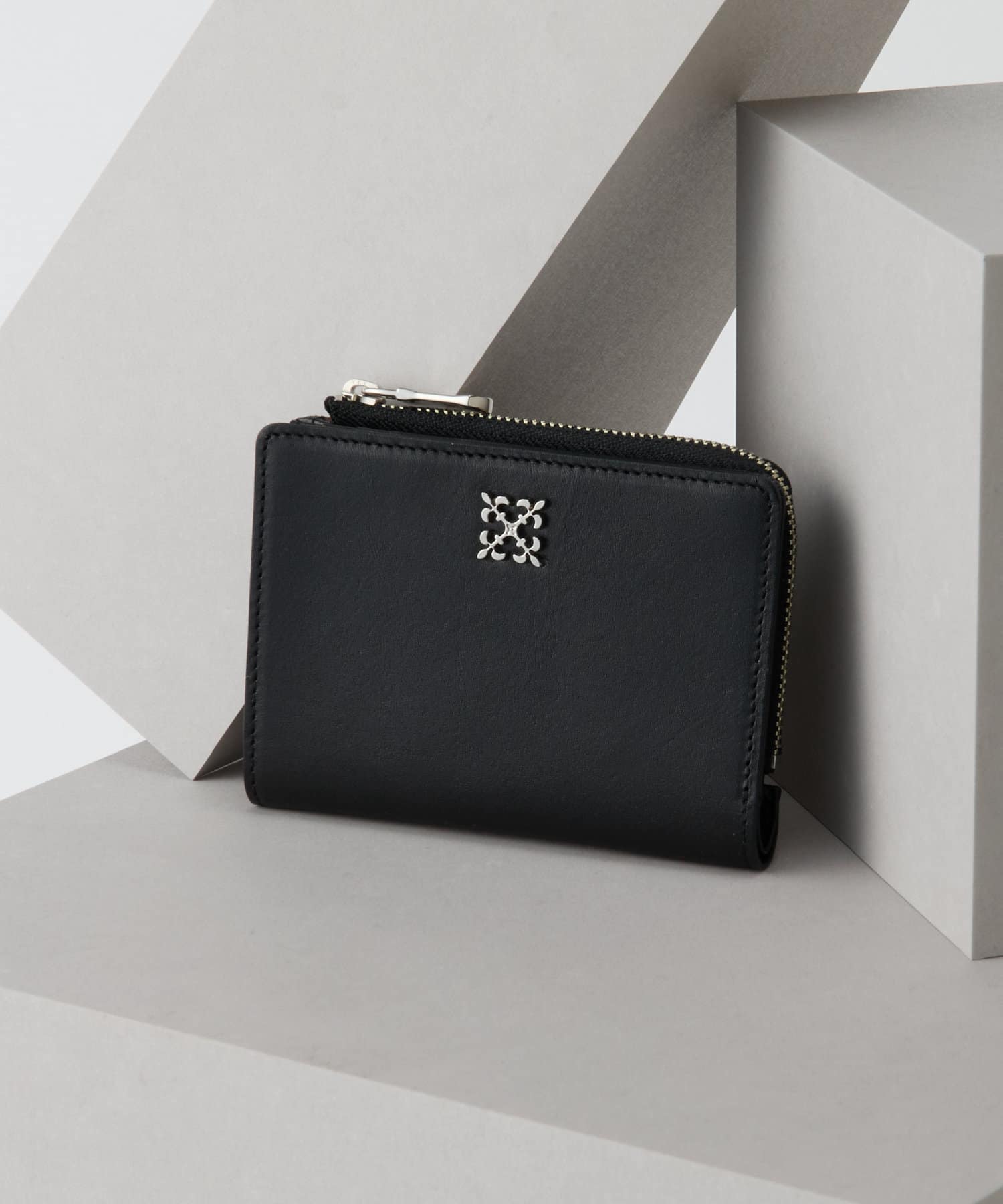 フロントに小さなモノグラムプレートをあしらった、洗練感漂うハーフウォレット。