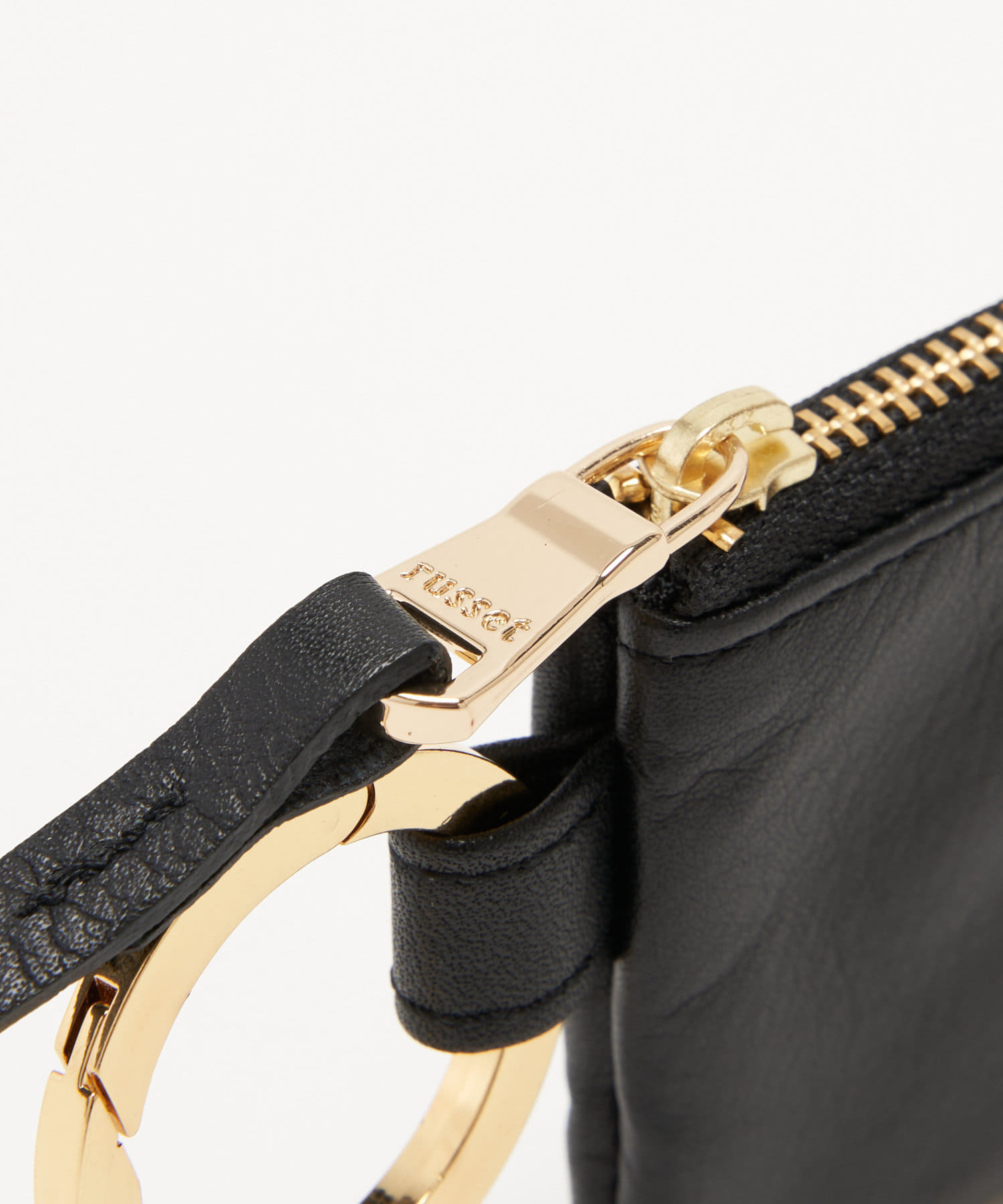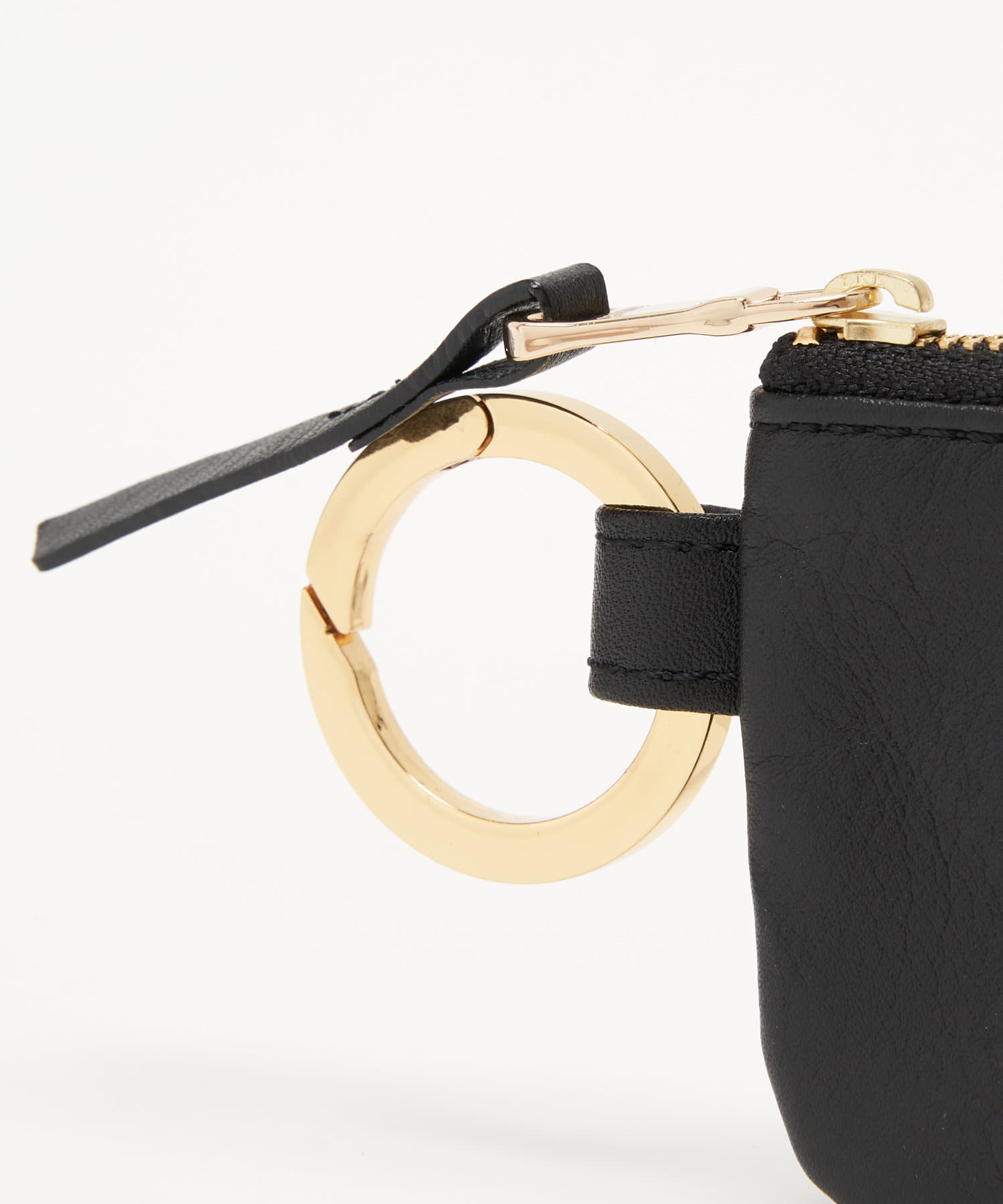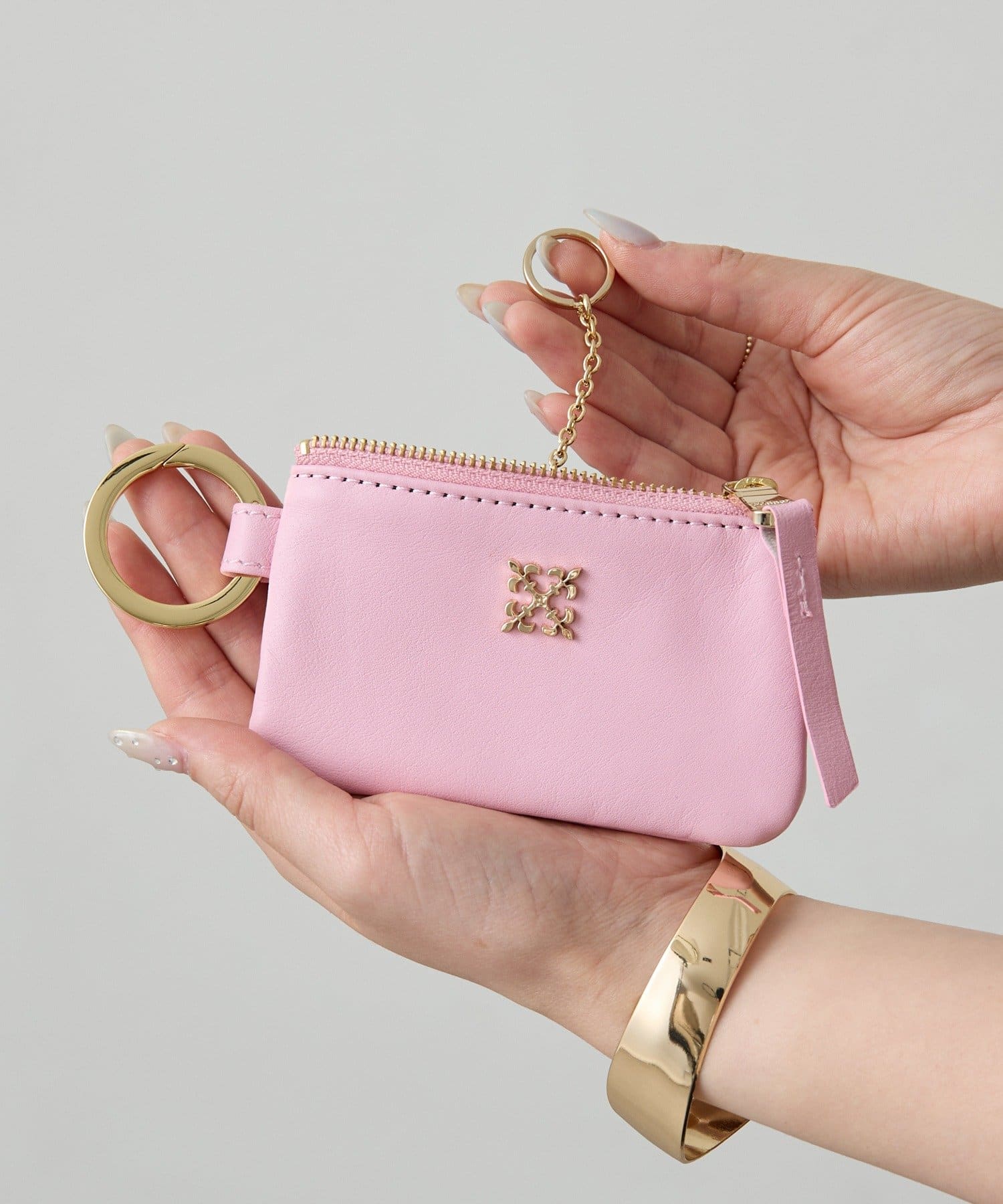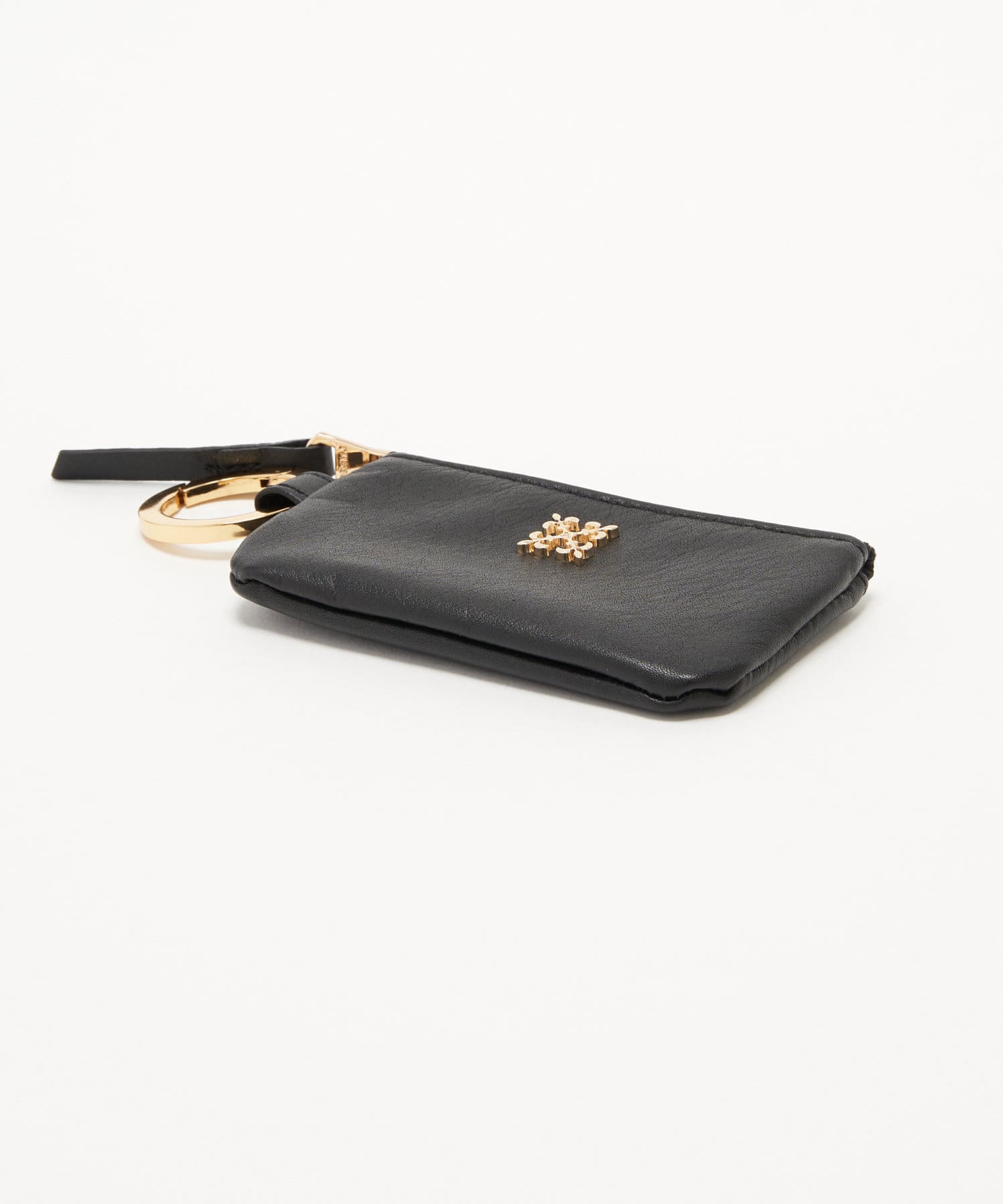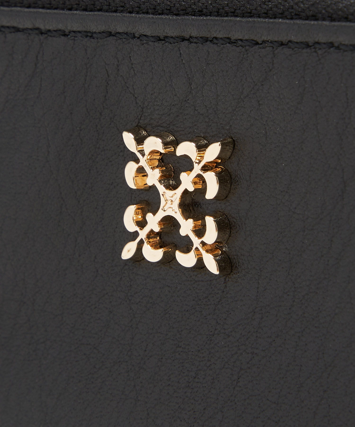 モノグラムのプレートがワンポイントで、レザーの中に映えるデザイン。