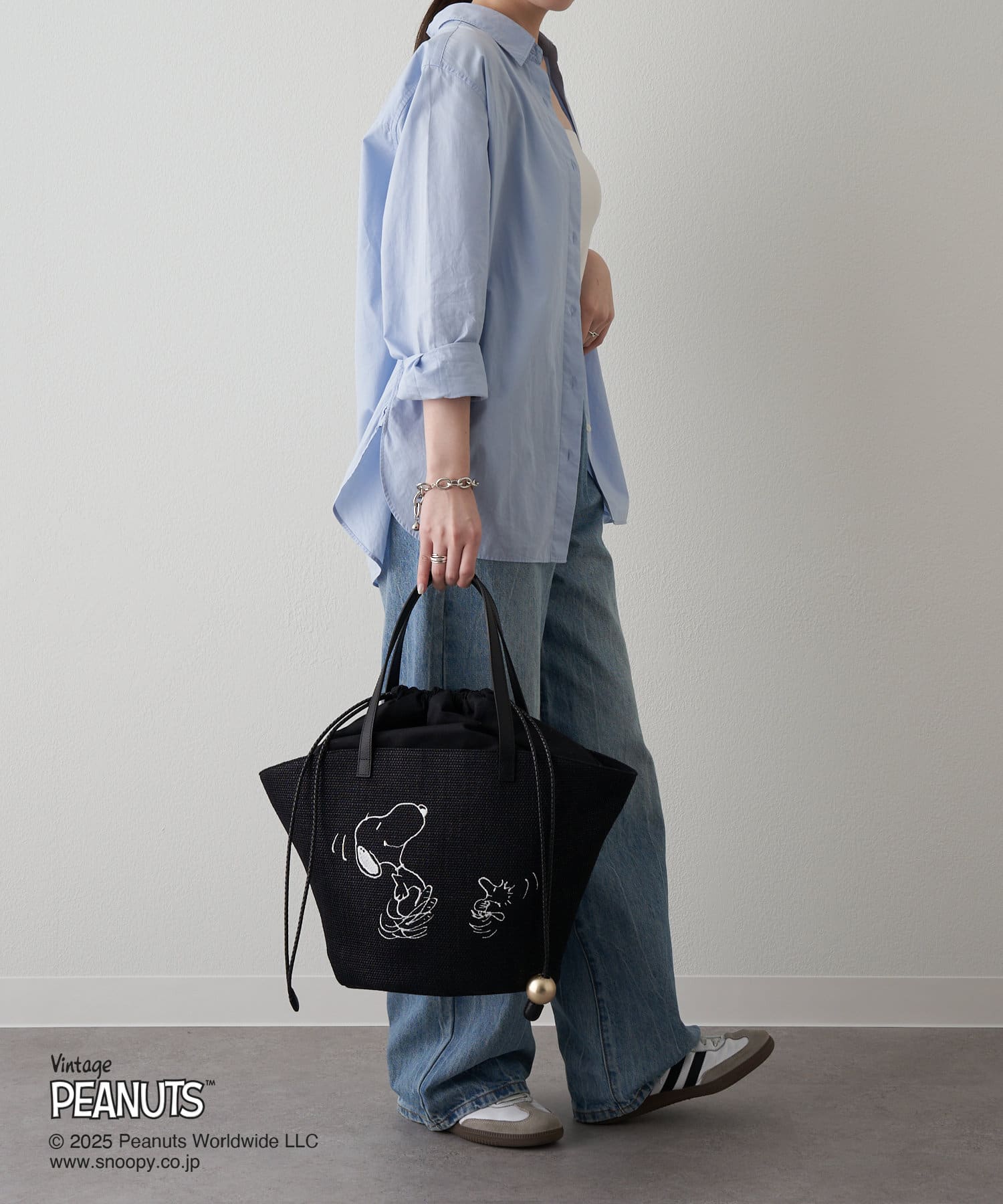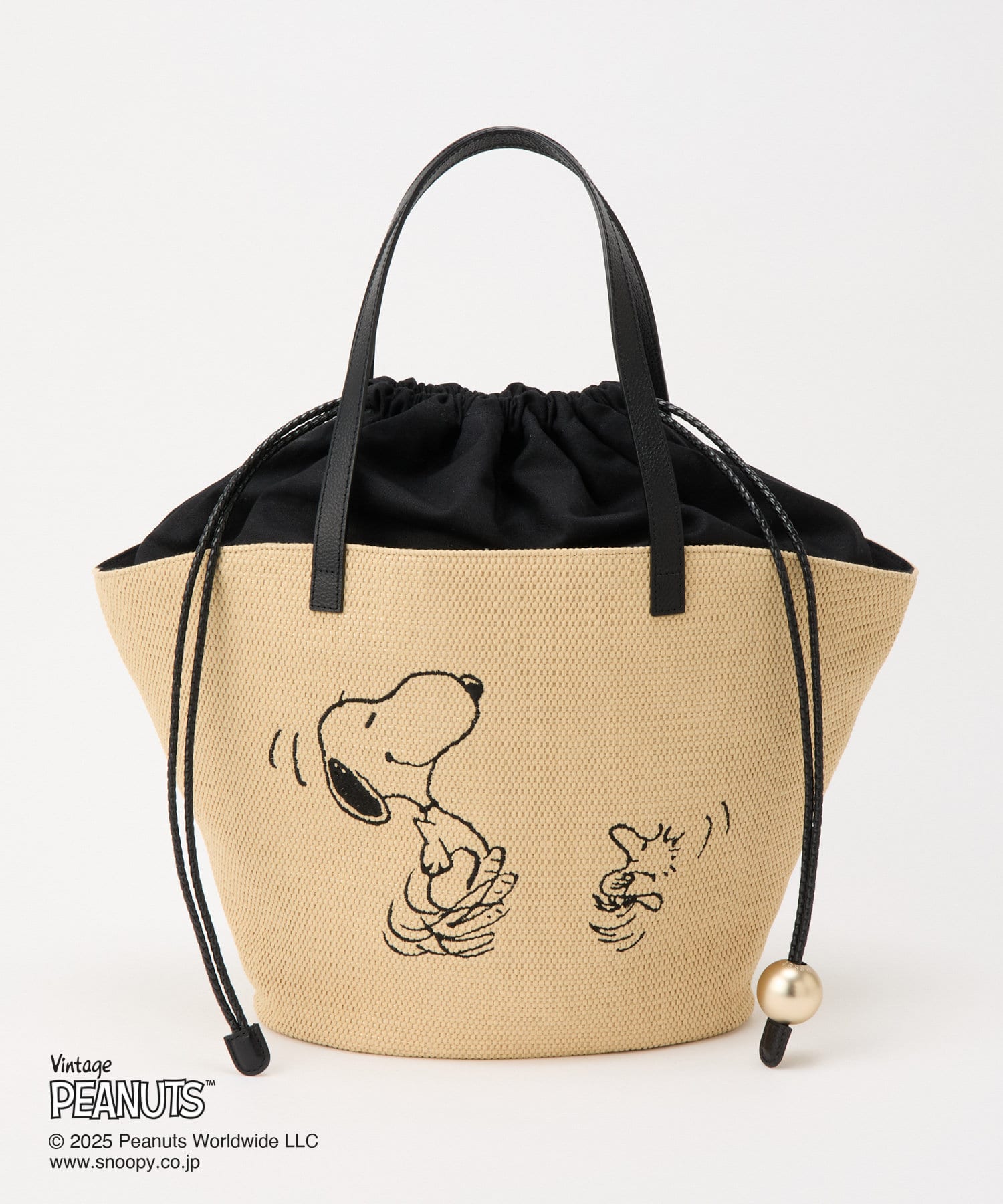 楽しい様子のスヌーピーとウッドストックの刺繍入りで、おでかけしたくなるアイテムに仕上げました。