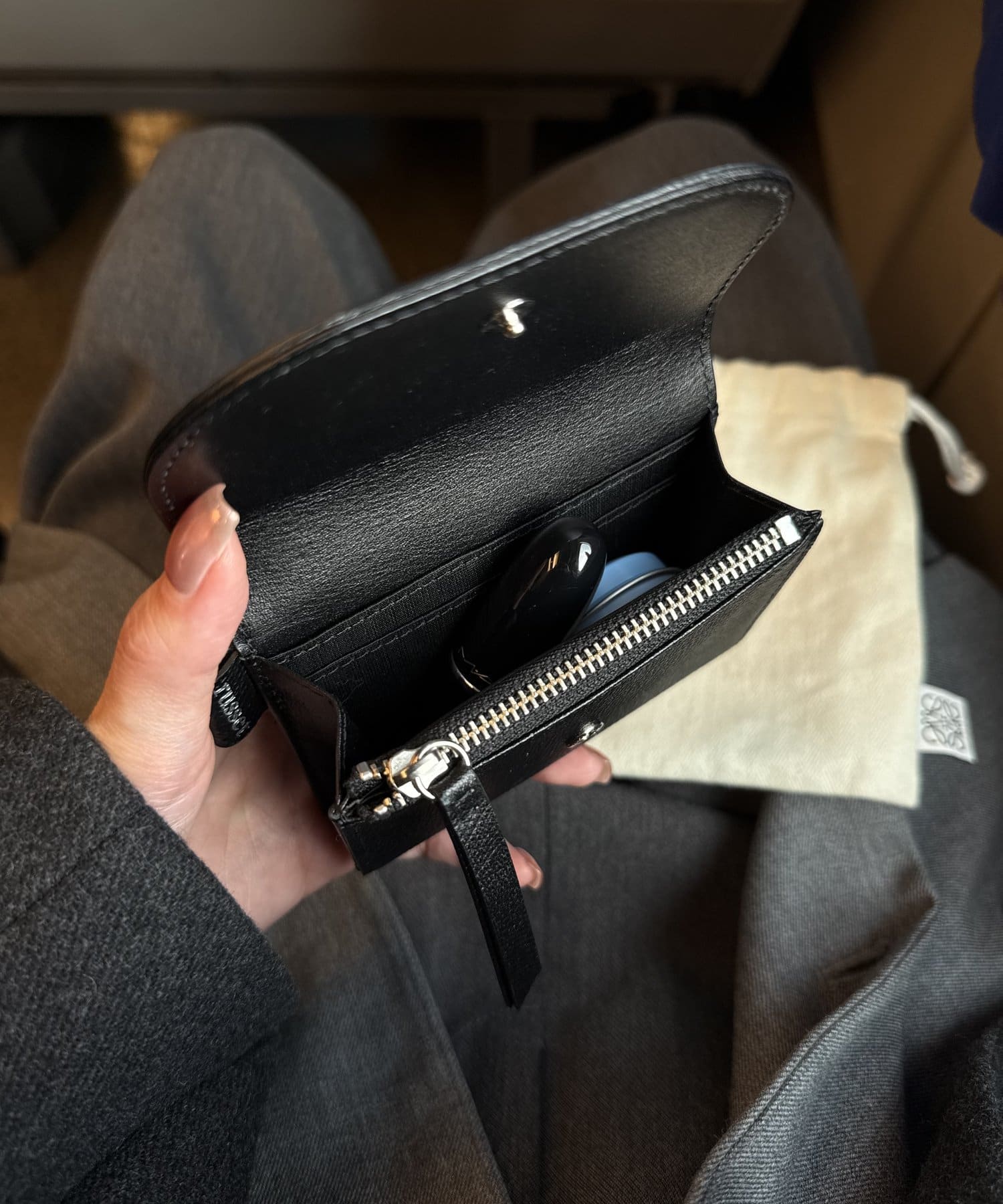 お金を入れるのはもちろん、リップやイヤホンを入れるマルチケースとしても使って頂きたいアイテムに仕上げました。