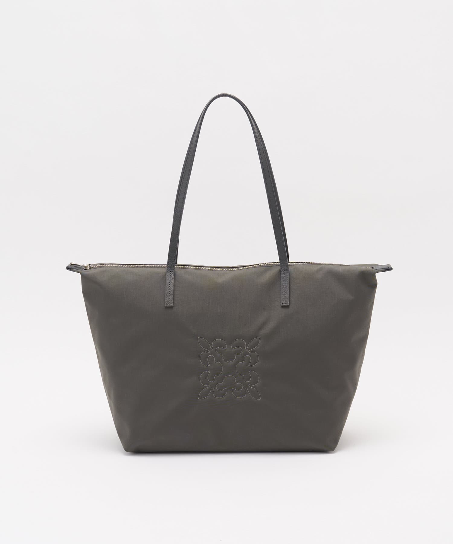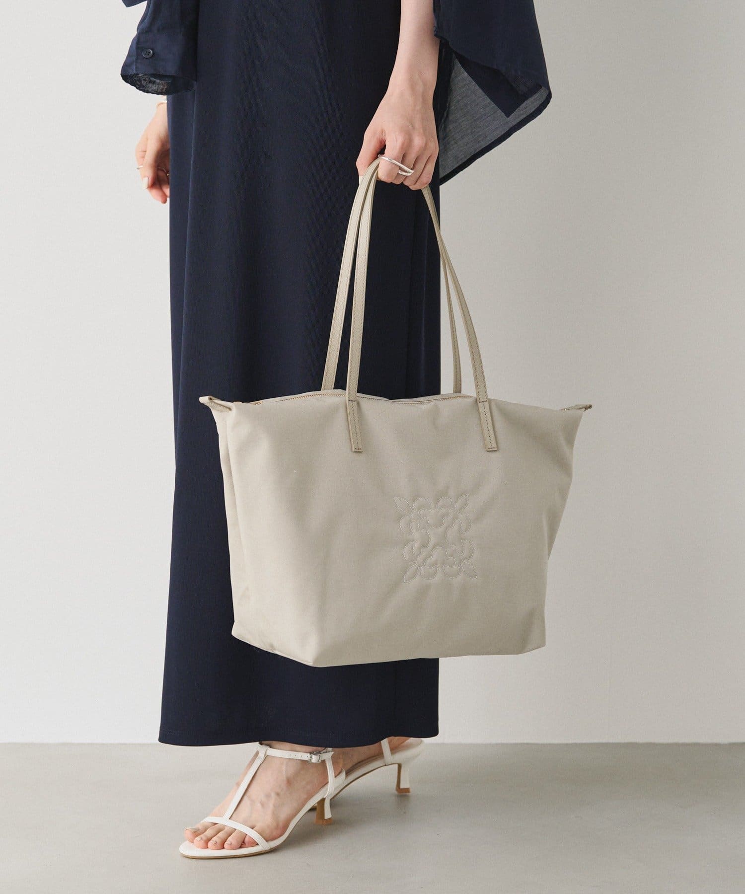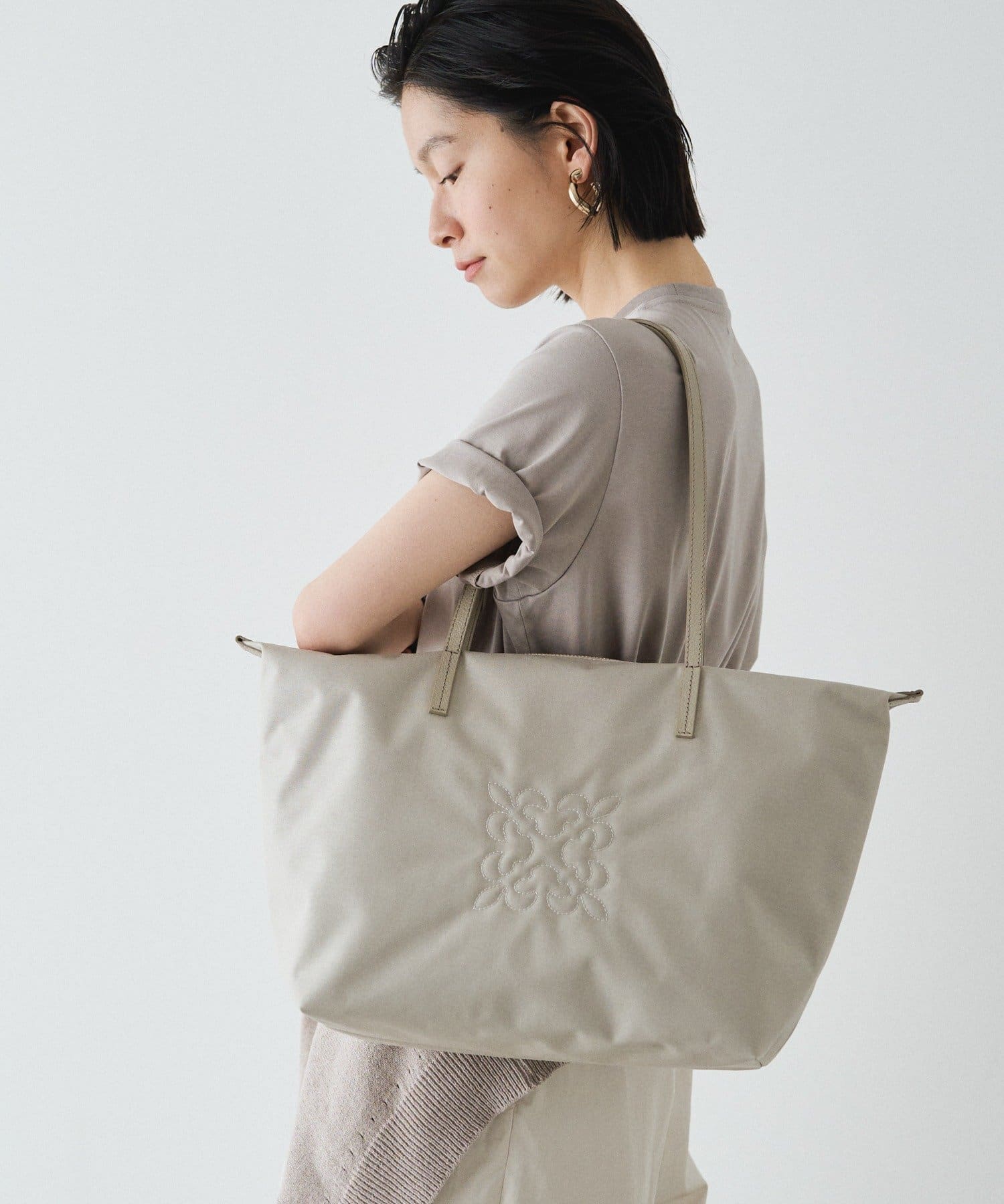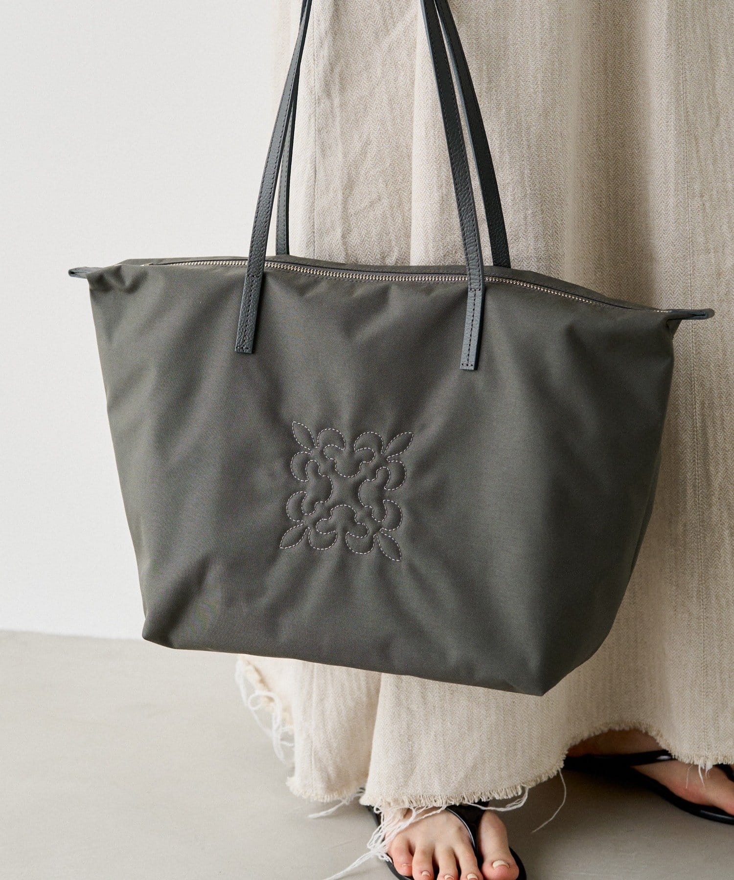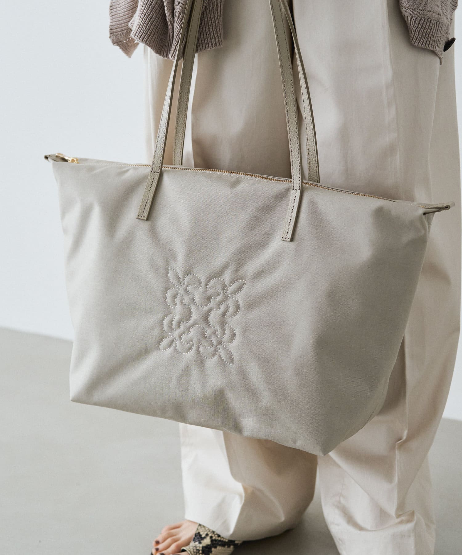 モノグラムモチーフの刺繍がポイントでカジュアルだけど、どこか上品。