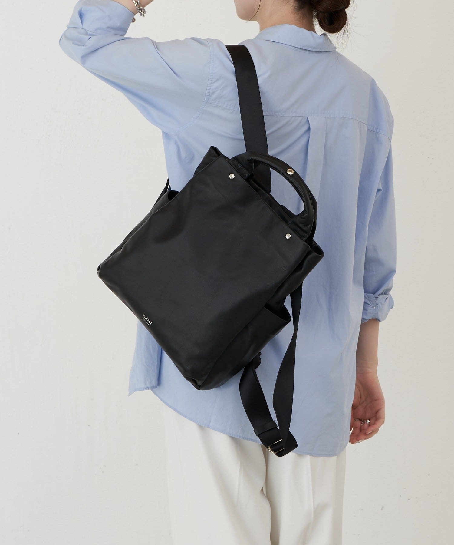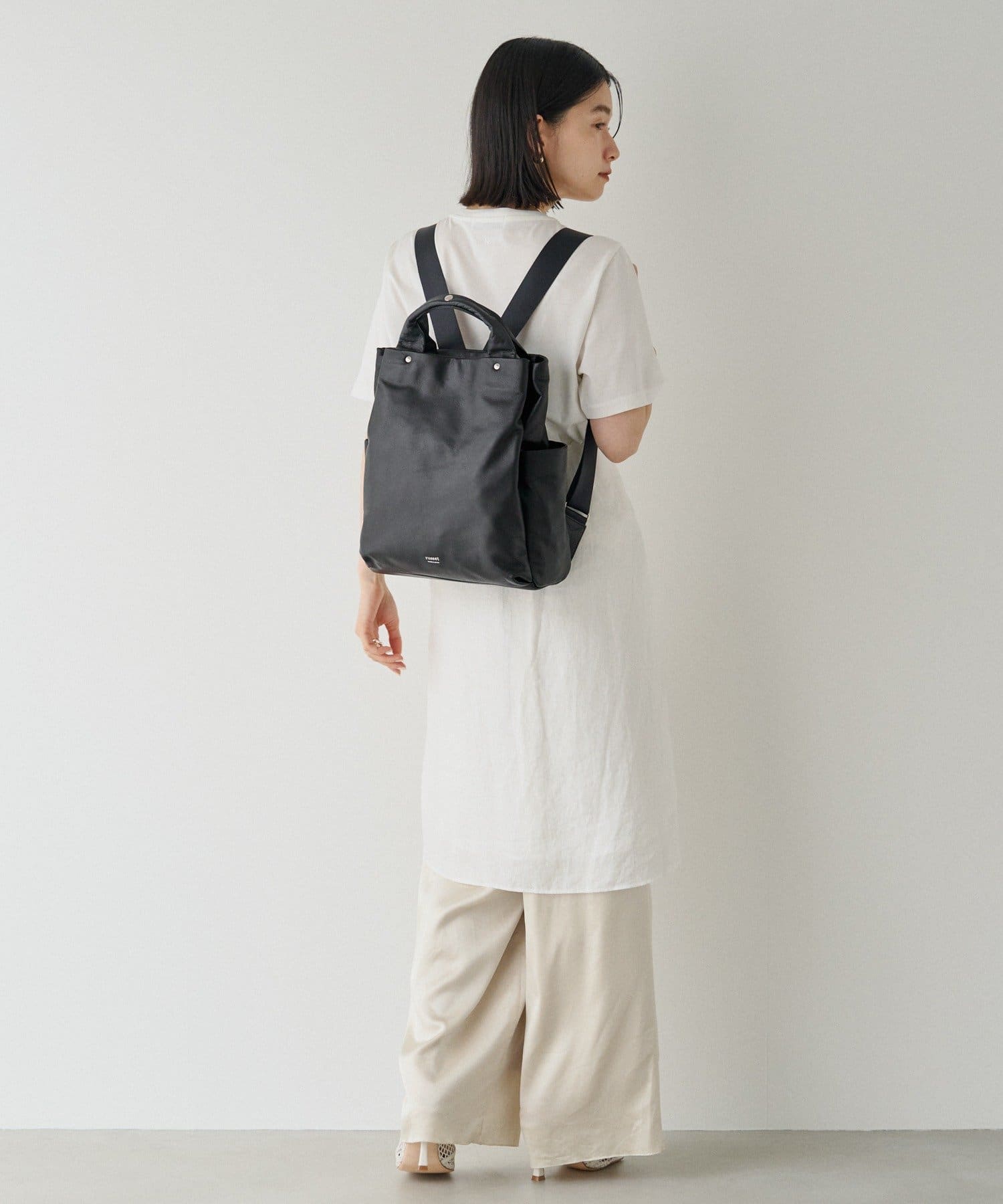 背負っても手持ちでも。気分やスタイルに合わせて持ち方を変えられる、きれいめリュックサック。