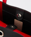 アクセントの効いた、遊び心あふれるレザートート