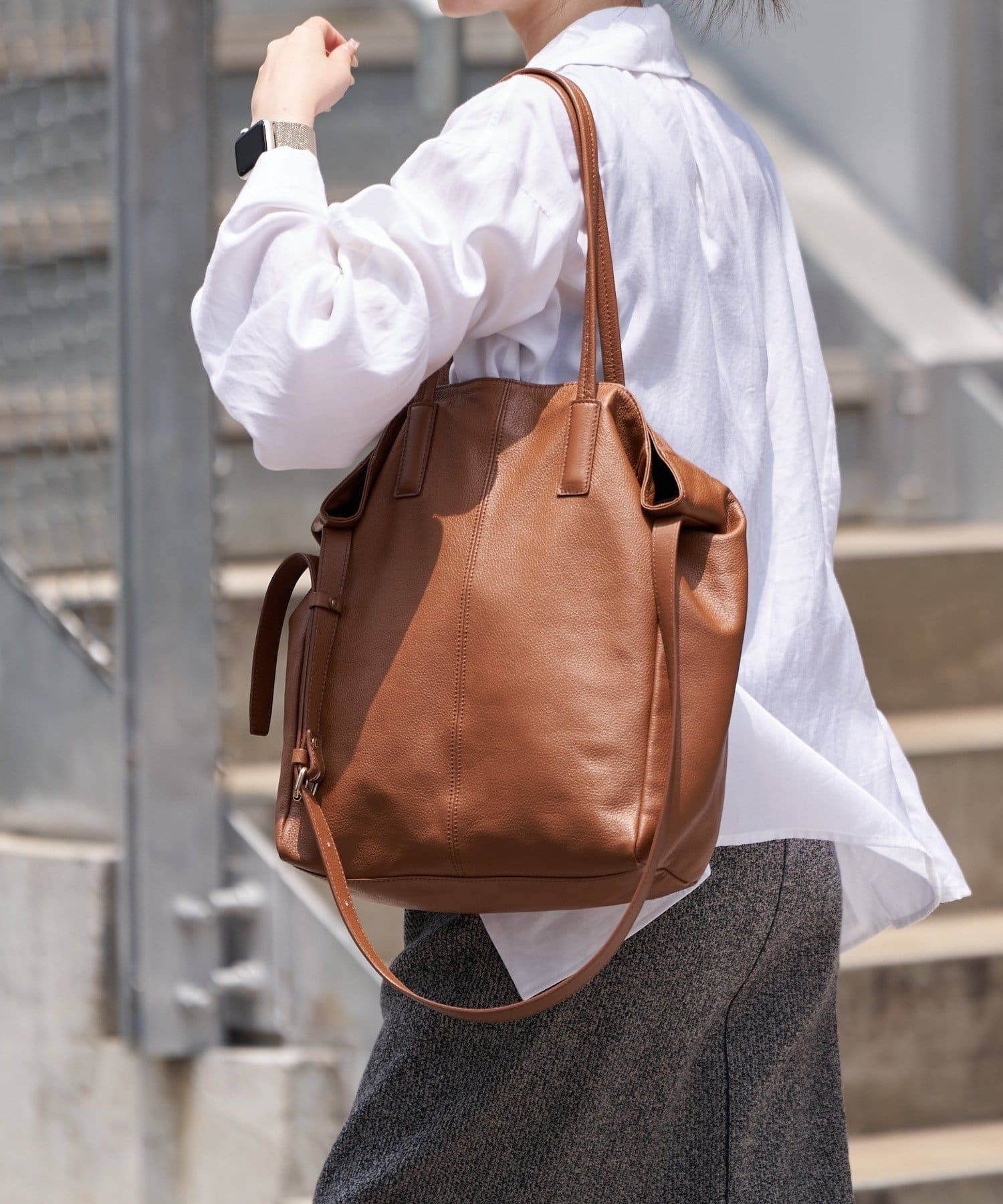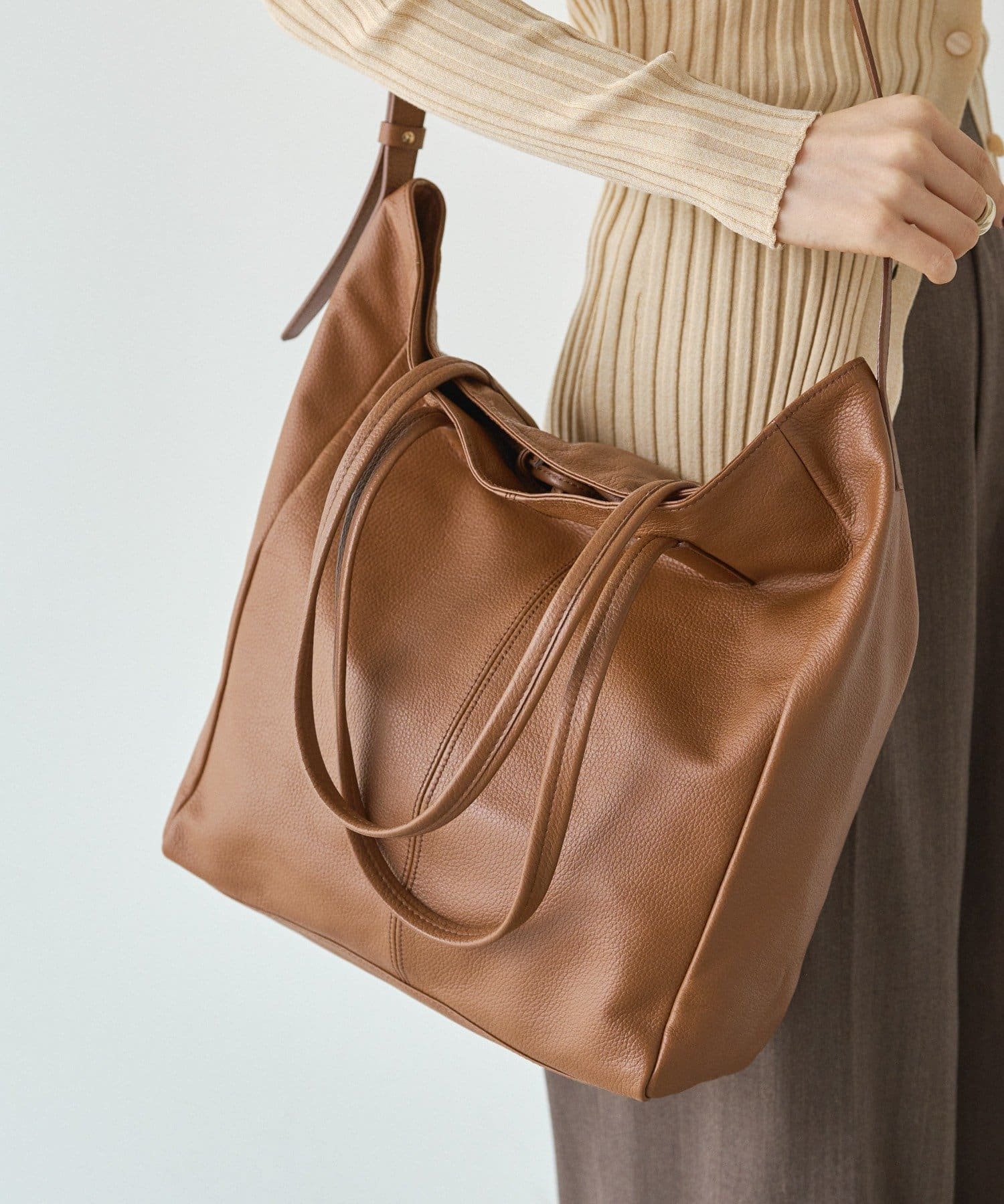 どんなシーンにもすっとなじむ、ミニマルで洗練されたレザートート。