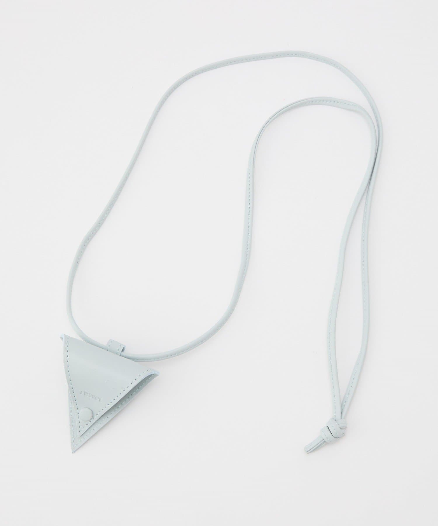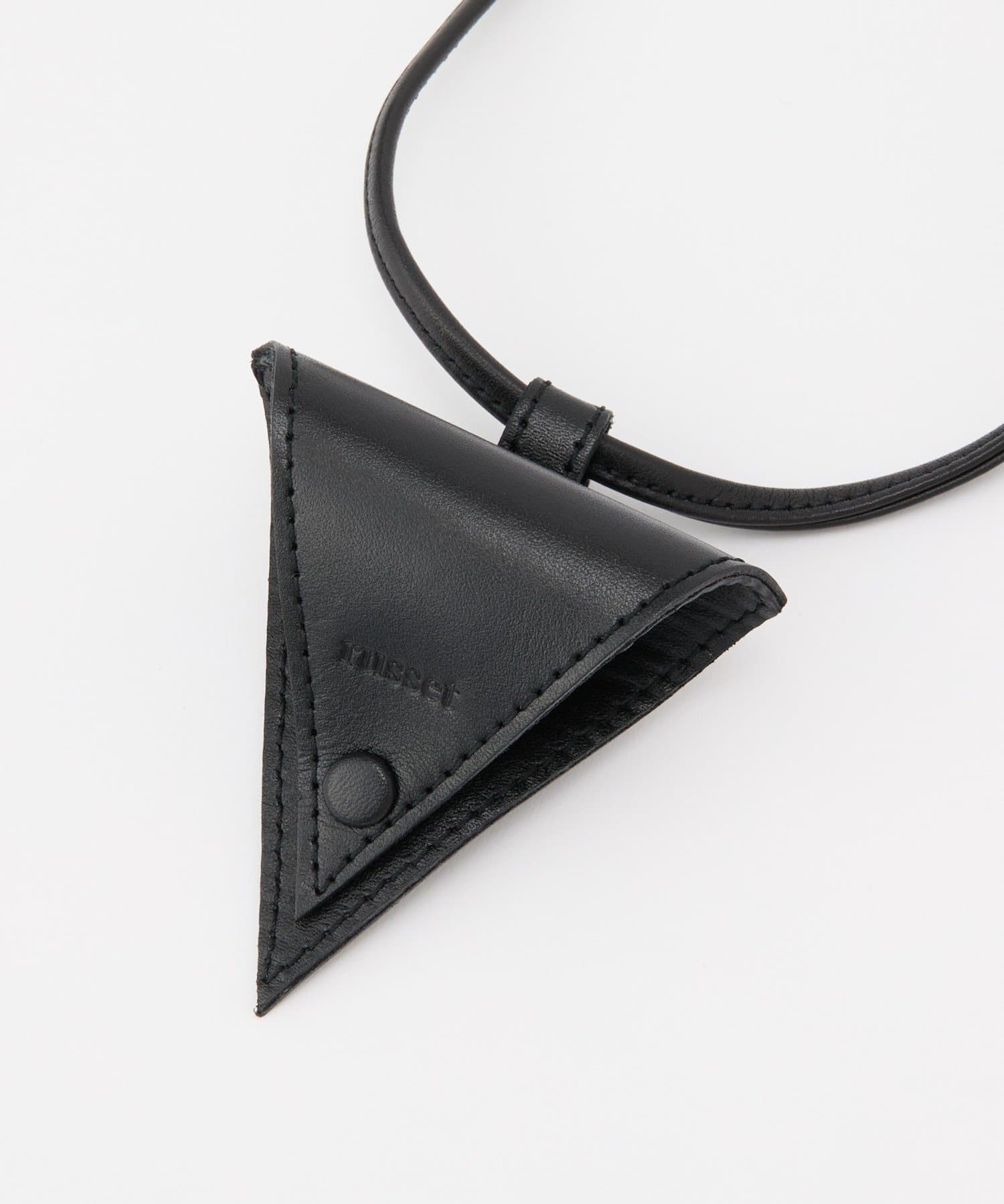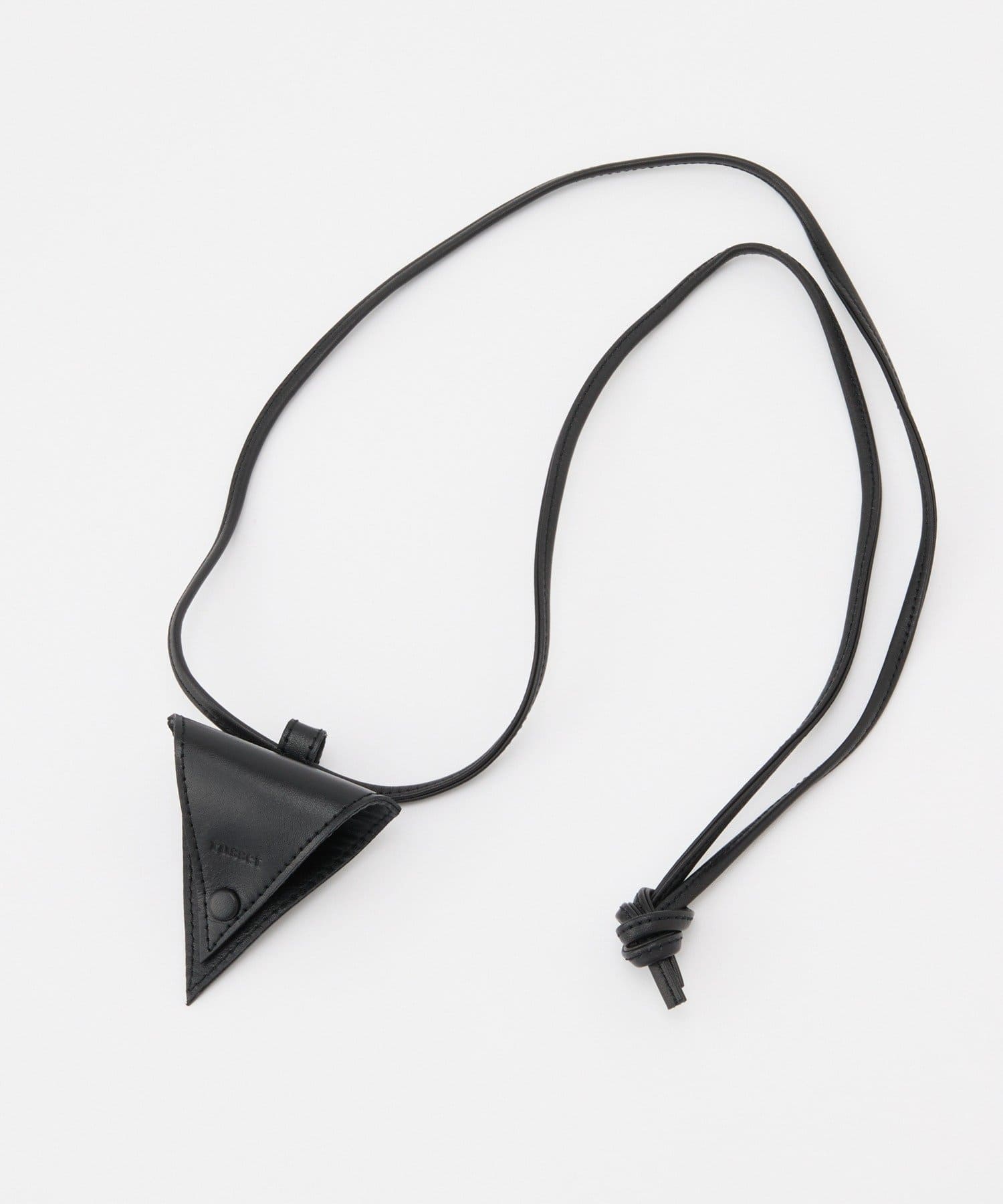 スタイリッシュな三角形デザインと、首にかけられるレザーストラップで、アクセサリー感覚で取り入れられるアイテムです。