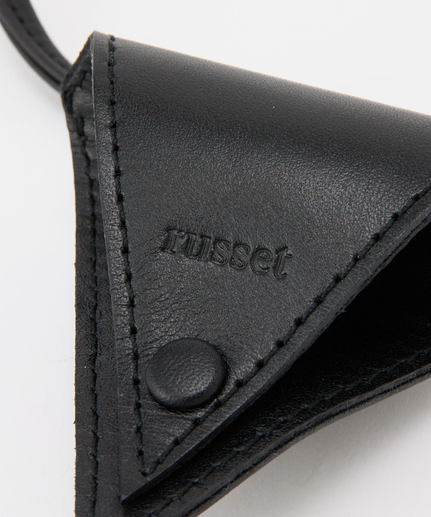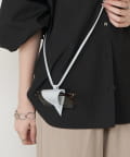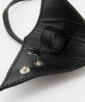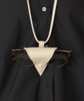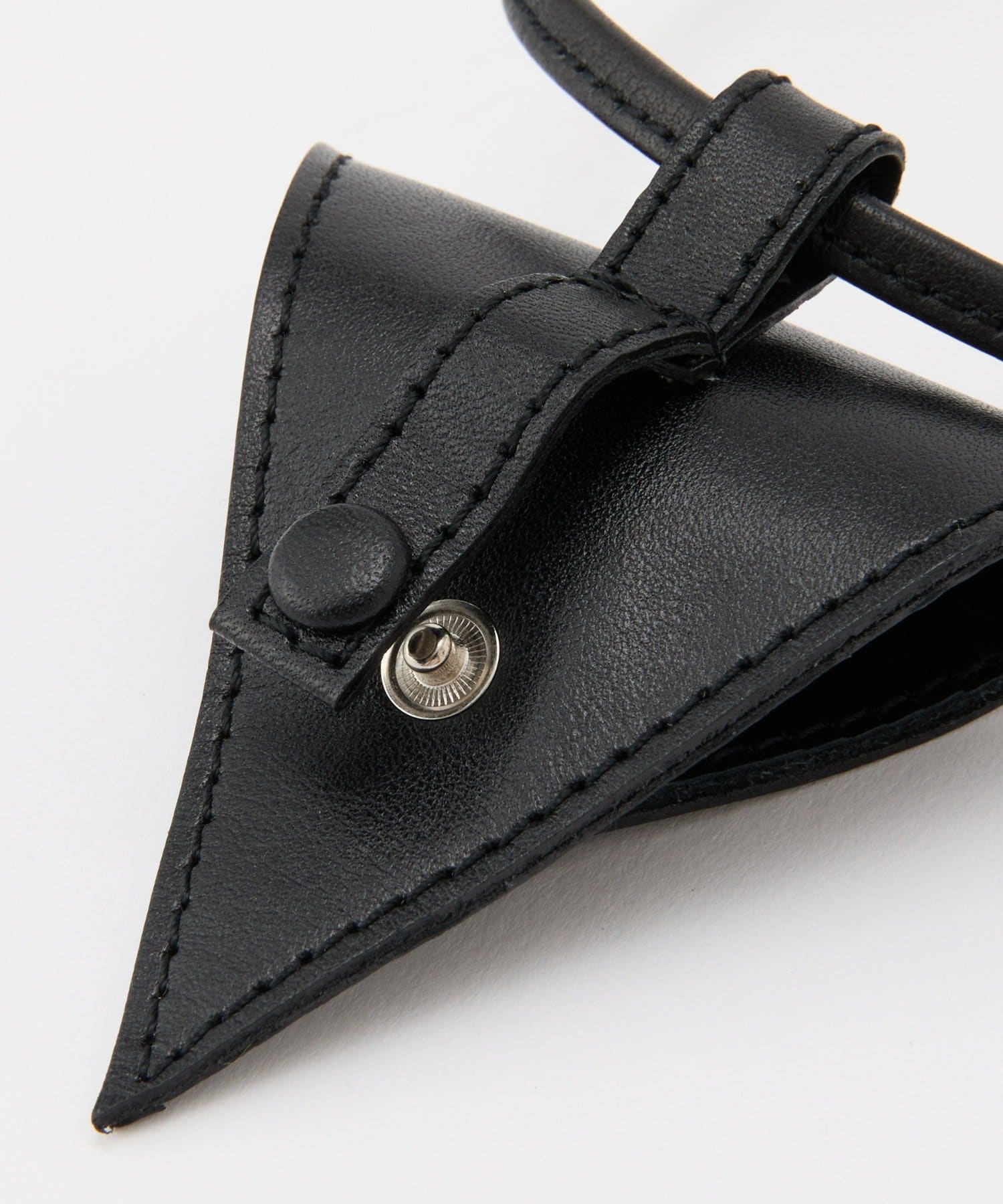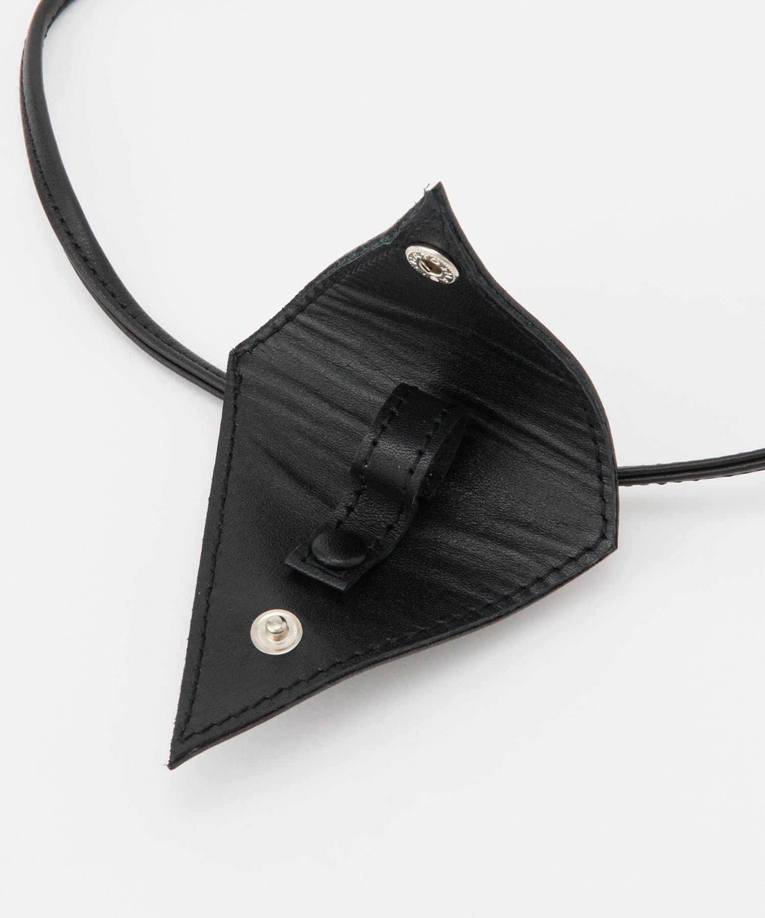 スタイリッシュな三角形デザインと、首にかけられるレザーストラップで、アクセサリー感覚で取り入れられるアイテムです。