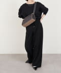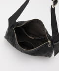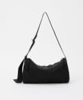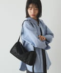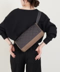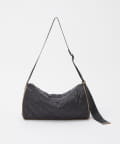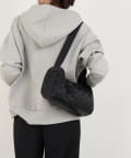 キルティングながらクラウズナイロンを使用することで、柔らかくボリュームを抑えたすっきりとしたフォルムに仕上げました。長さ調整ができるナイロンテープのショルダーは、肩掛けや斜め掛けはもちろん縦型でも持てる仕様。さらにレザー底にはブランドロゴを箔押しし、シンプルな中にさりげないアクセントを添えています。
