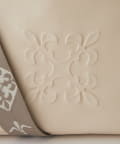 中央より少し下に配置したエンボスモノグラムは、バッグ上部をくたっとさせて持っても隠れない位置にこだわりました。
