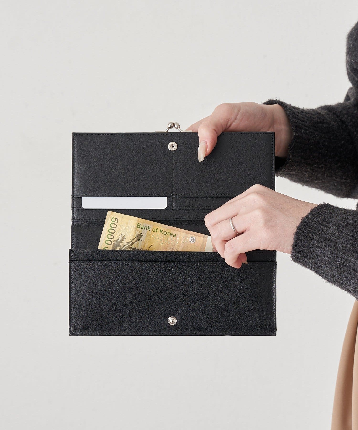 無駄を削ぎ落とした仕様と、がま口ならではの安心感を備えた、すっきりと持てる長財布。