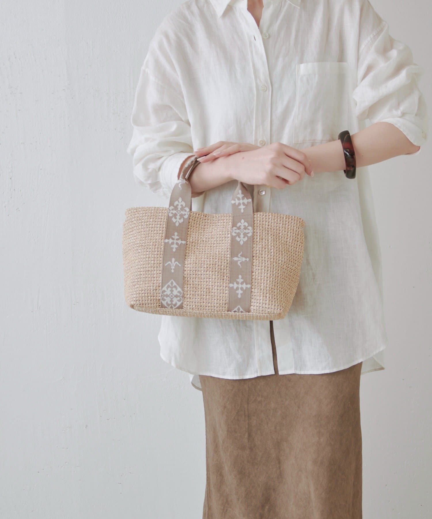 リアルなラフィアの風合いを楽しみながら、扱いやすさも兼ね備えたデザインです。