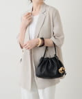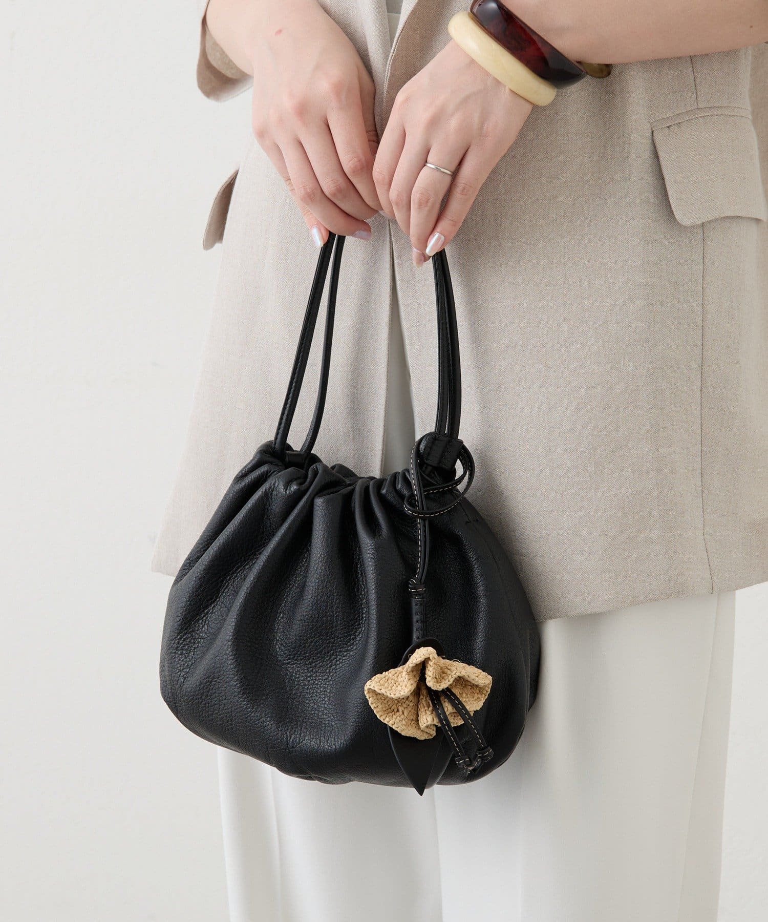 ・レザーバッグのハンドルに添えて、異素材ミックスの質感をプラス