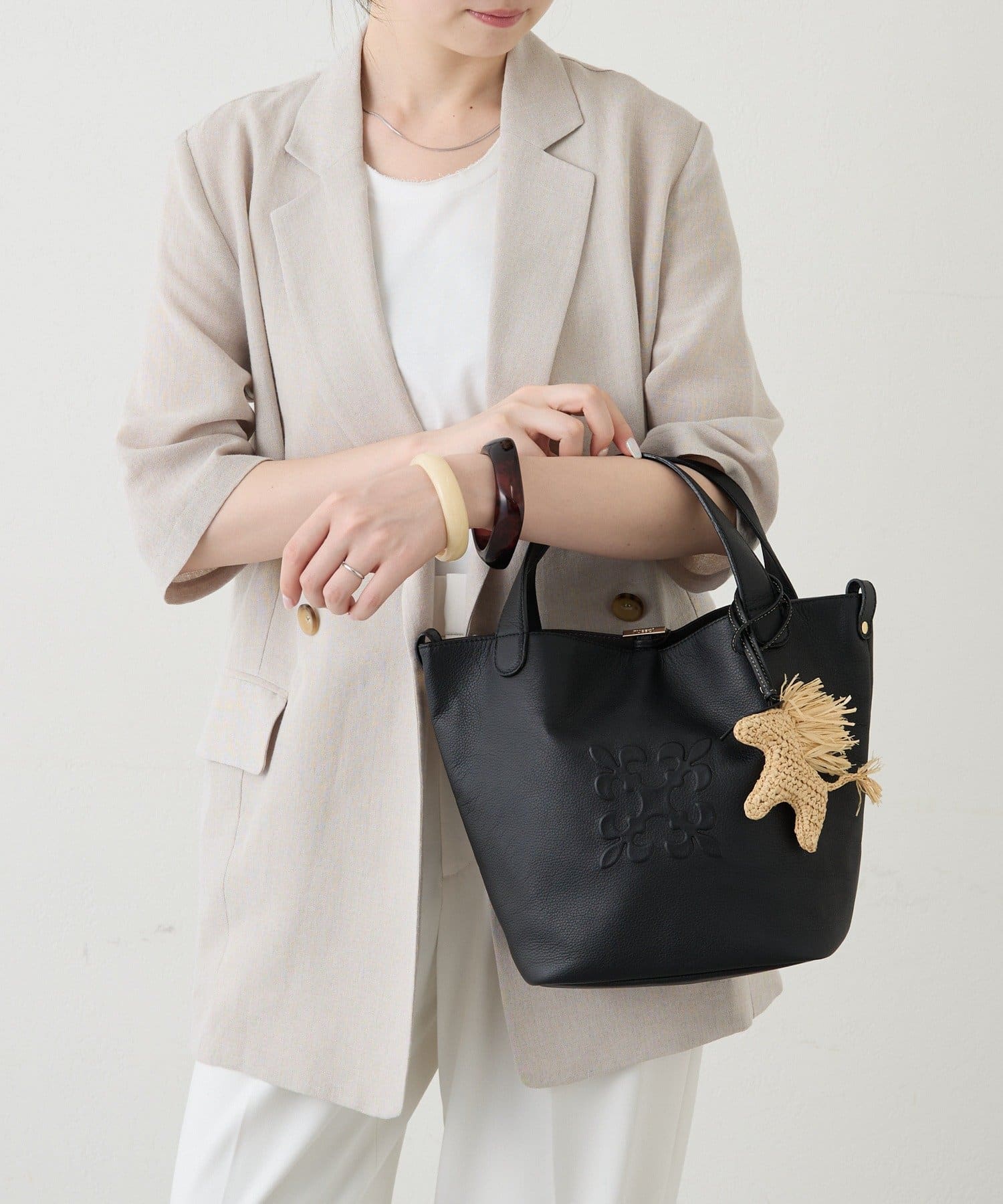 カジュアルなカゴバッグはもちろん、カッチリとしたレザートートとも相性が良く、大人の遊び心を感じさせるアクセントとして活躍します。