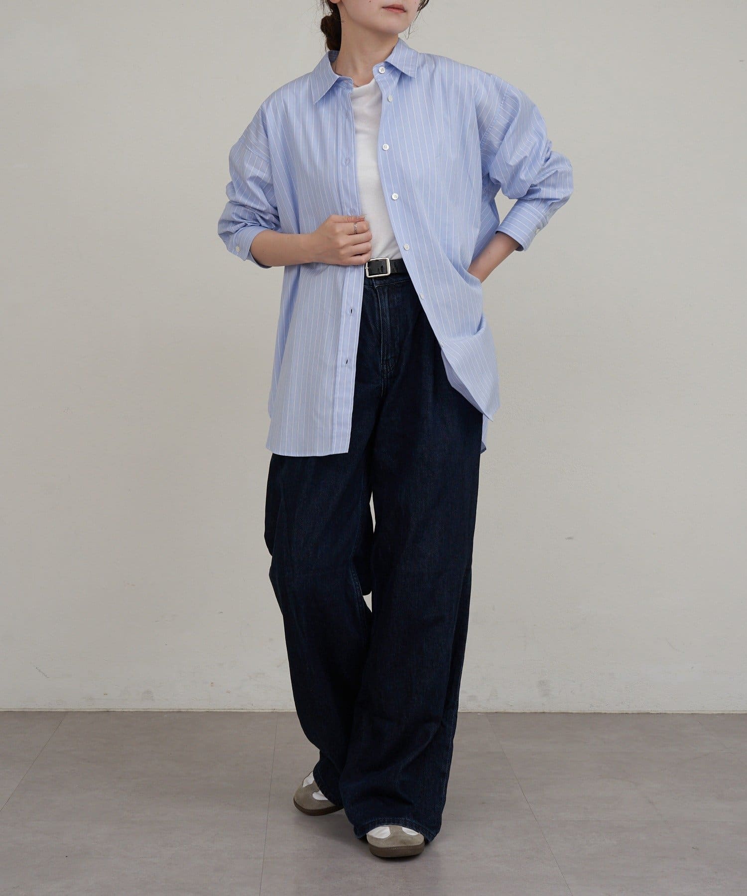 メンズシャツのようなマニッシュなムード漂う、ロング丈のベーシックシャツ。