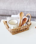 ●軽量かつ丈夫で、ナチュラルな雰囲気のあるラタン素材を使用したバスケット。