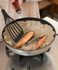 ●シリコーン加工なので食品がくっつきにくく、油いらずのフライパンシート!