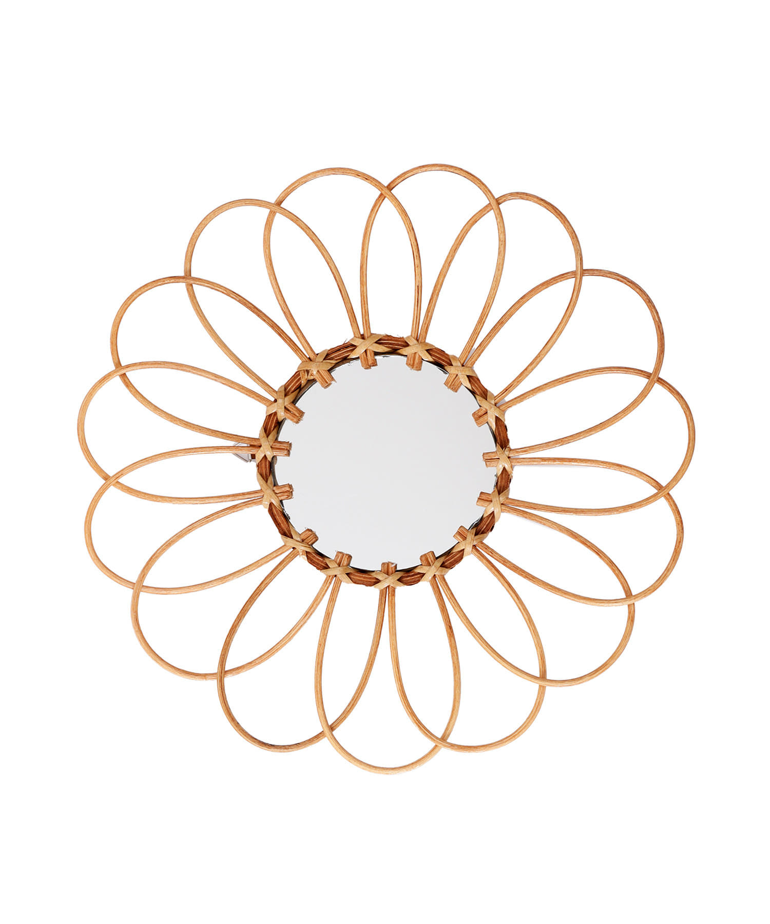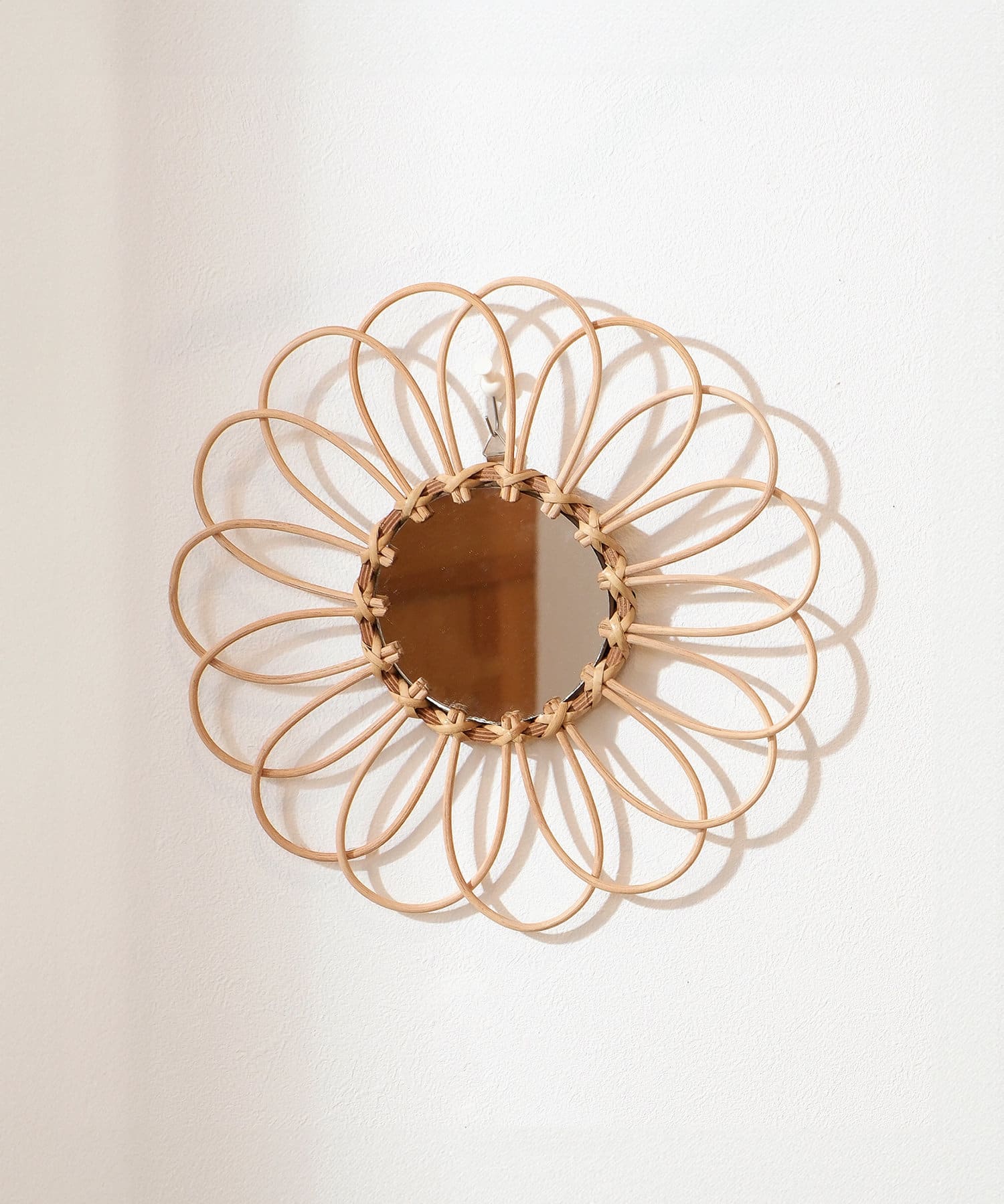●どこか懐かしさを感じるラタン素材とお花の形が可愛いミラー。
