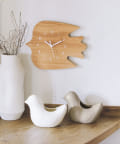 ●羽ばたいている鳥のダイカットデザインが特徴的なウォールクロック。