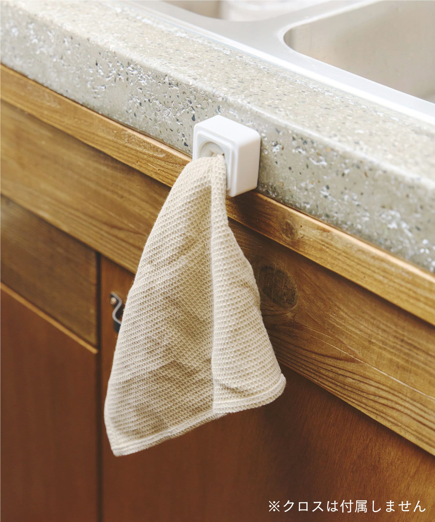 ●押し込むだけでセットできる布巾ホルダー。