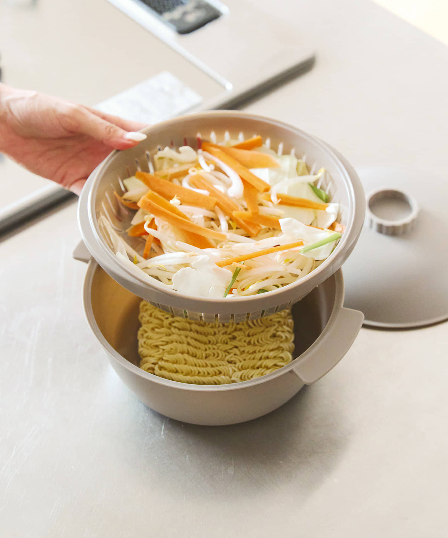 ●電子レンジで野菜たっぷりのラーメンが作れるザル付きビストロヌードル。